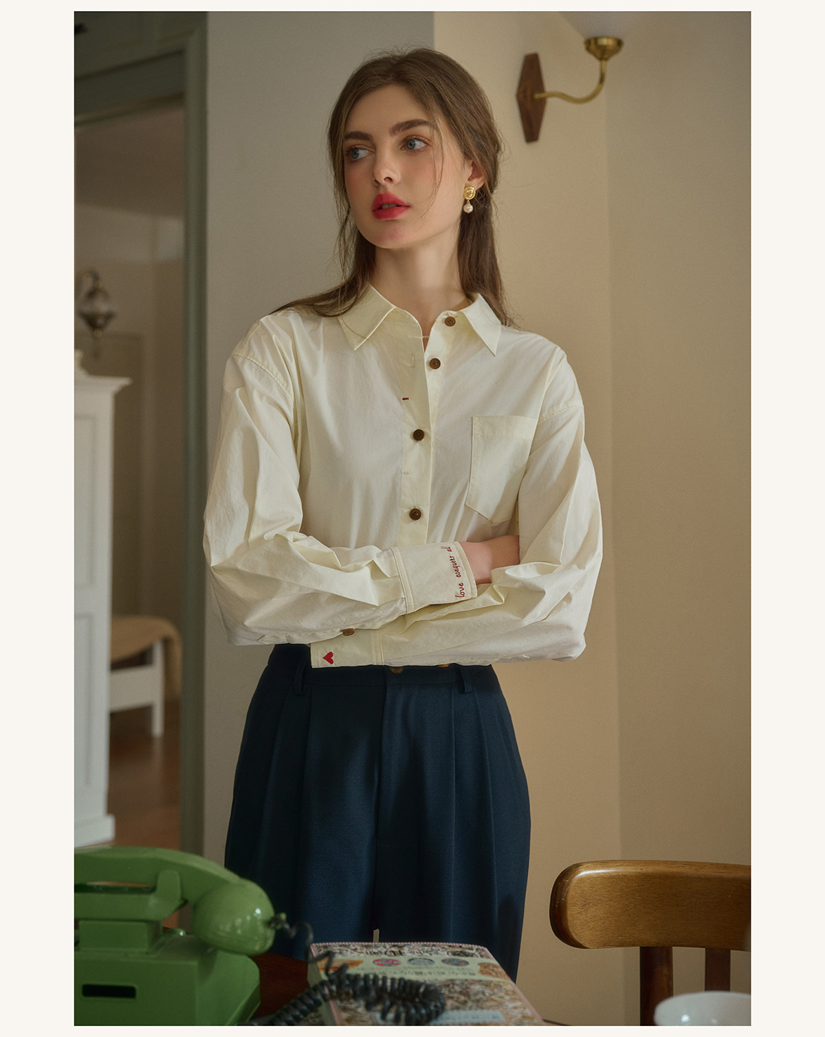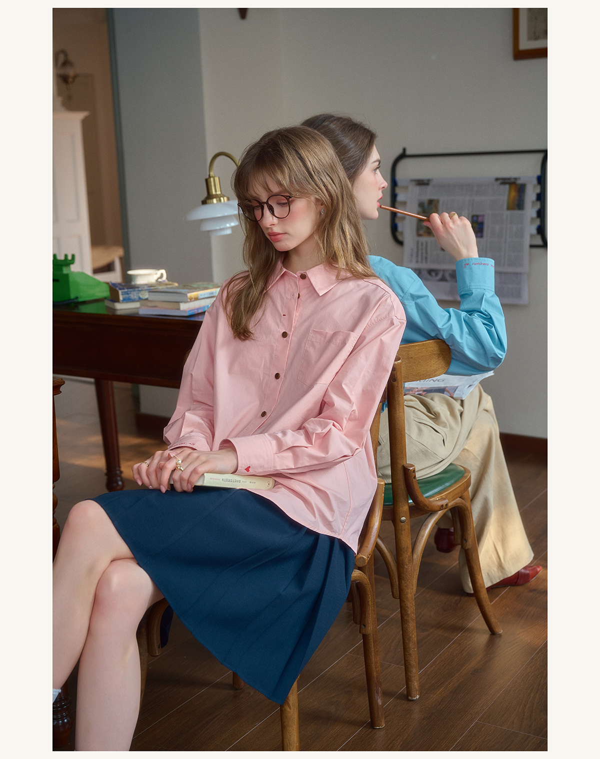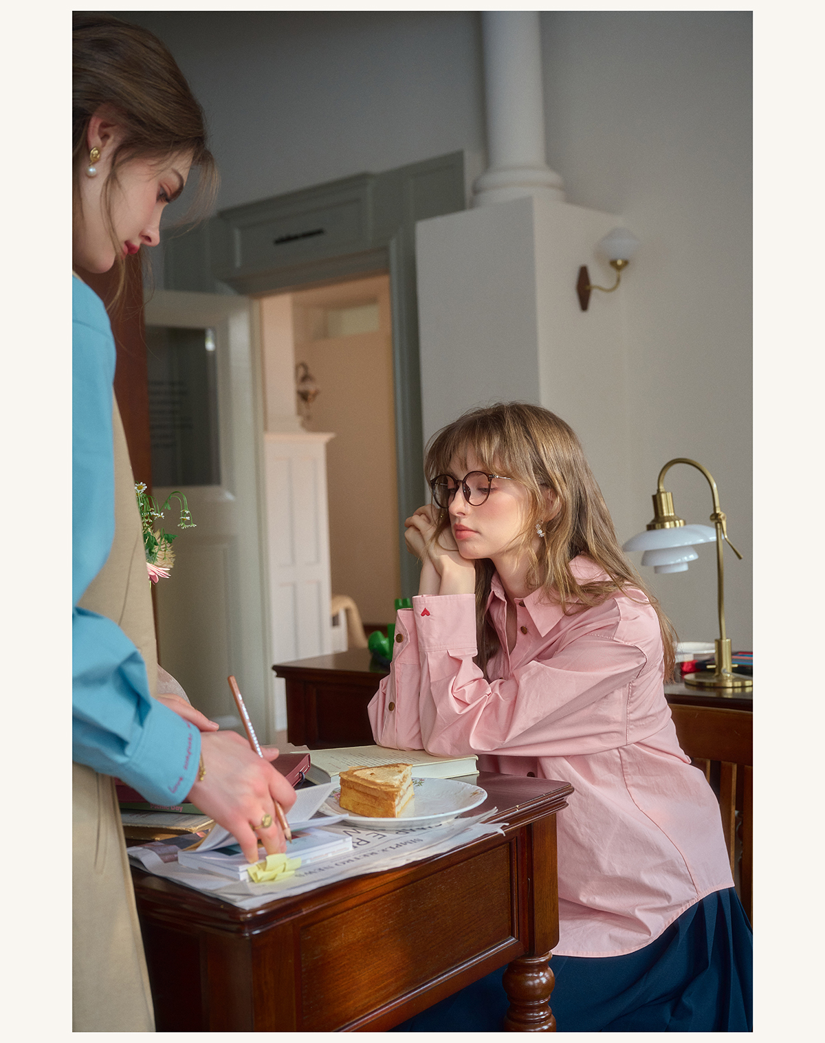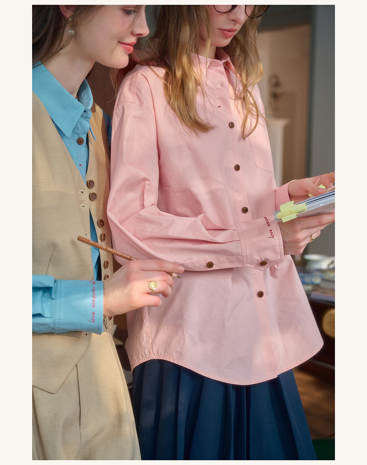 SimpleRetro恋色旋律 手写刺绣文艺四色衬衫女春长袖休闲通勤上衣
