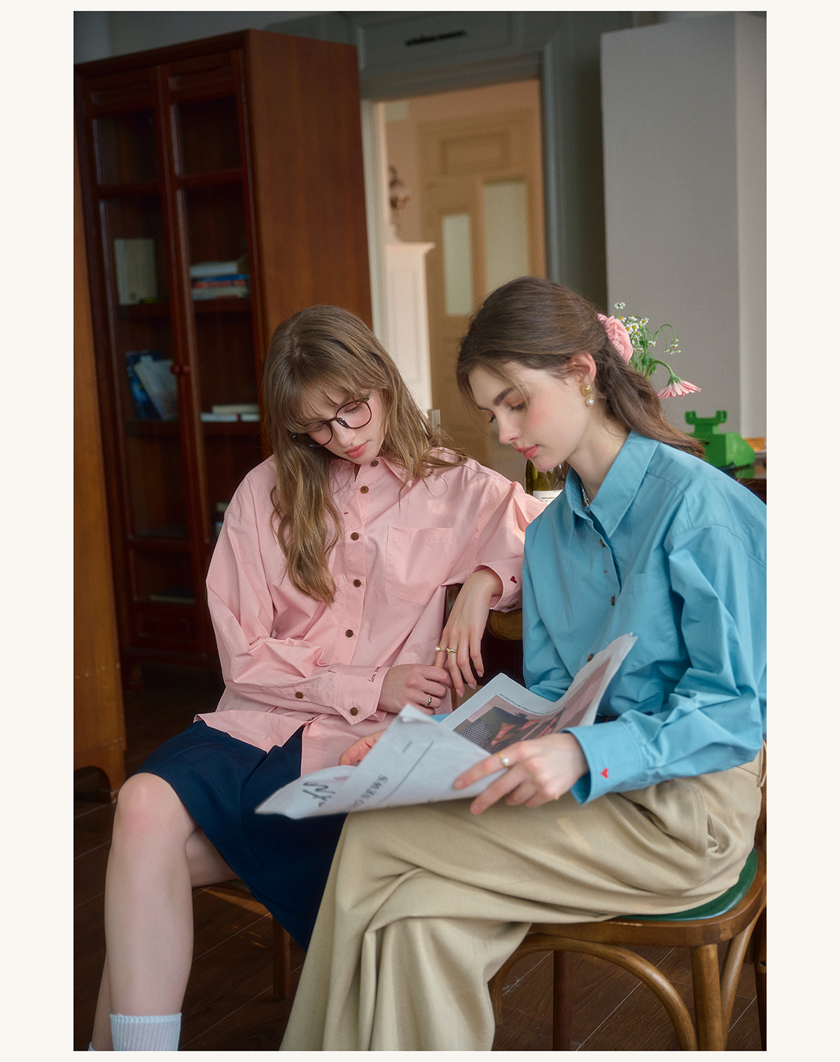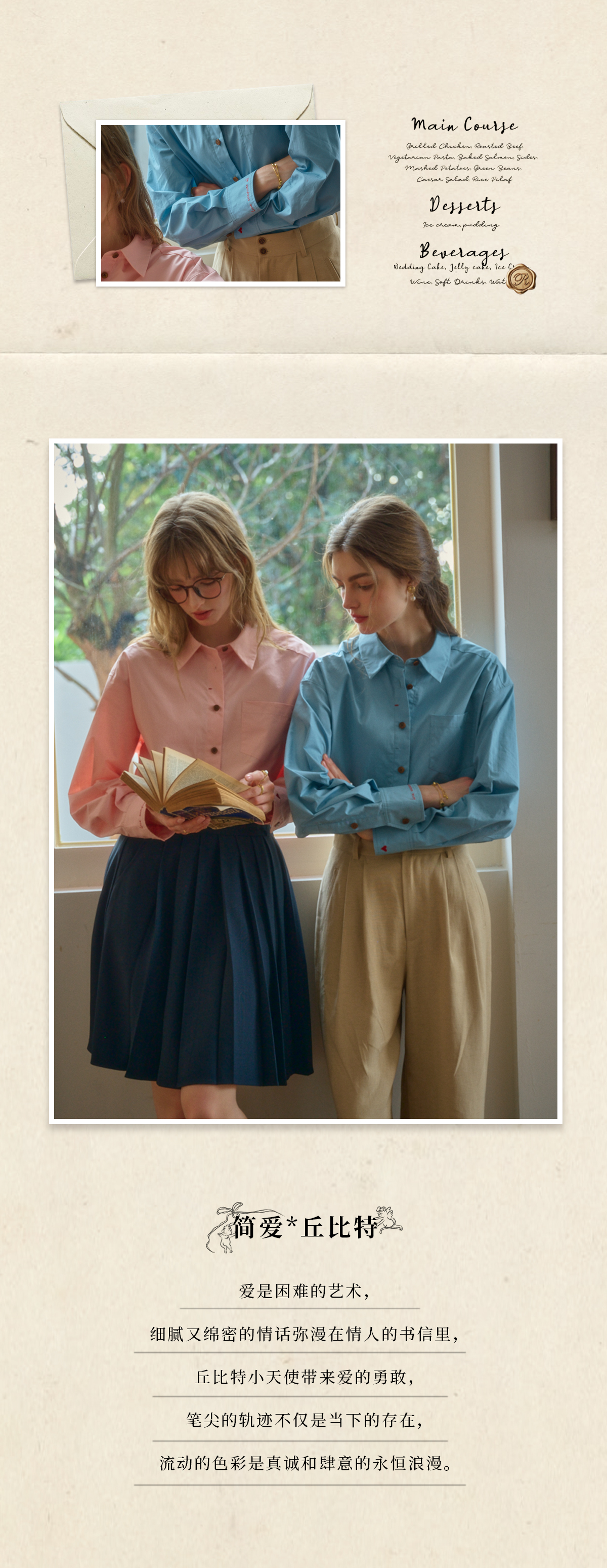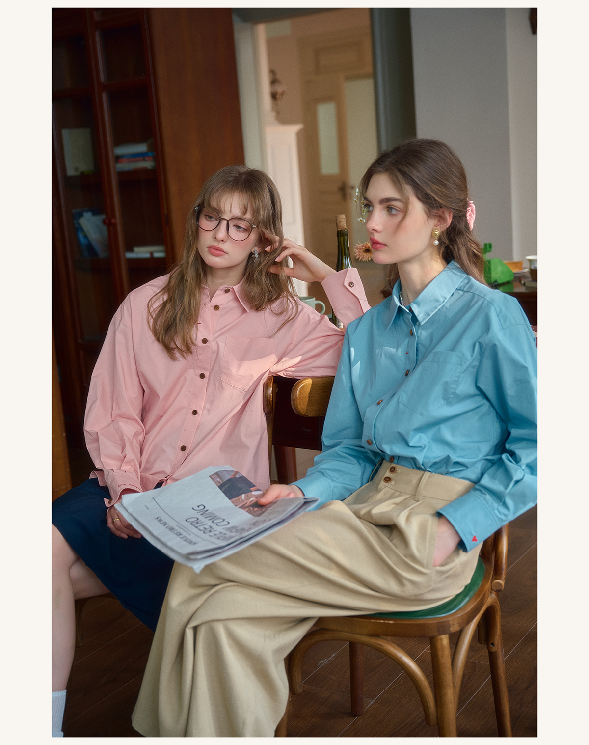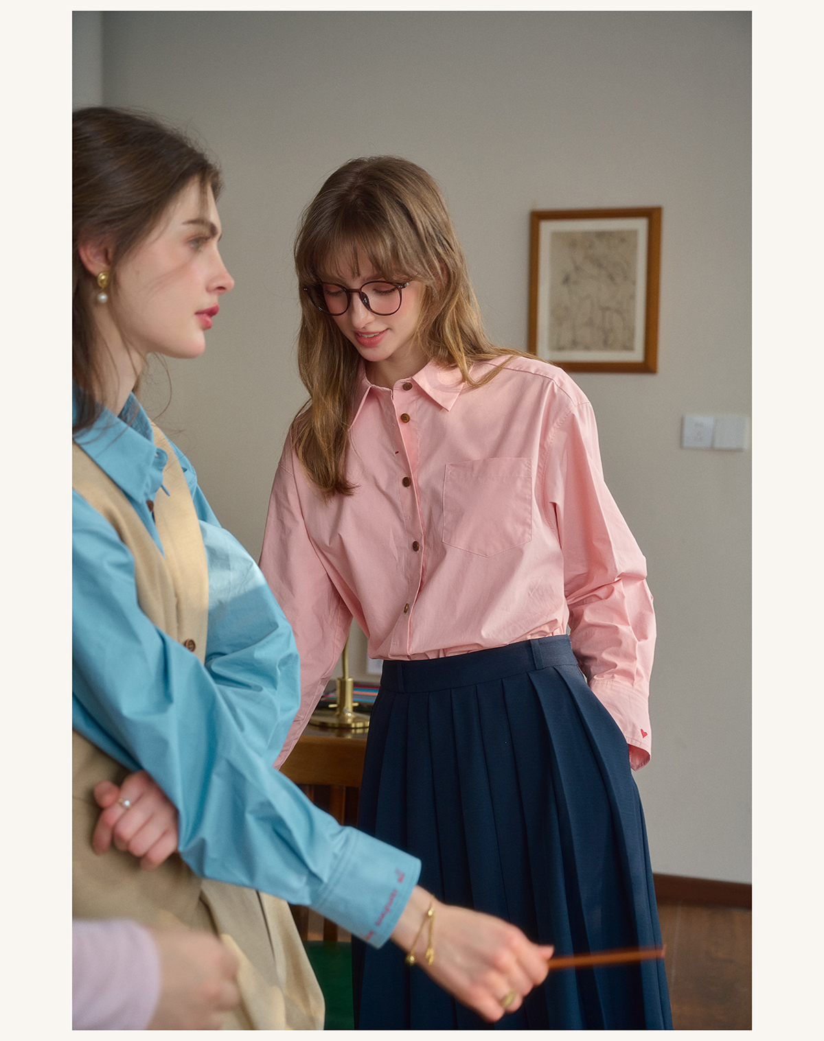 SimpleRetro恋色旋律 手写刺绣文艺四色衬衫女春长袖休闲通勤上衣