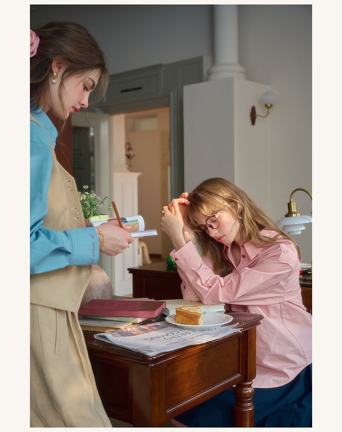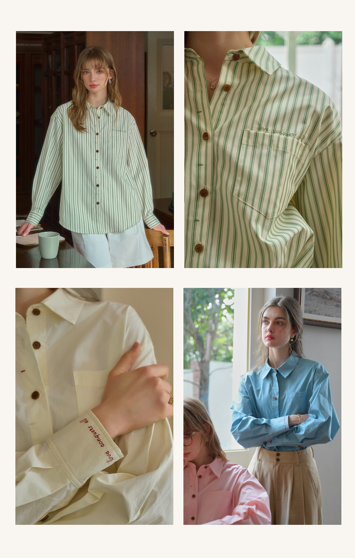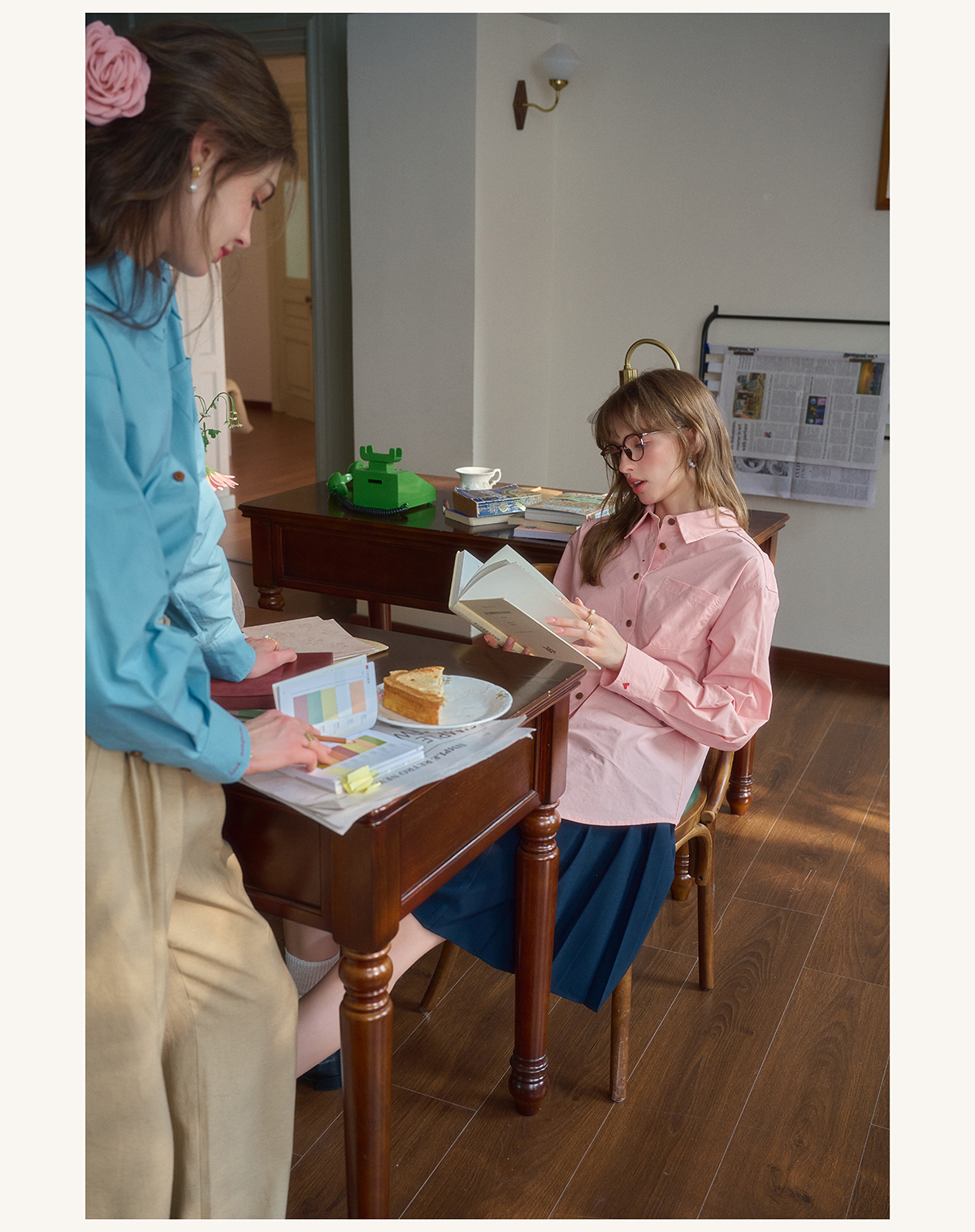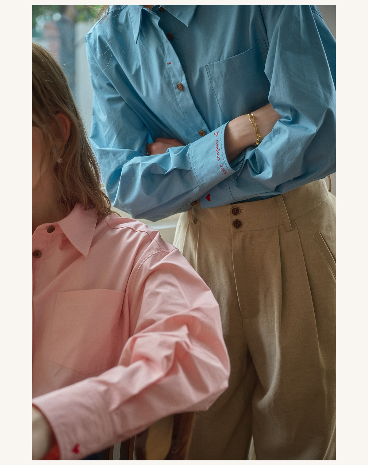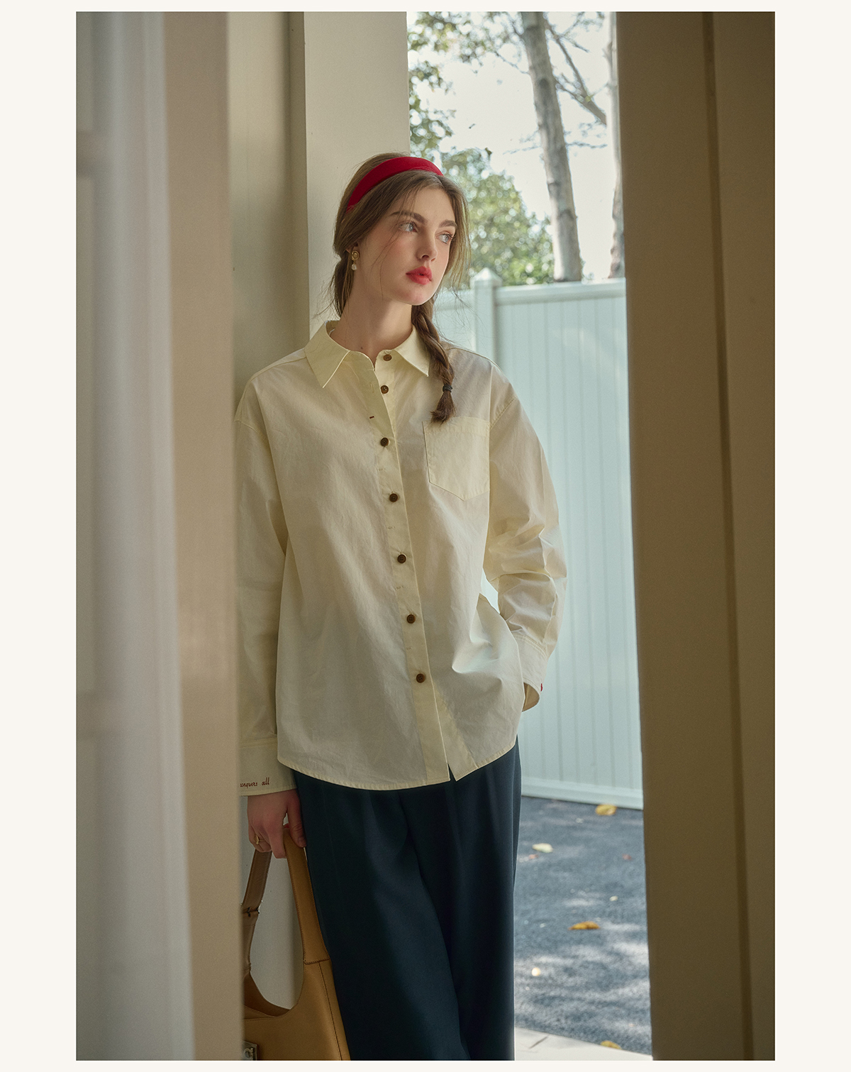 SimpleRetro恋色旋律 手写刺绣文艺四色衬衫女春长袖休闲通勤上衣