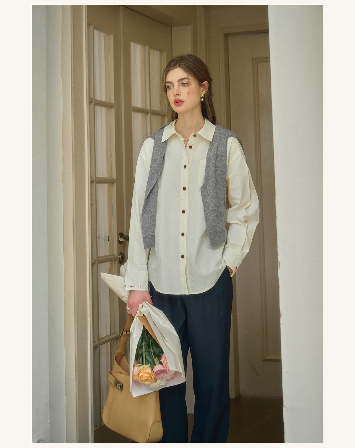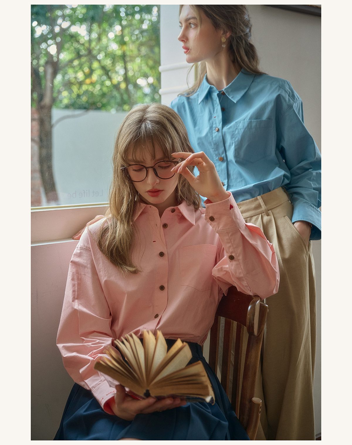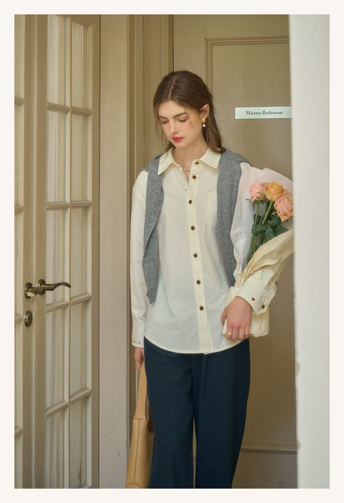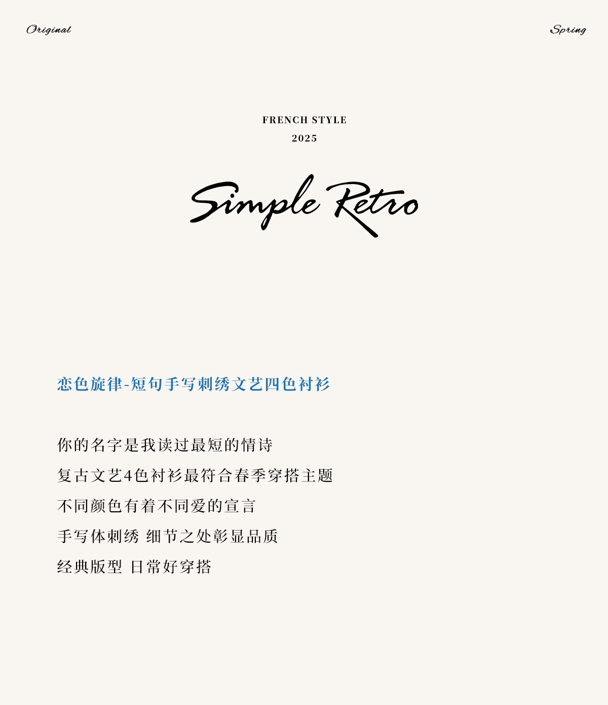 SimpleRetro恋色旋律 手写刺绣文艺四色衬衫女春长袖休闲通勤上衣
