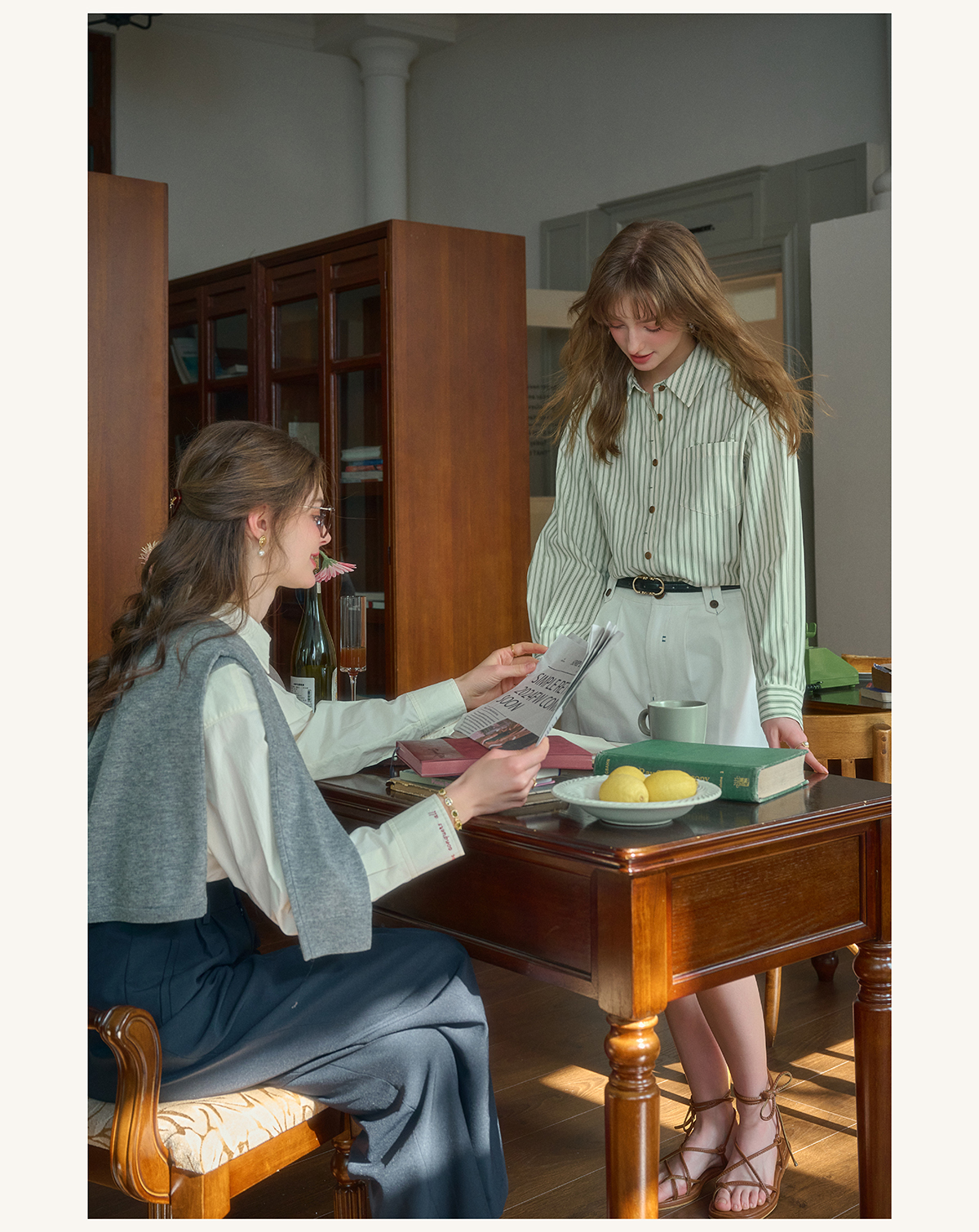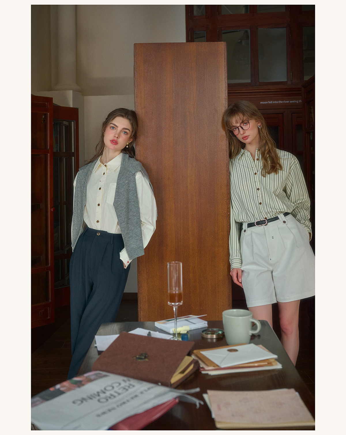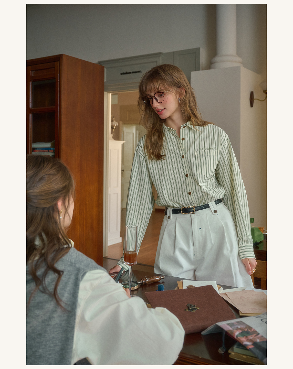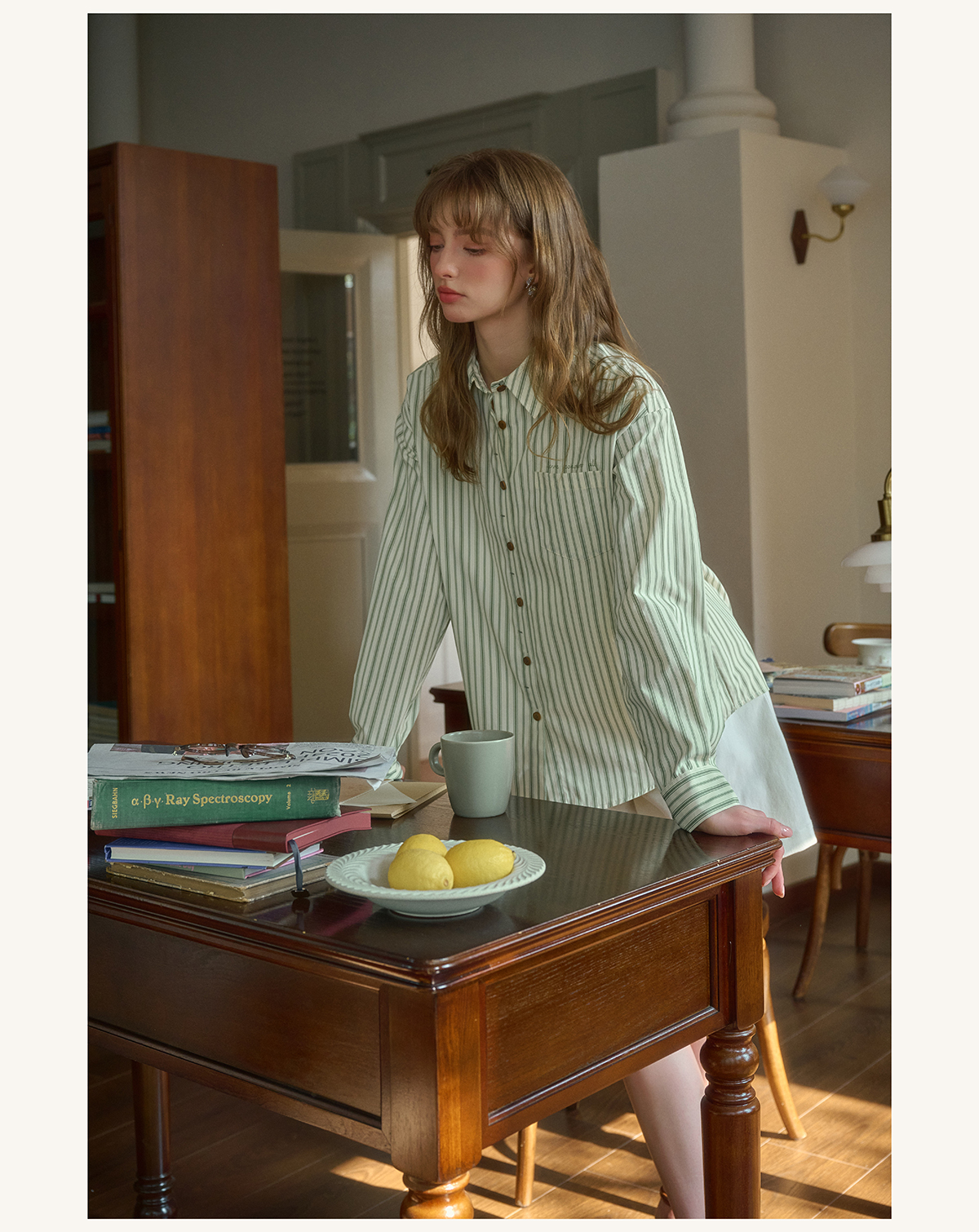 SimpleRetro恋色旋律 手写刺绣文艺四色衬衫女春长袖休闲通勤上衣