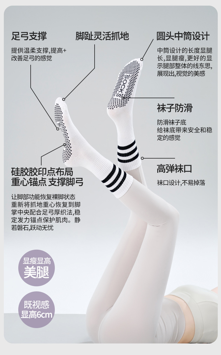 【49元任选3双】【腾飞系列】条纹点胶防滑普拉提袜室内训练健身运动袜(活动产品,收货7天内支持退换)