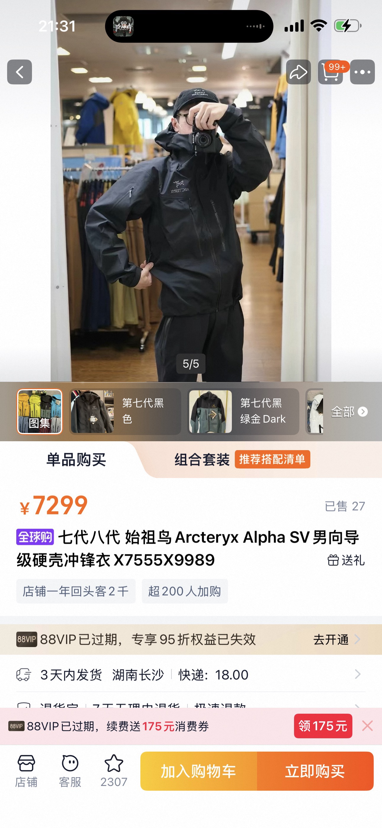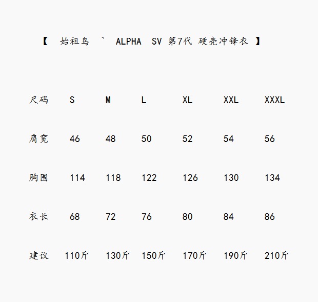 始zu鸟 ALPHA SV 第7代 硬壳连帽冲锋衣 防风 防水 透气 功能性外套 户外 登山服