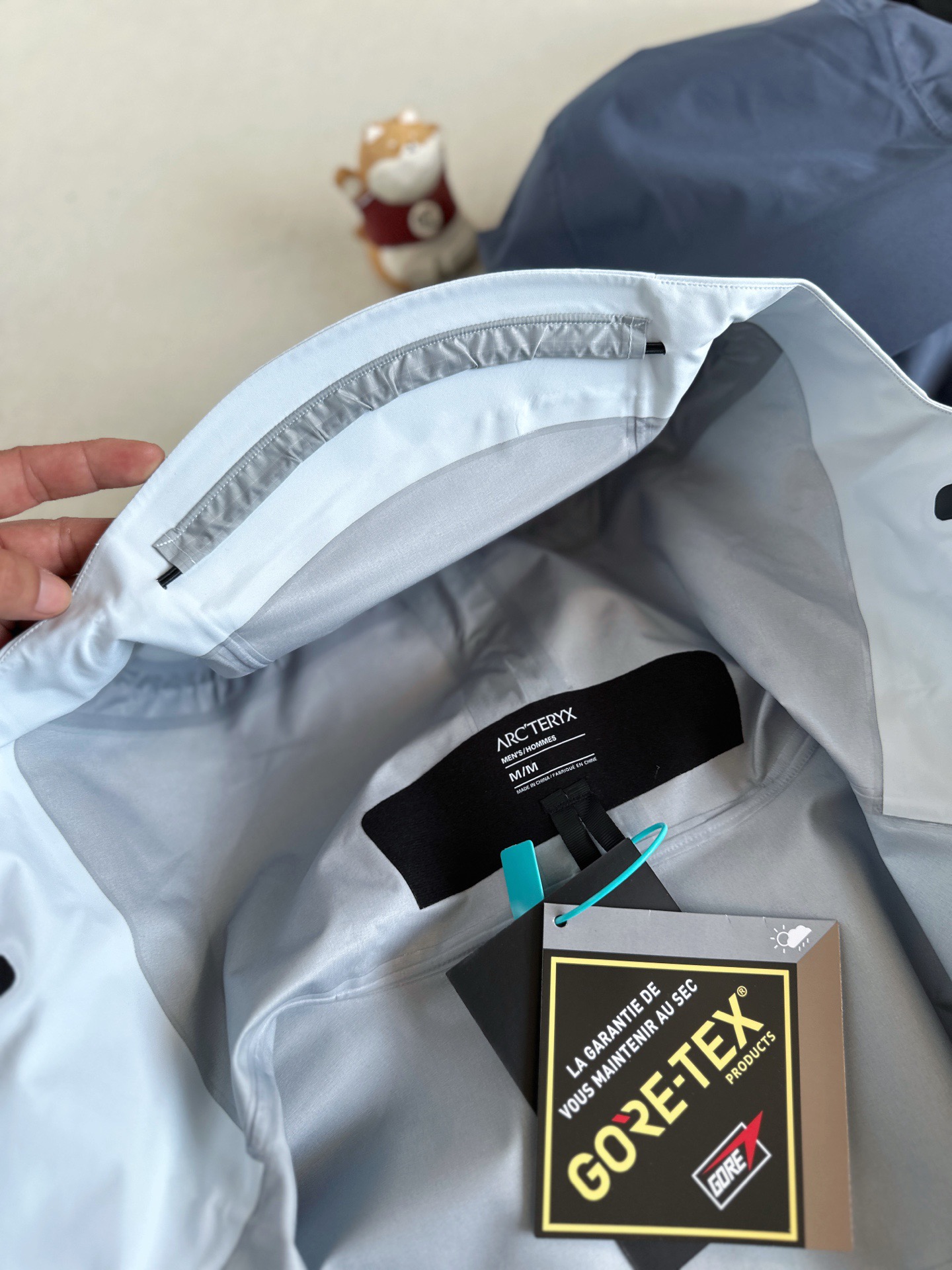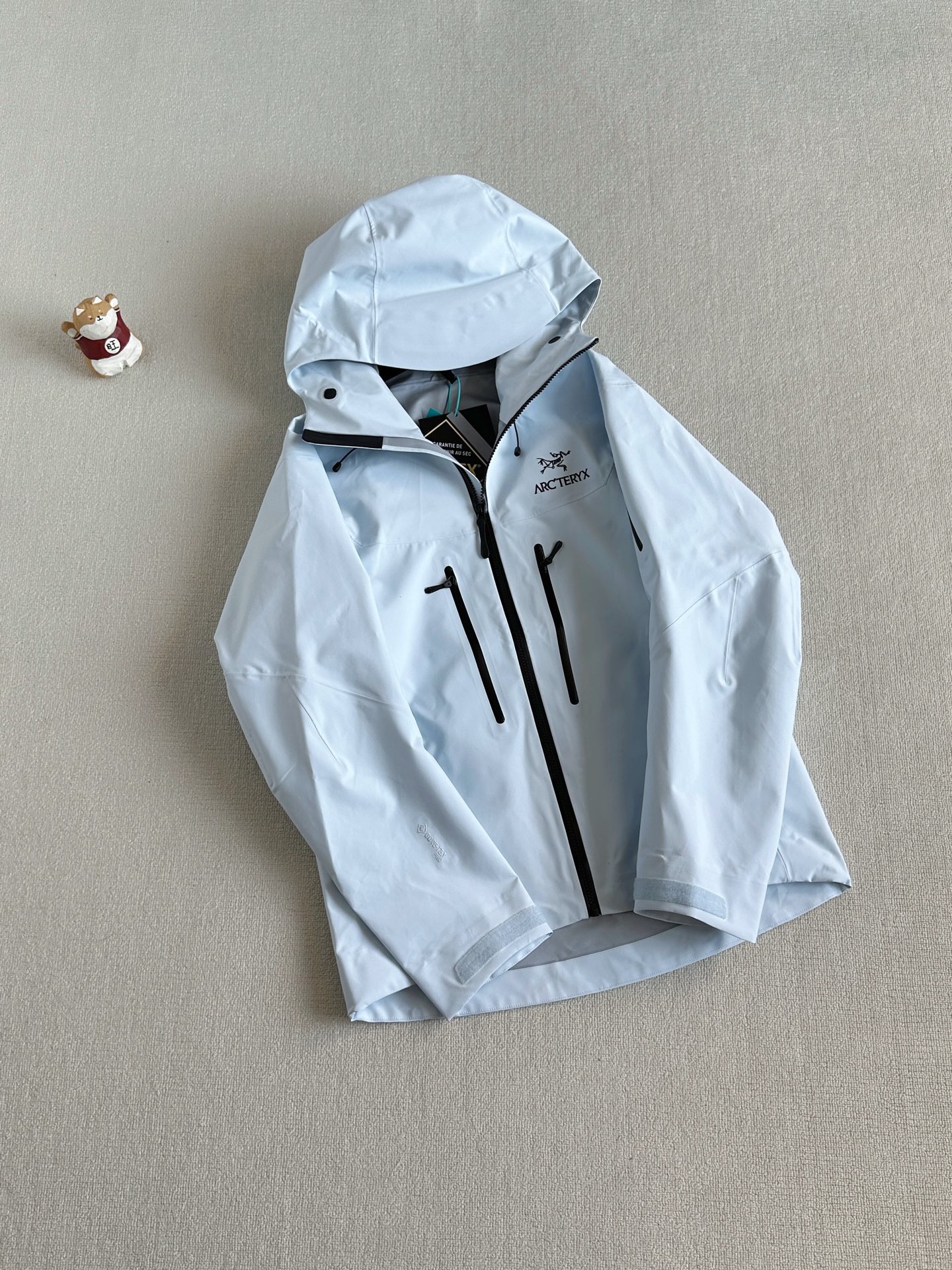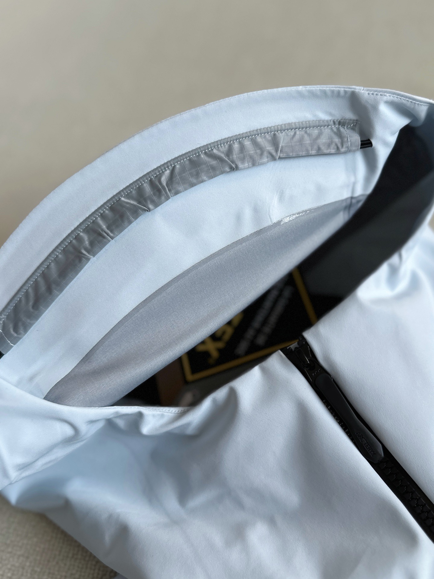 辅料: 拆分原版 帽子 下摆 采用最新六代专配订制高弧度连体进口纽扣 所有气眼以及弹簧扣帽子配钟均为开模带logo, 专业的兼容头盔的帽兜设计 帽带和拉链都可以支持单手操作 冲切Velcro®魔术贴袖口粘扣带,减少累赘,不钩挂脱落,下摆部位的HemLock 夹层可良好的支持安全带的使用