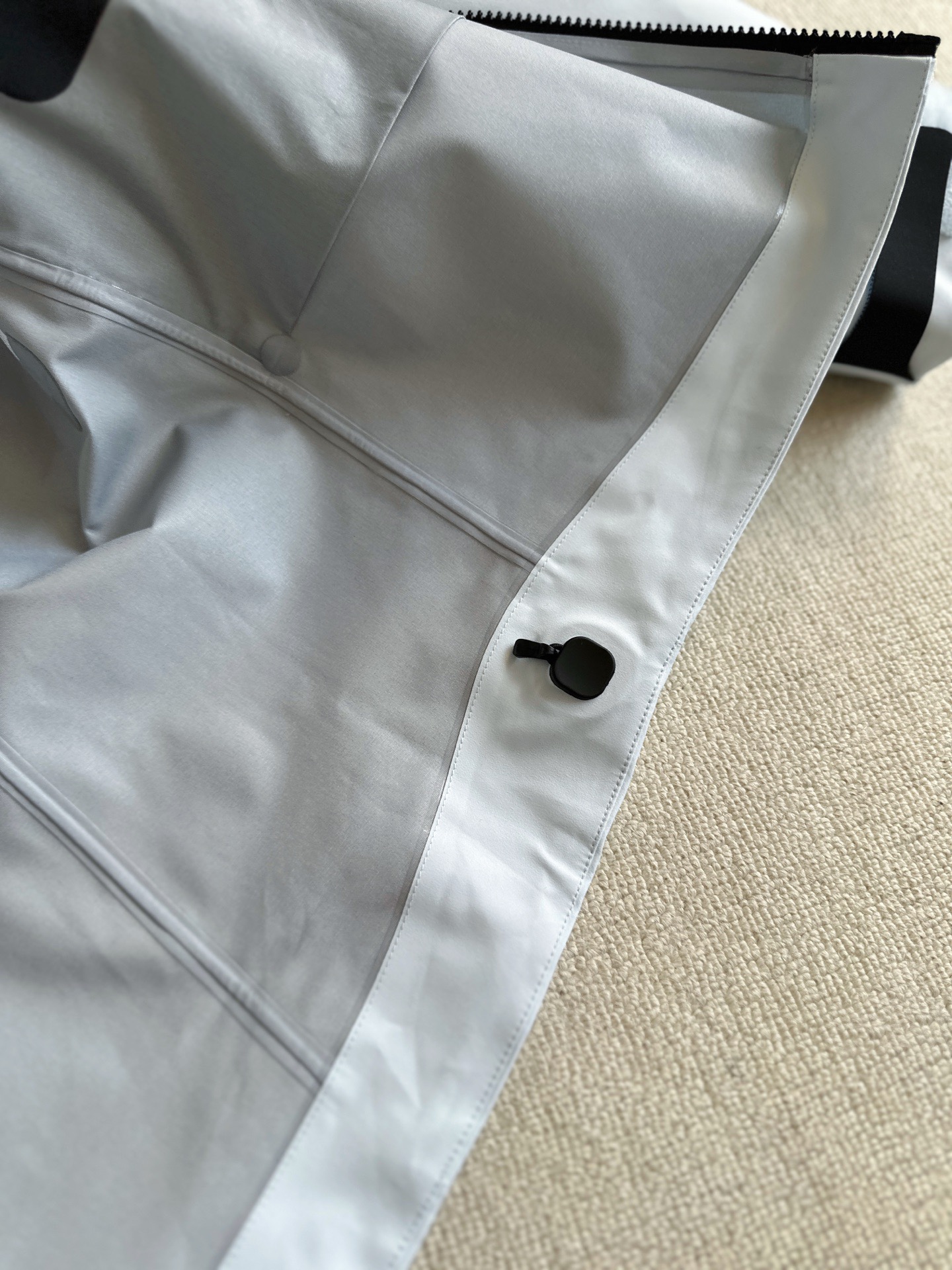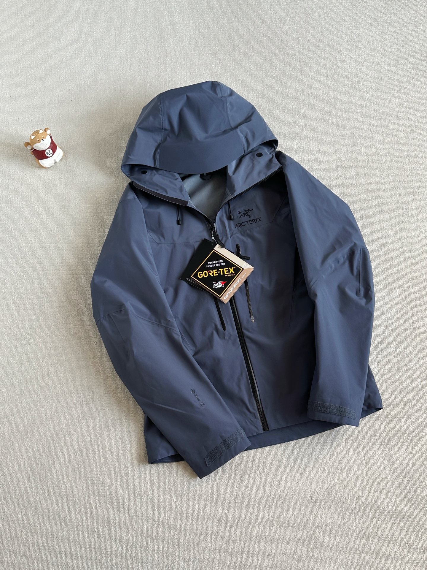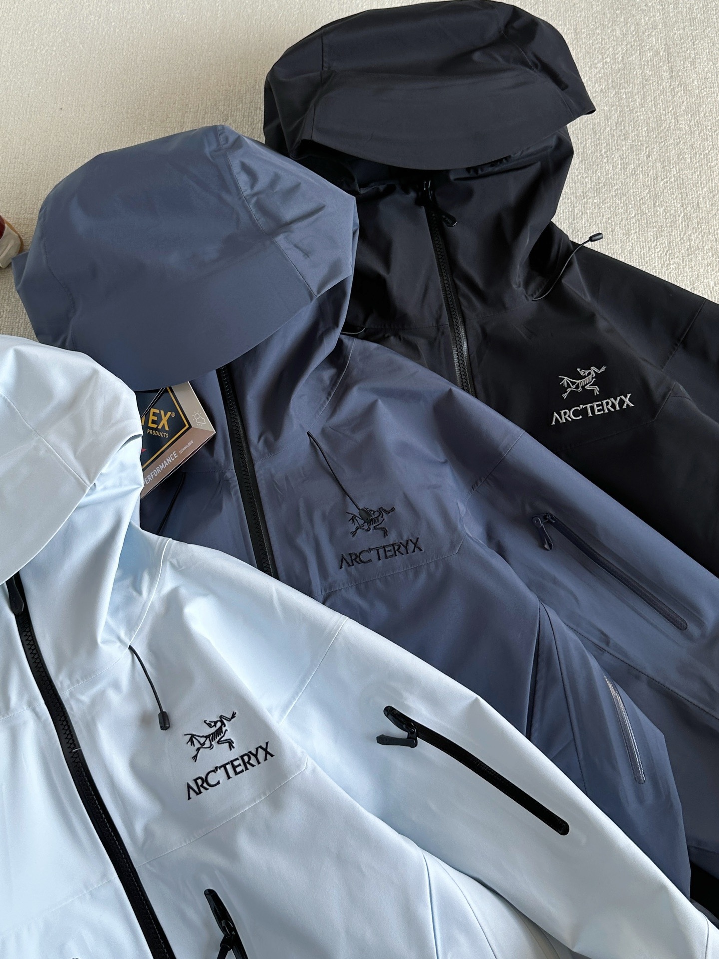 辅料: 拆分原版 帽子 下摆 采用最新六代专配订制高弧度连体进口纽扣 所有气眼以及弹簧扣帽子配钟均为开模带logo, 专业的兼容头盔的帽兜设计 帽带和拉链都可以支持单手操作 冲切Velcro®魔术贴袖口粘扣带,减少累赘,不钩挂脱落,下摆部位的HemLock 夹层可良好的支持安全带的使用