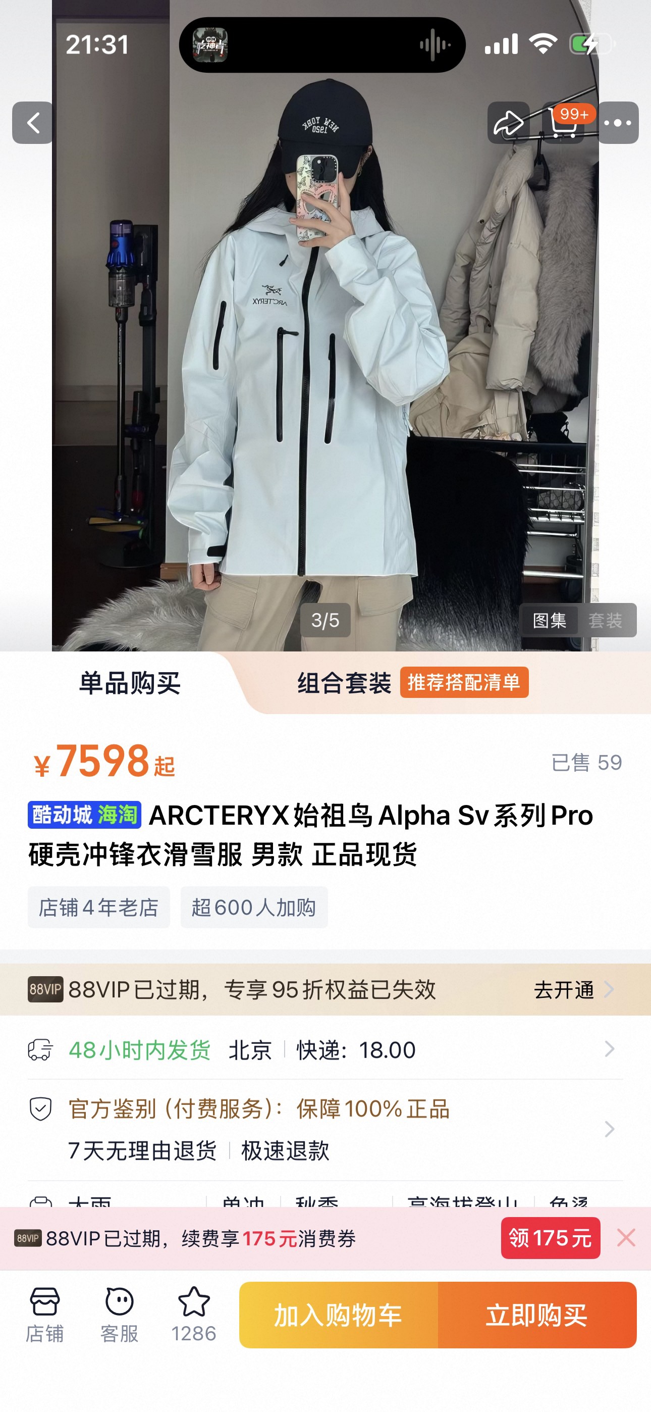 ARC'TERYX/始祖鸟 ALPHA SV 第7代 硬壳连帽冲锋衣 防风 防水 透气 功能性外套 户外 登山服