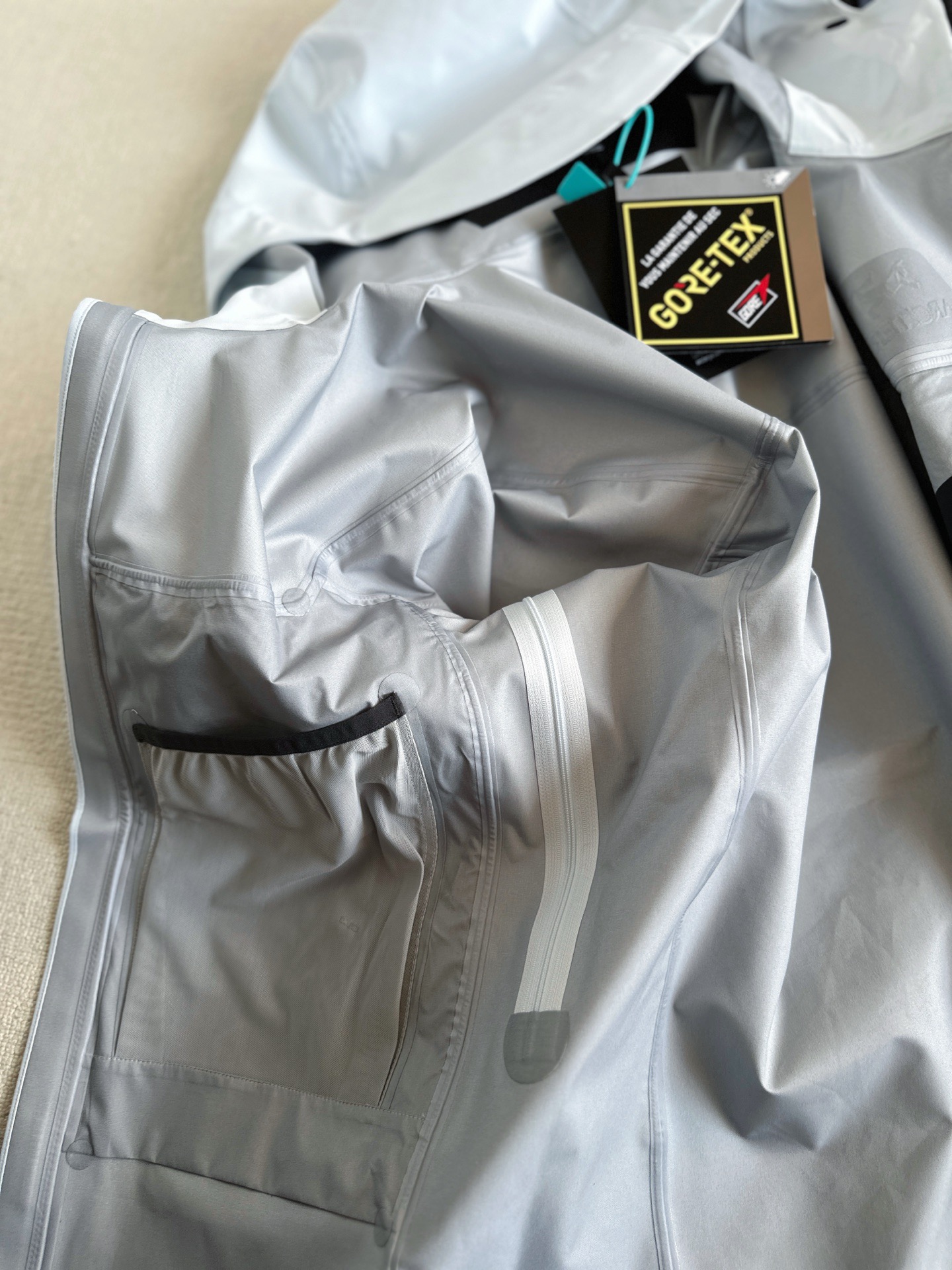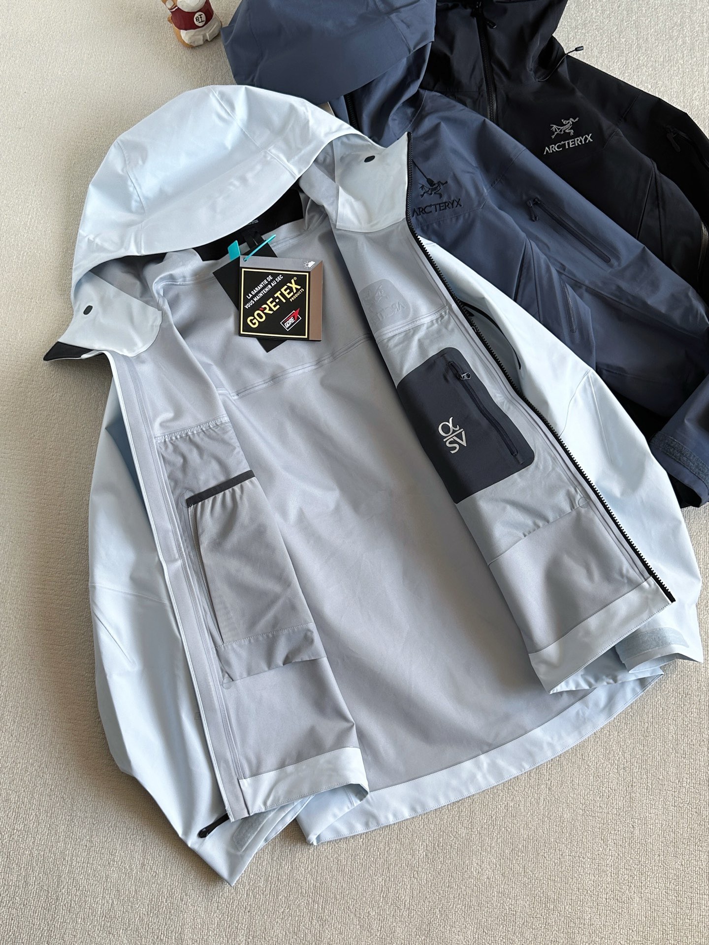 面料:采用经五年开发的新N80p-X GORE-TEX®面料 这款Alpha SV极度耐磨 柔软安静 紧密机织面料 防水 防雪 耐磨 表面平滑