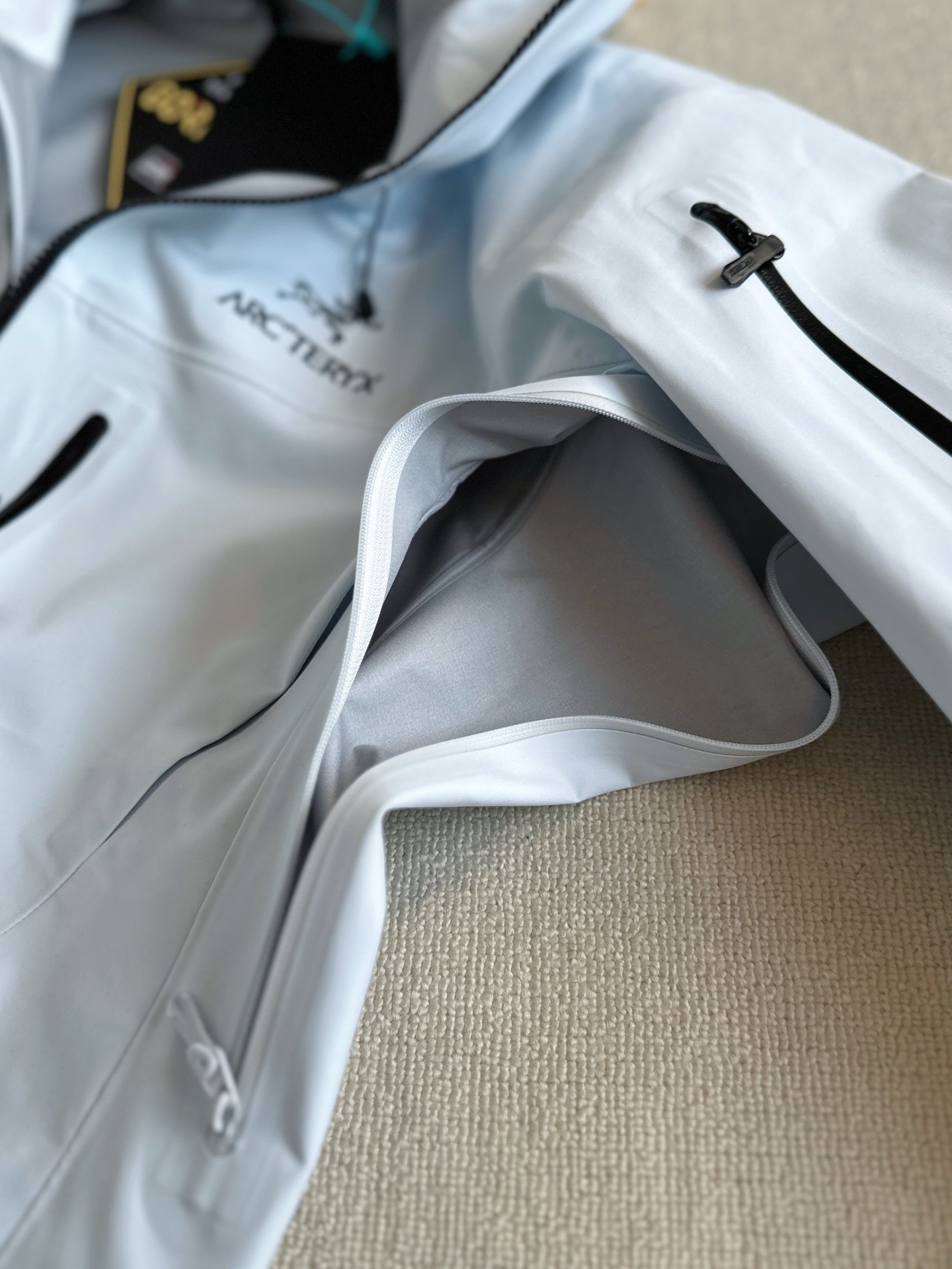 拉链: 全部拉链带有ykk特定logo 以及TPU专订防水拉链头 颜色百分之100融合 整件衣服所有拉链 分解原版1.1专门特定特染 无偏差 两个内侧压胶口袋左臂设有WaterTight™拉链口袋