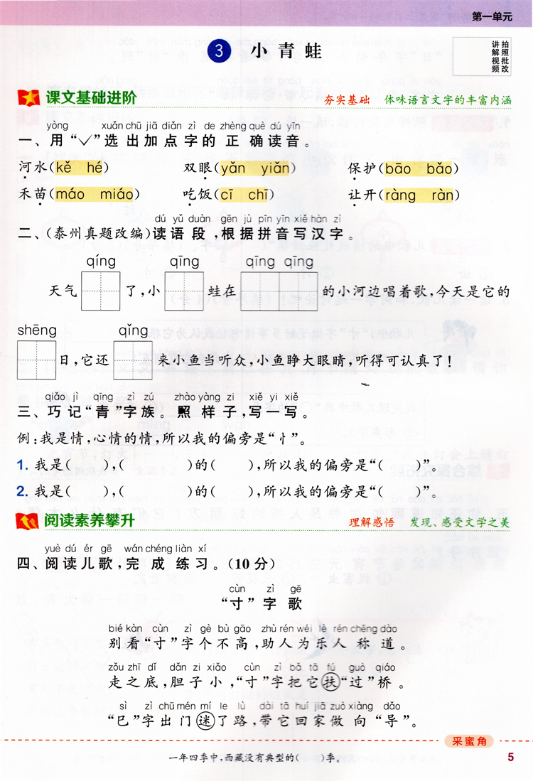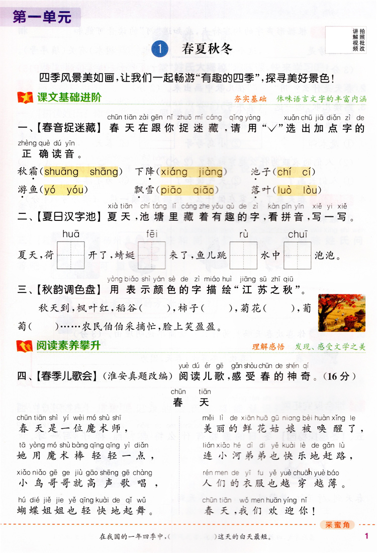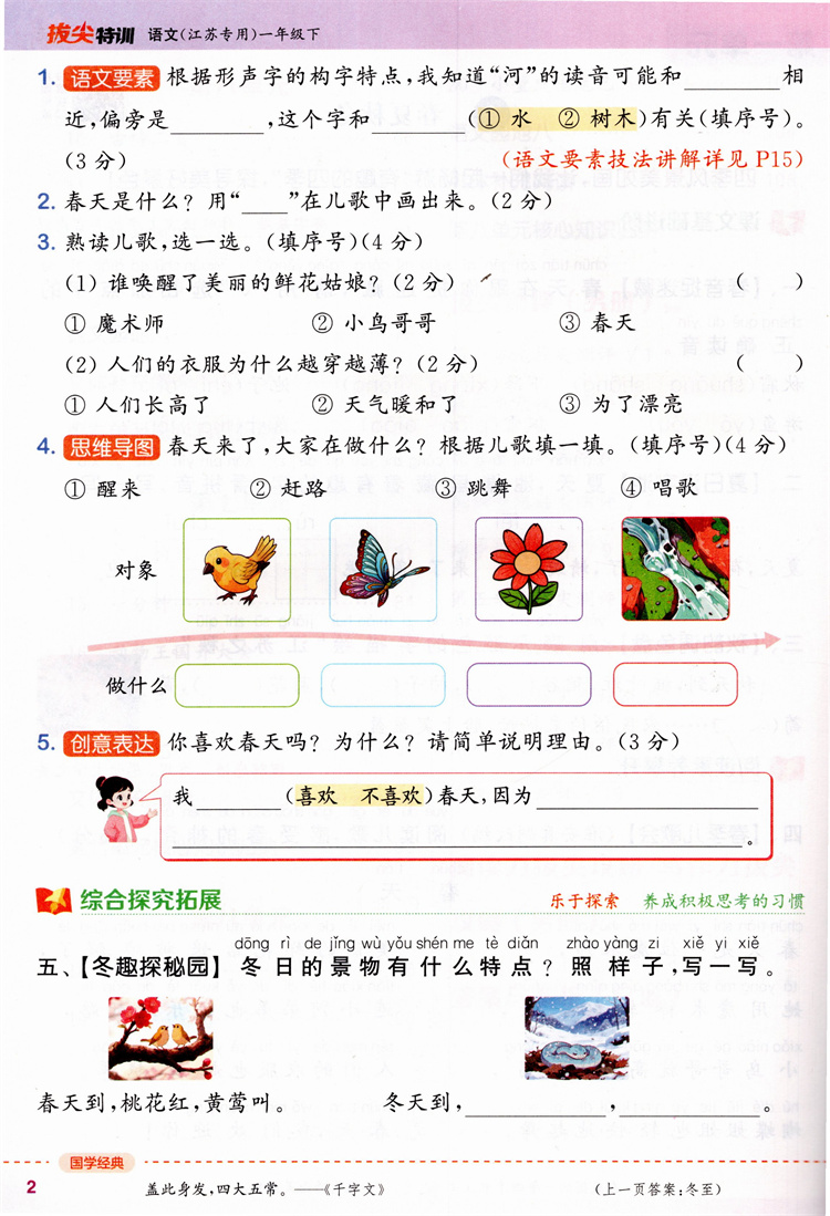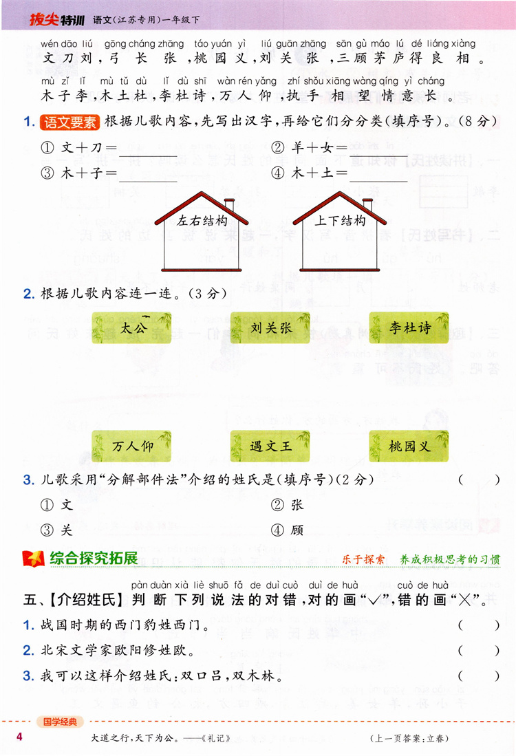 2026春 拔尖特训语文一年级下册 小学教辅 同步训练 同步人教版1下 高阶提优 精准提优 同步提优 学生用书 江苏凤凰教育出版社
