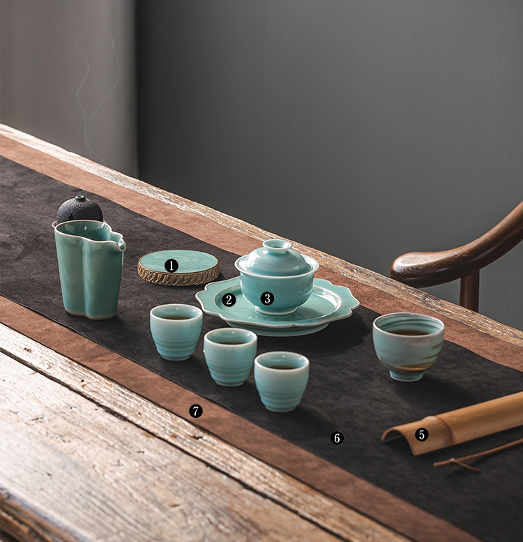 茶香记荷叶田田盖置青瓷陶瓷摆件镇纸笔搁赏玩清雅诗意茶道配件