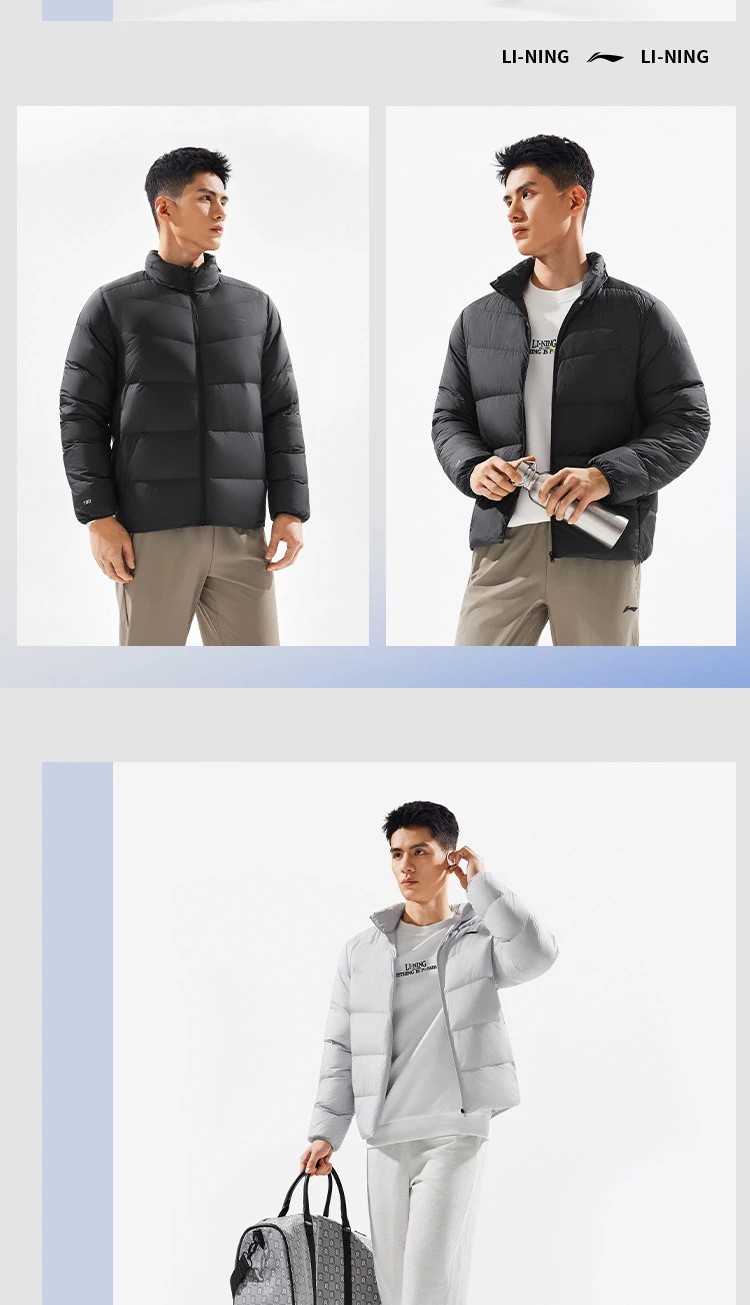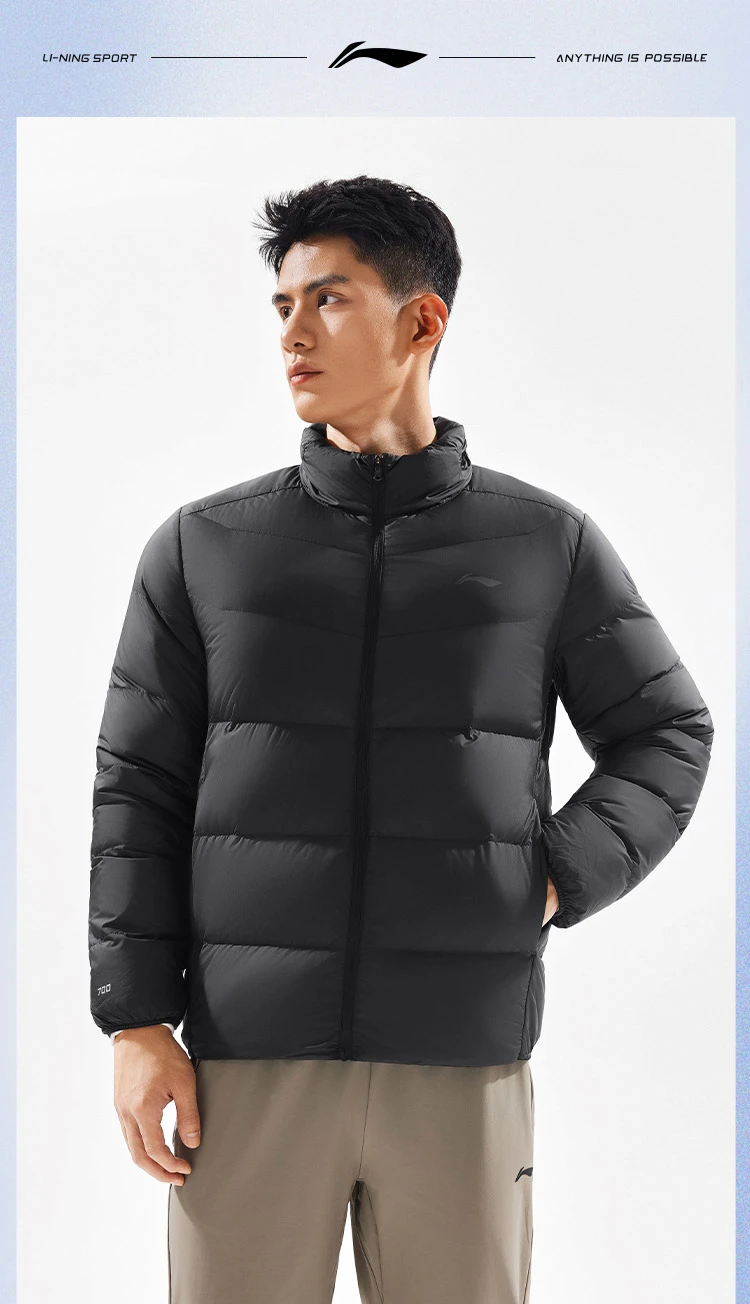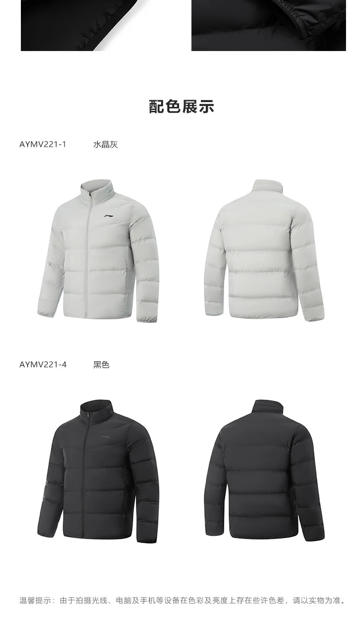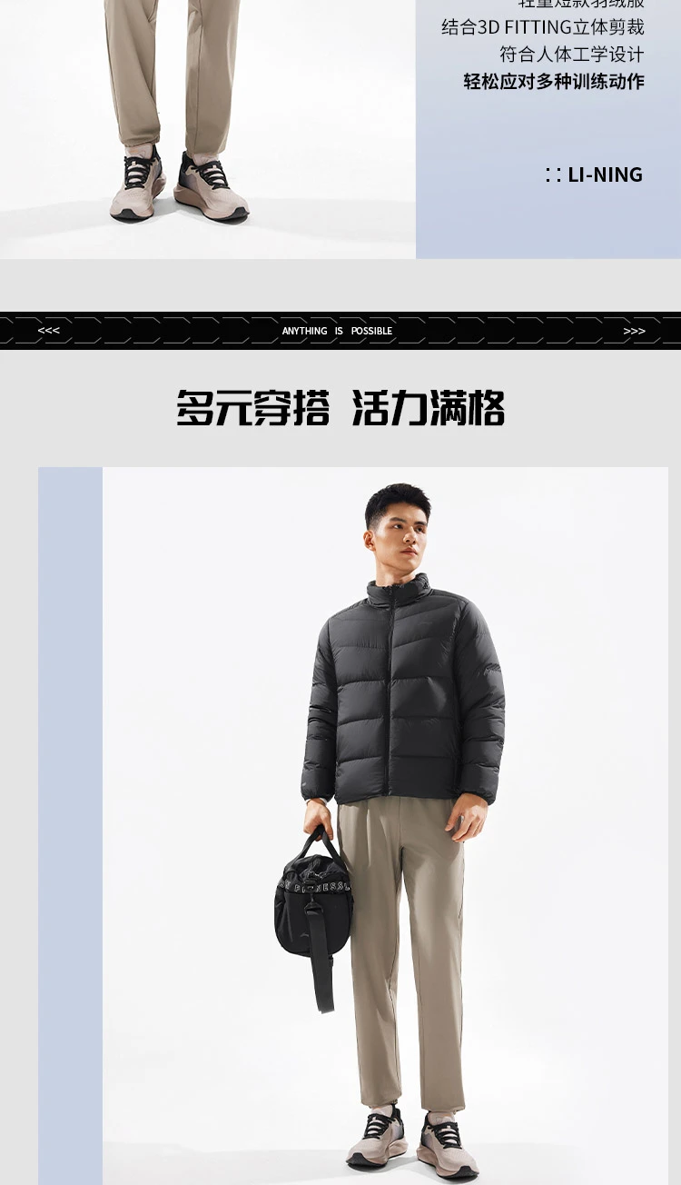 李宁男子立体裁剪修身90%鸭绒短羽绒服AYMV221
