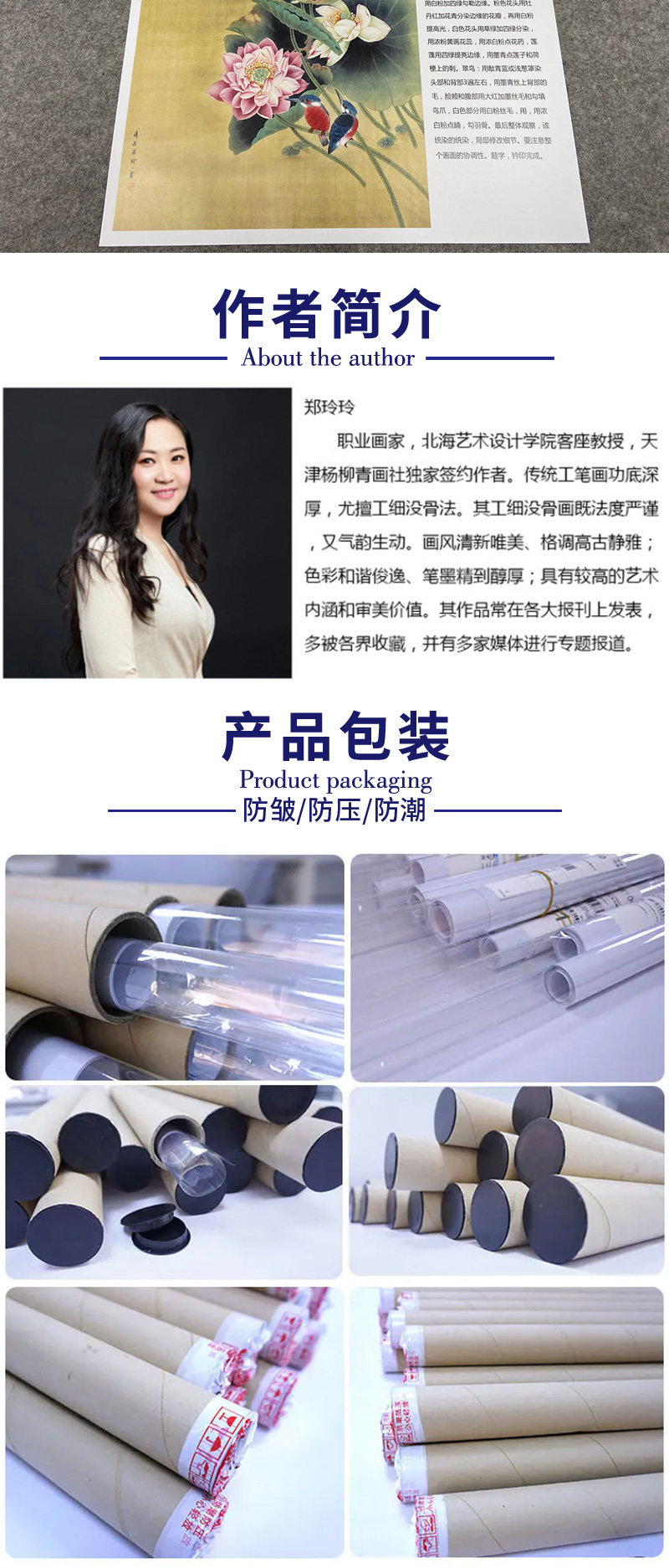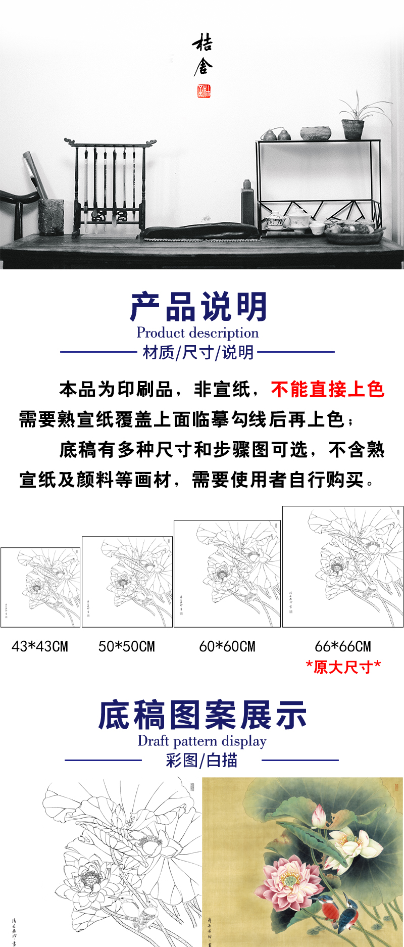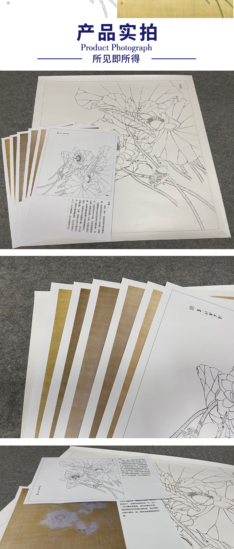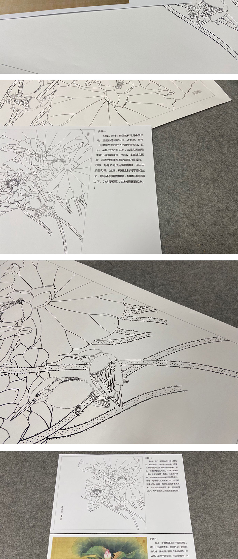 【有步骤、大彩图】郑玲玲工笔画白描底稿斗方小品《香风翠羽情意长》荷花初学者临摹花鸟线稿ZL89