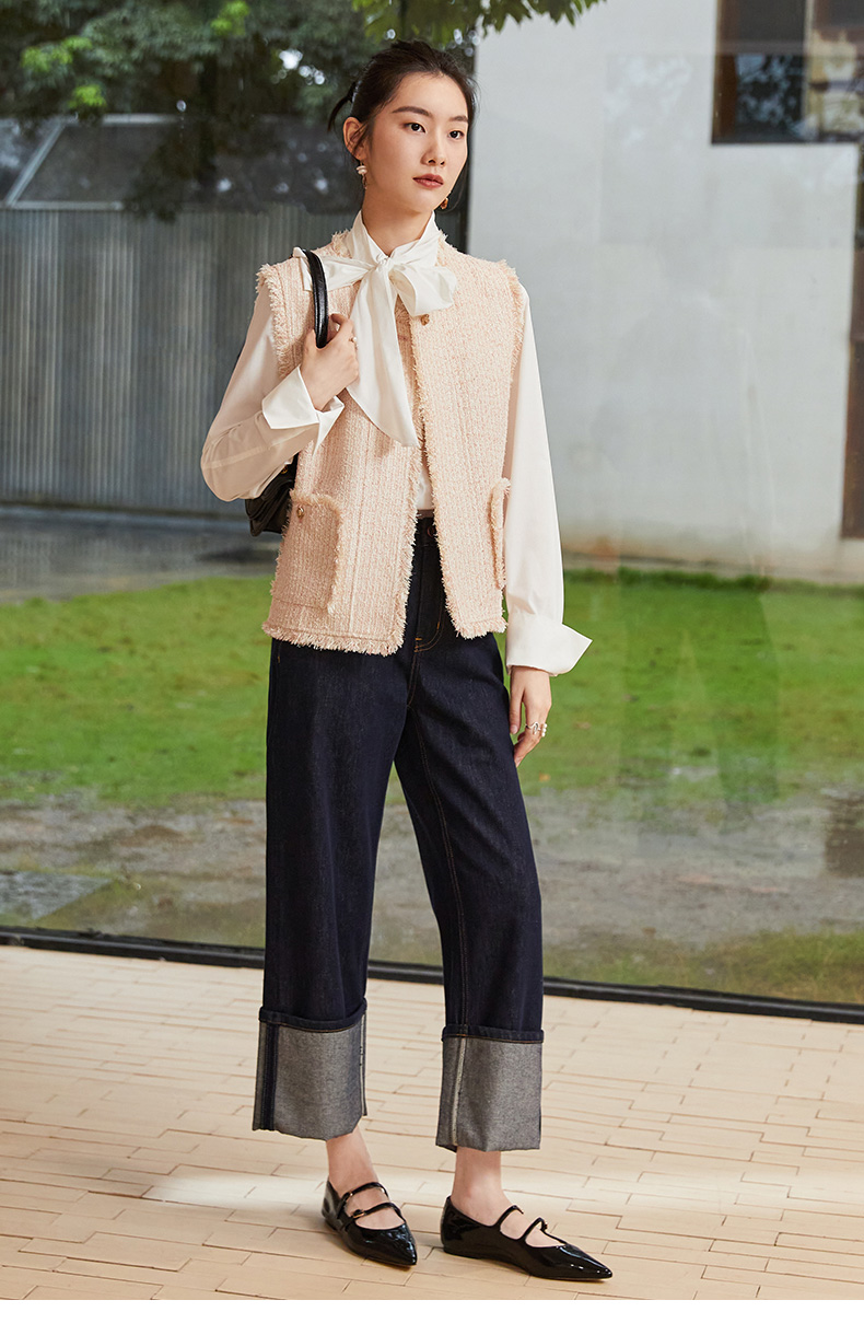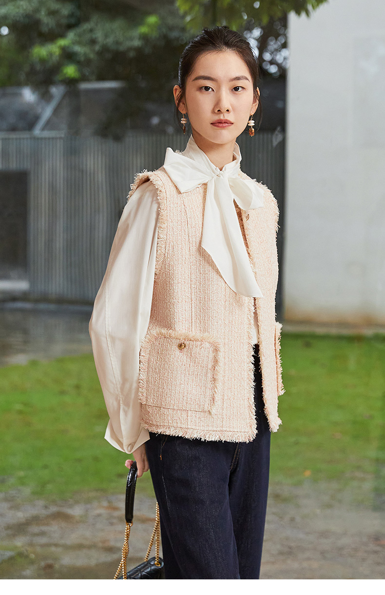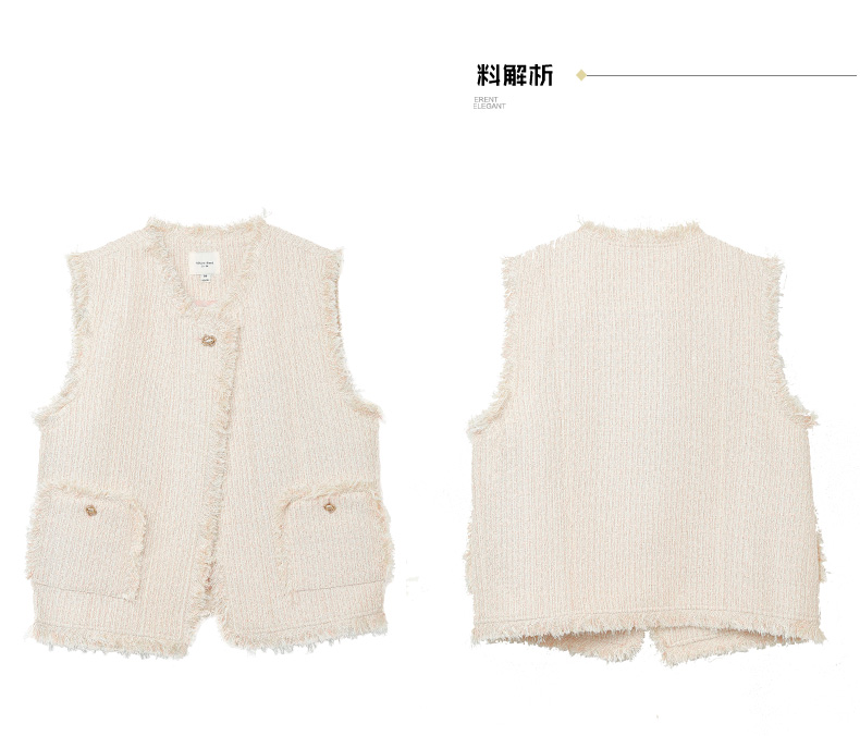 高级感小香风马甲 春夏季新款浅杏色流苏边宽松外搭背心