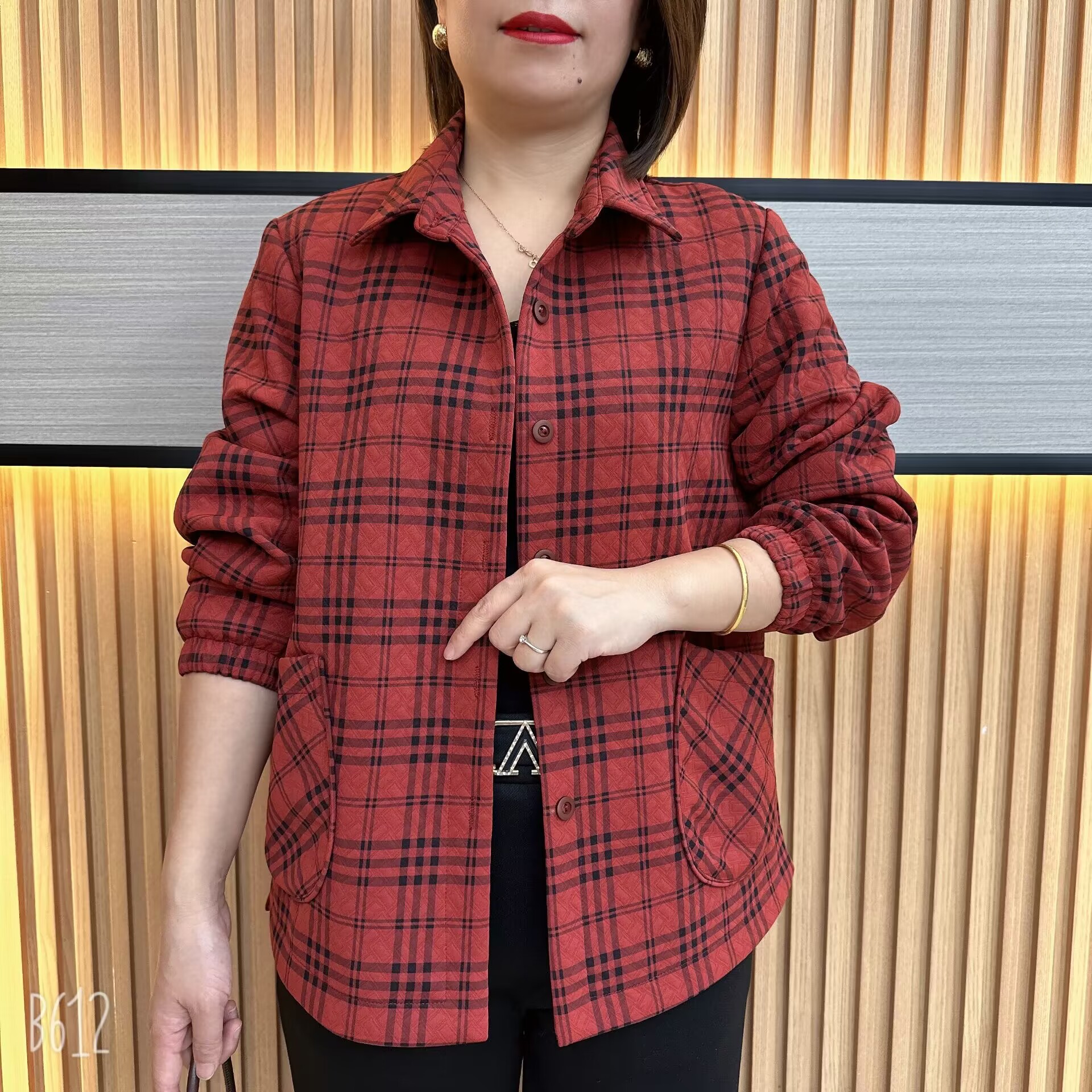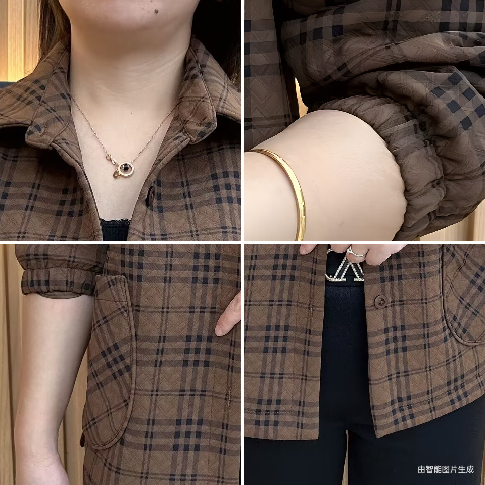 中老年时尚女装春秋新款洋气百搭格子长袖外套气质显瘦妈妈上衣女