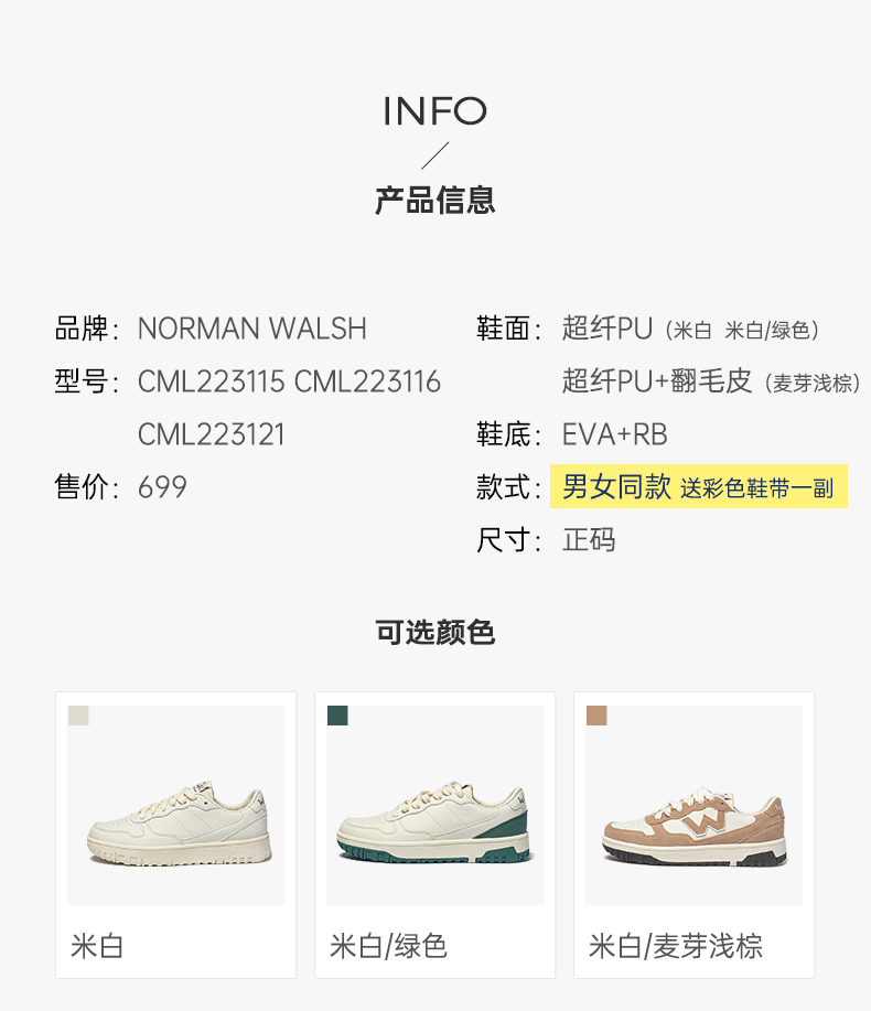 撞色拼接 NormanWalsh秋冬新款CML系列板鞋(送一副鞋带)