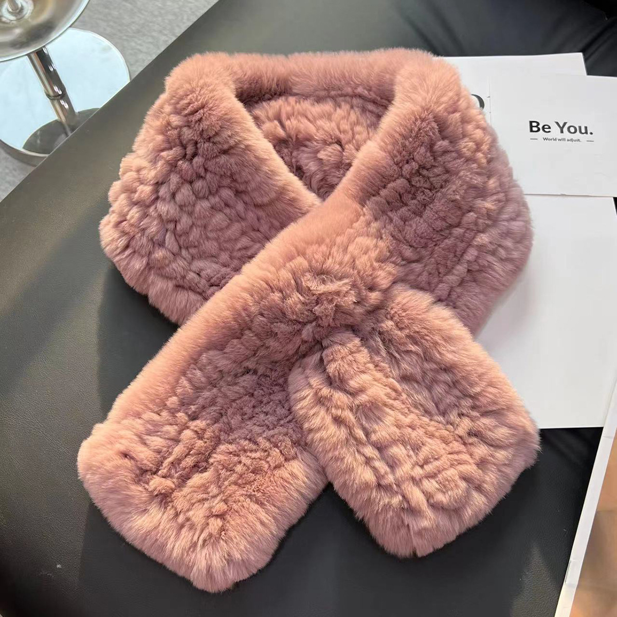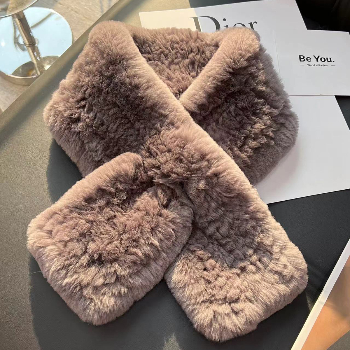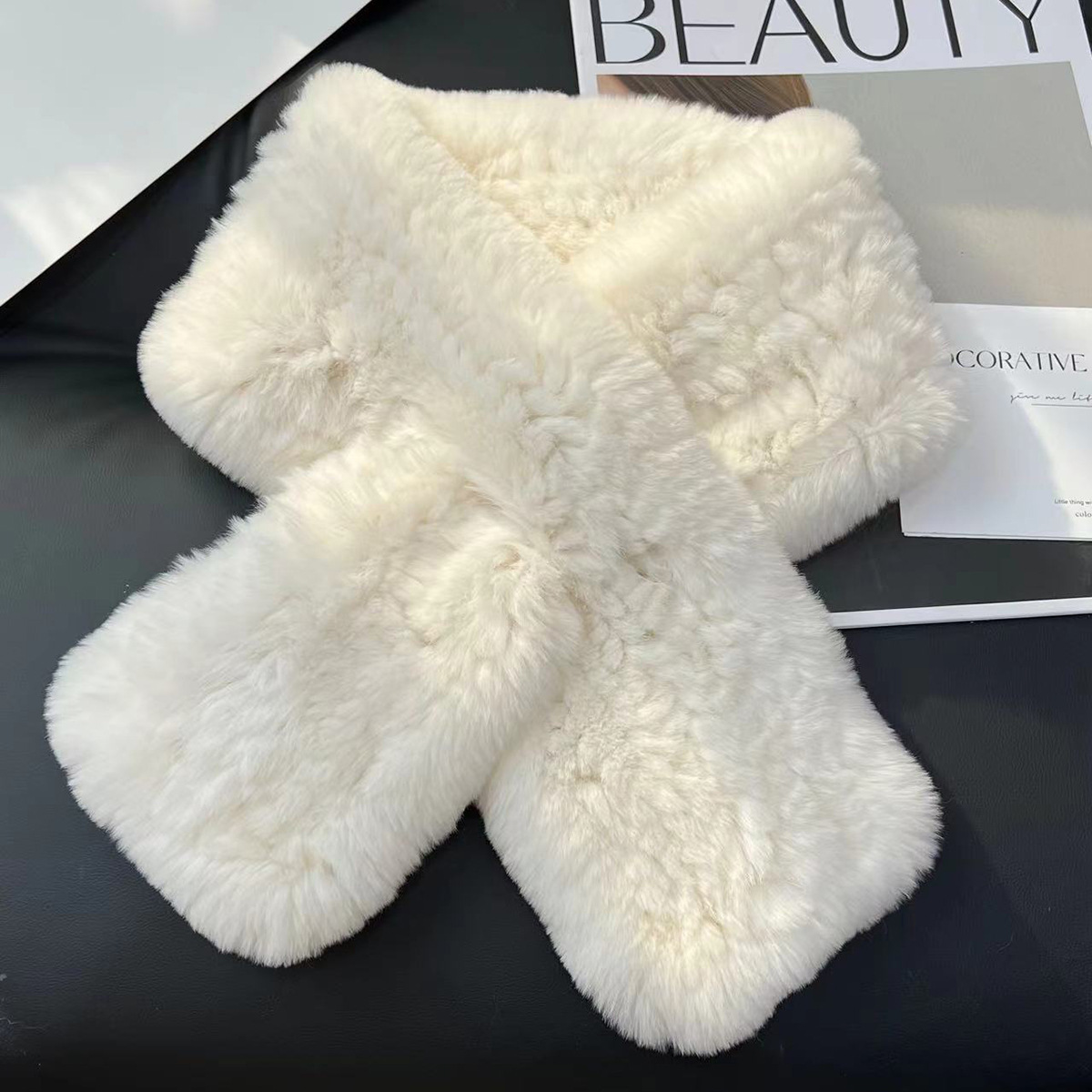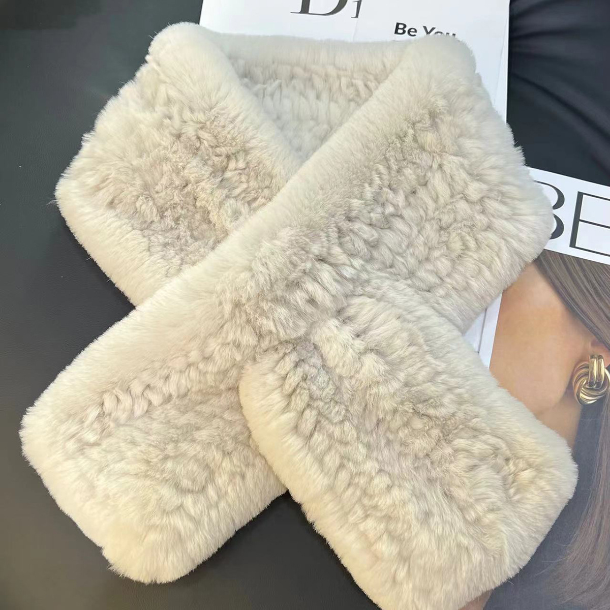 丁摩 进口真獭兔毛皮草围巾韩版简约编制毛毛围脖保暖双面加厚毛领5ZF-1919