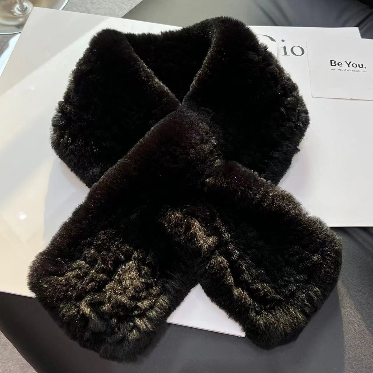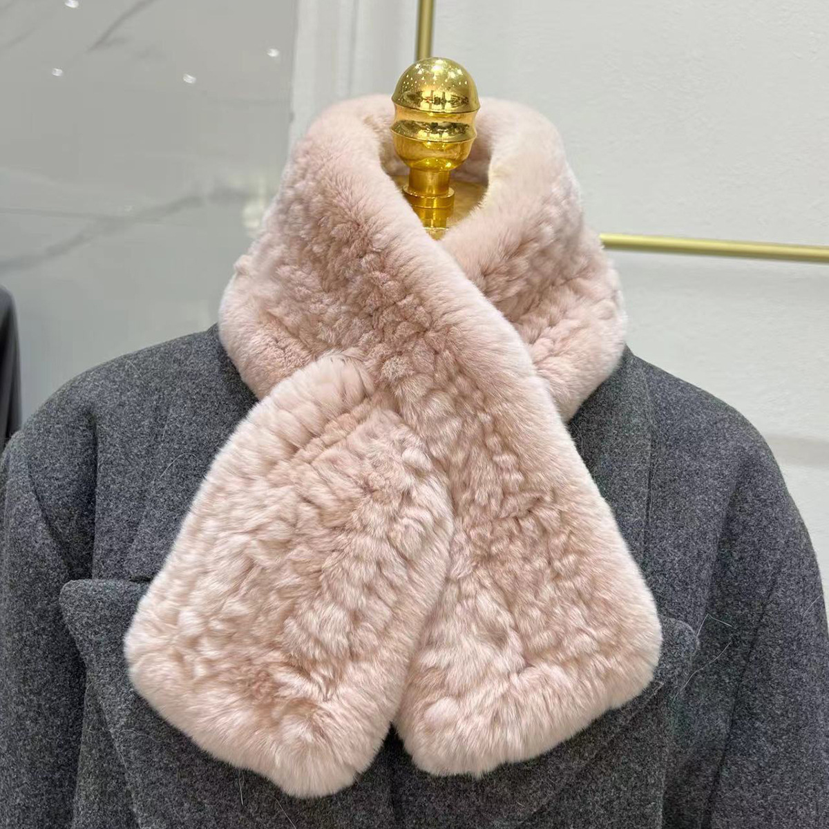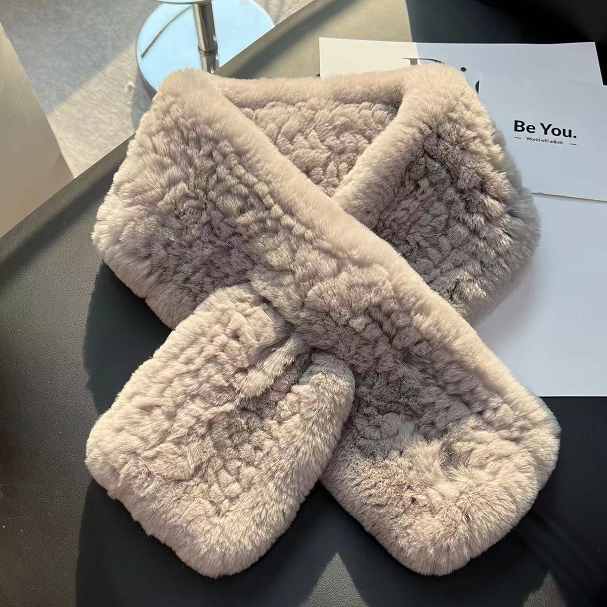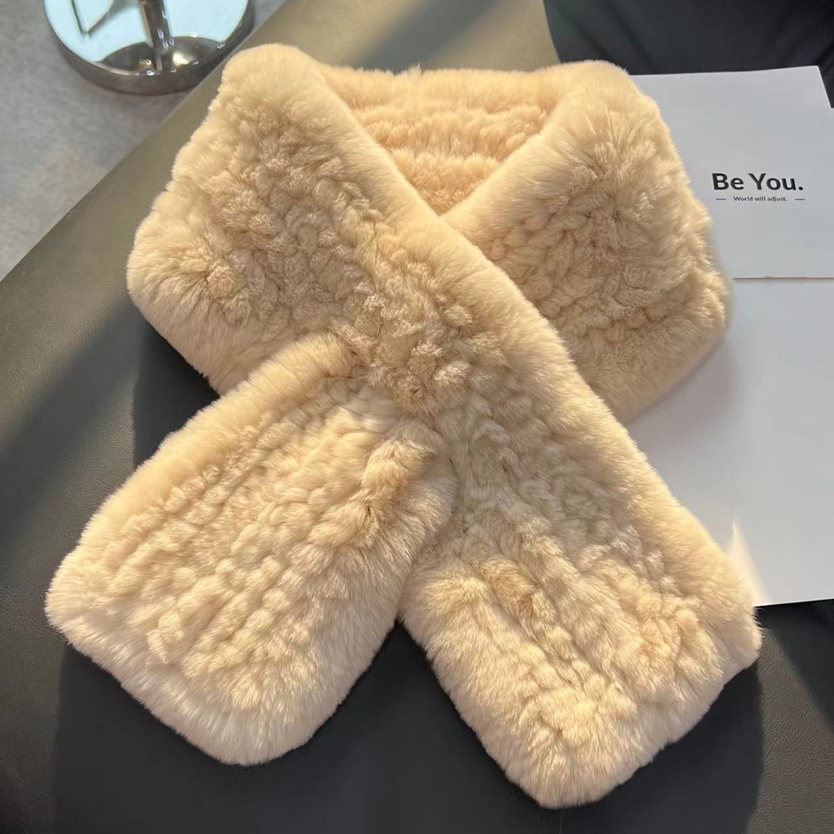 丁摩 进口真獭兔毛皮草围巾韩版简约编制毛毛围脖保暖双面加厚毛领5ZF-1919