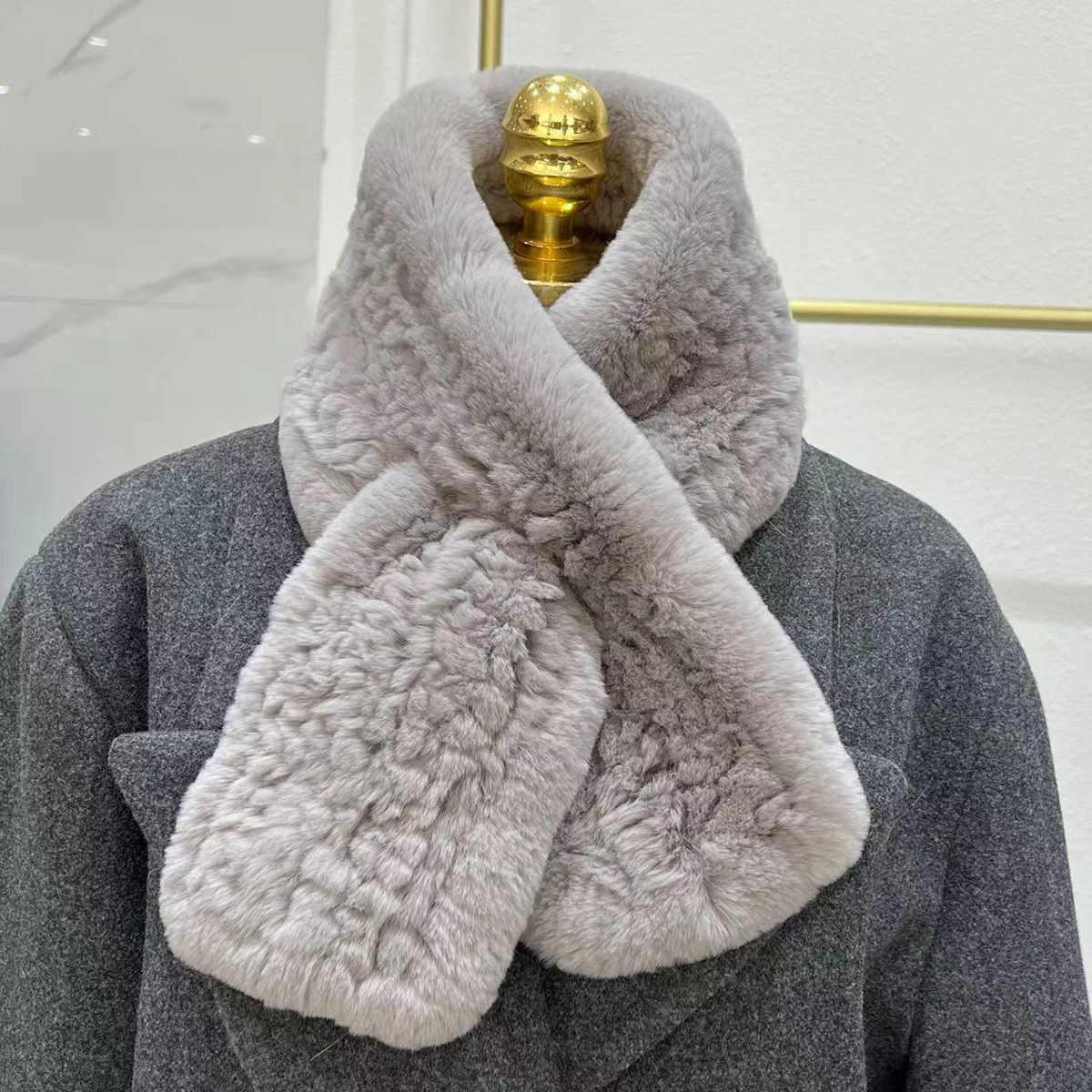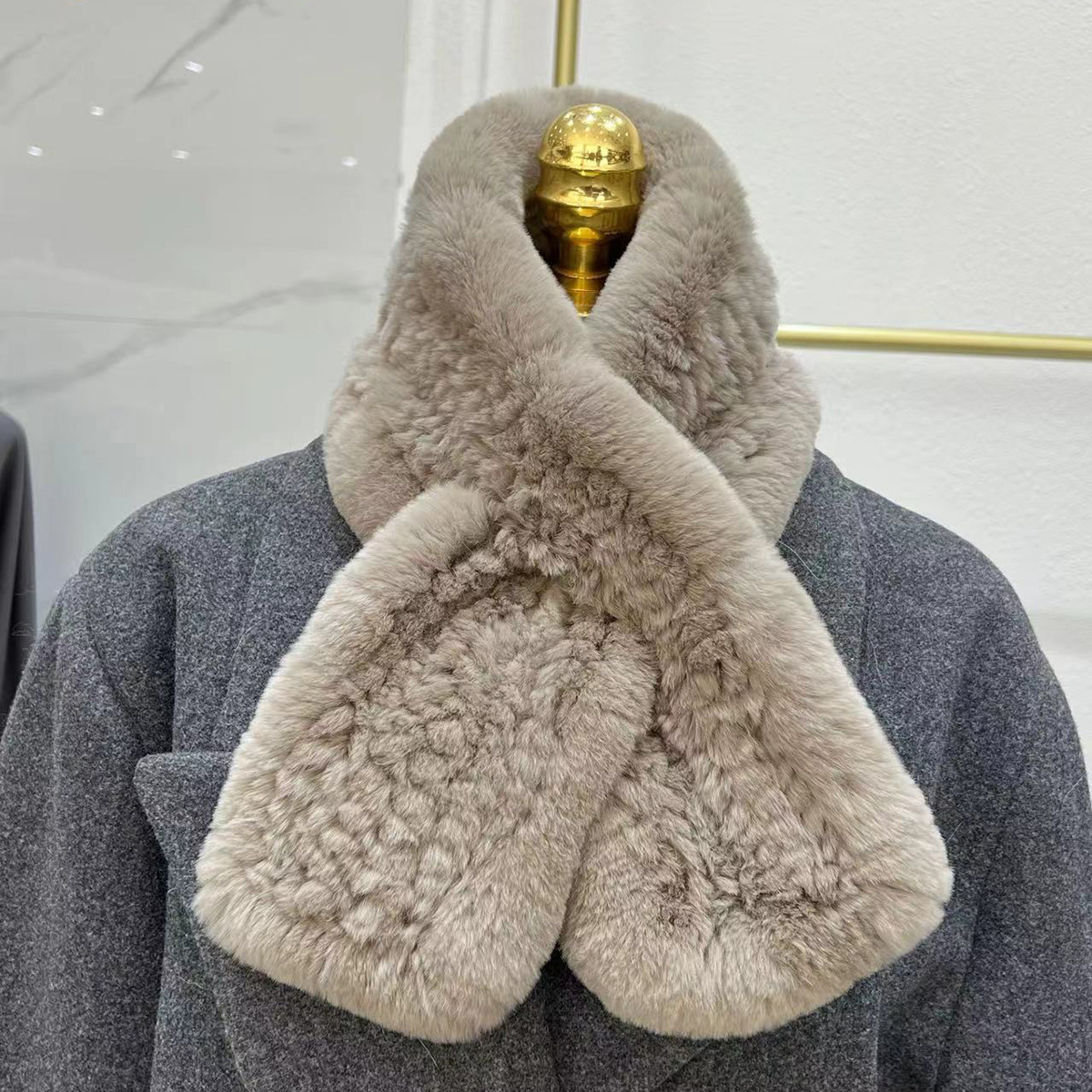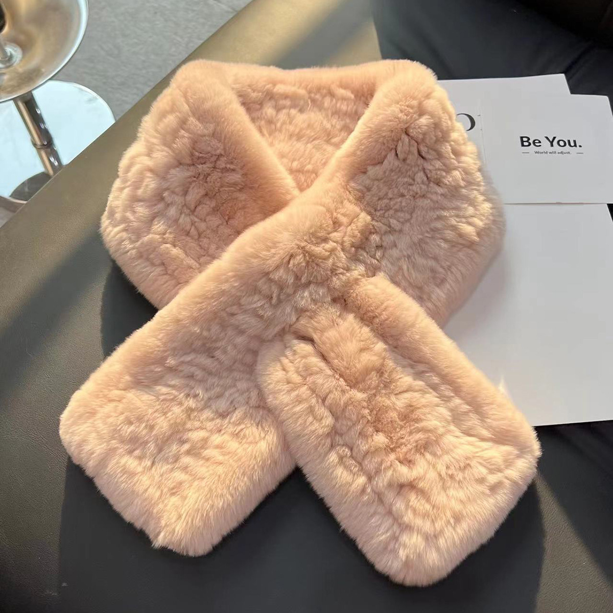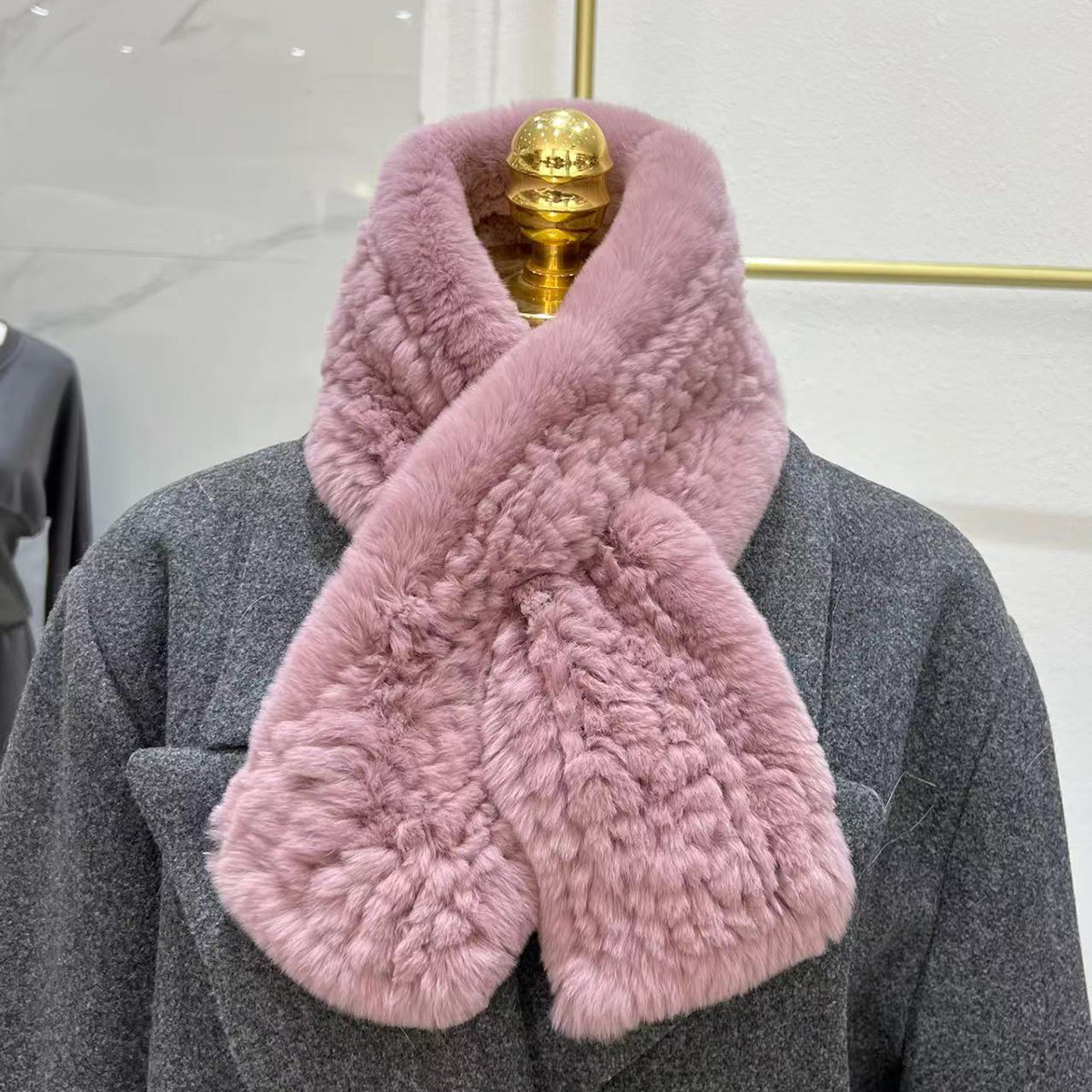 丁摩 进口真獭兔毛皮草围巾韩版简约编制毛毛围脖保暖双面加厚毛领5ZF-1919