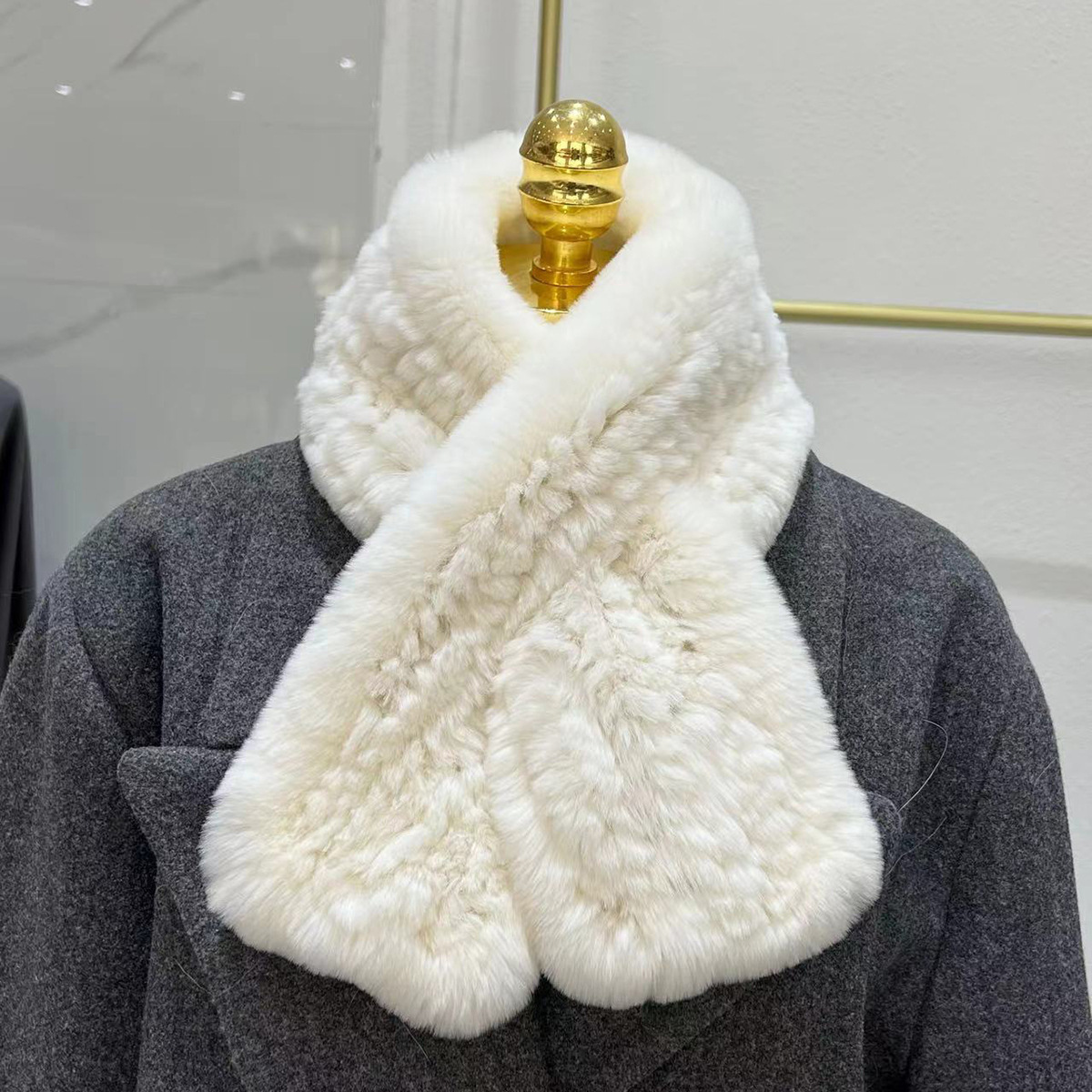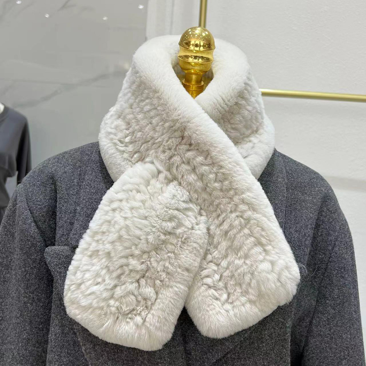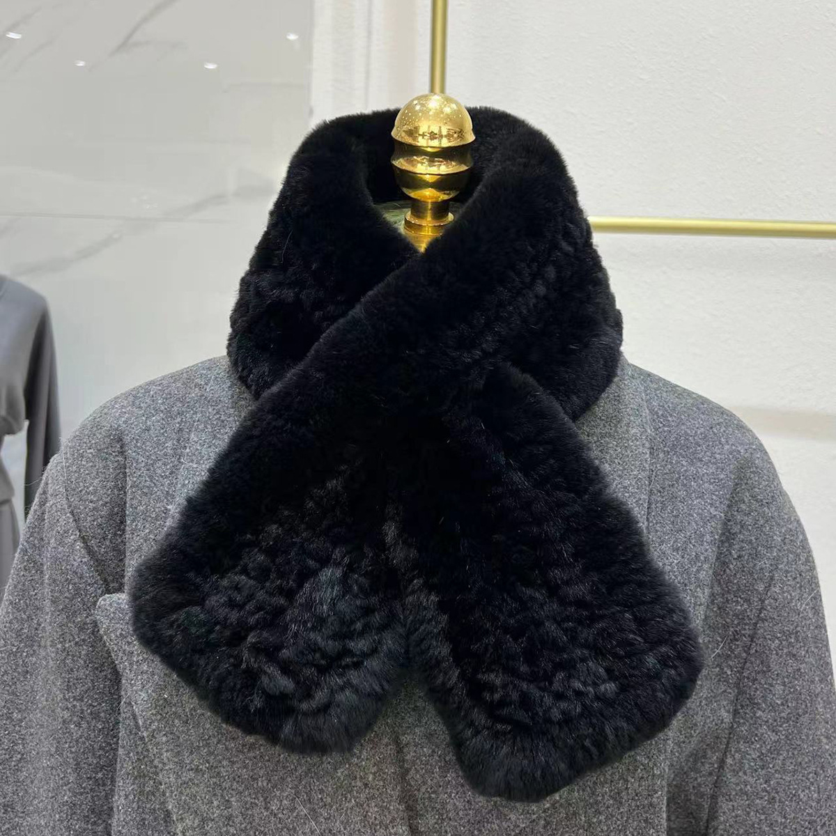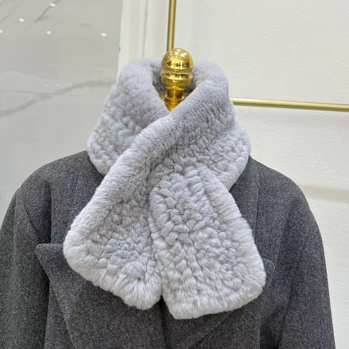 丁摩 进口真獭兔毛皮草围巾韩版简约编制毛毛围脖保暖双面加厚毛领5ZF-1919