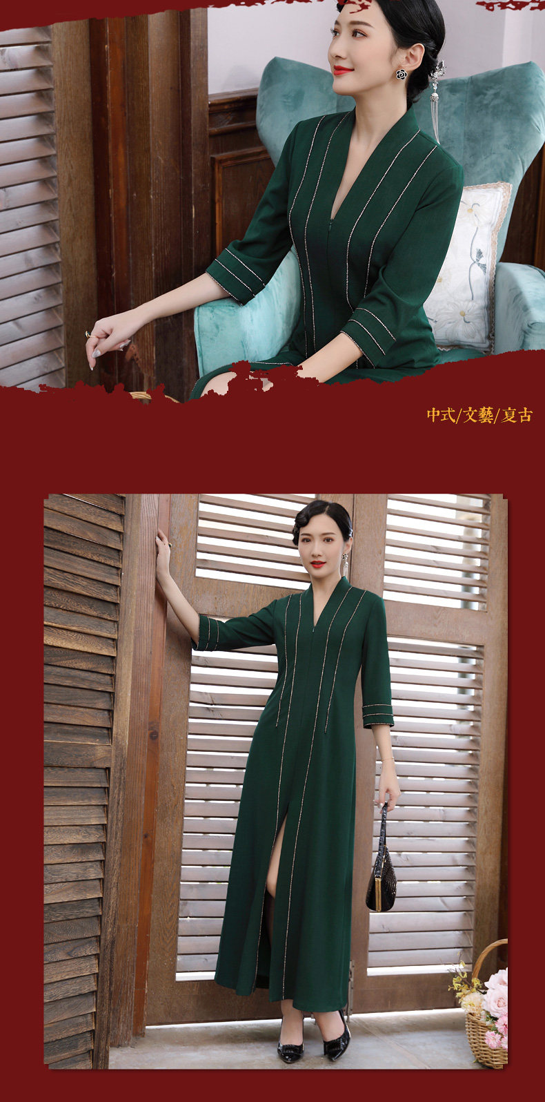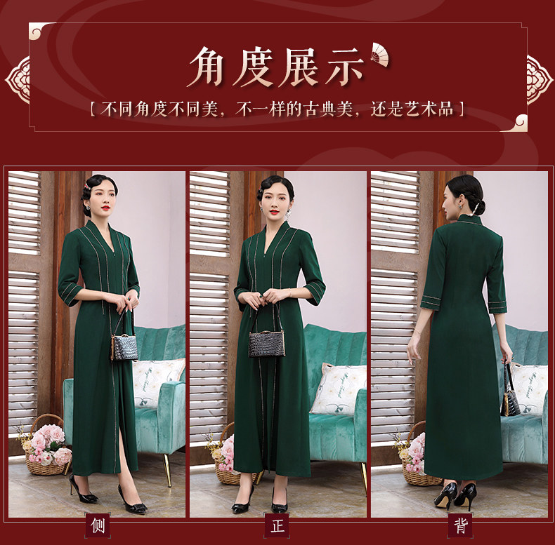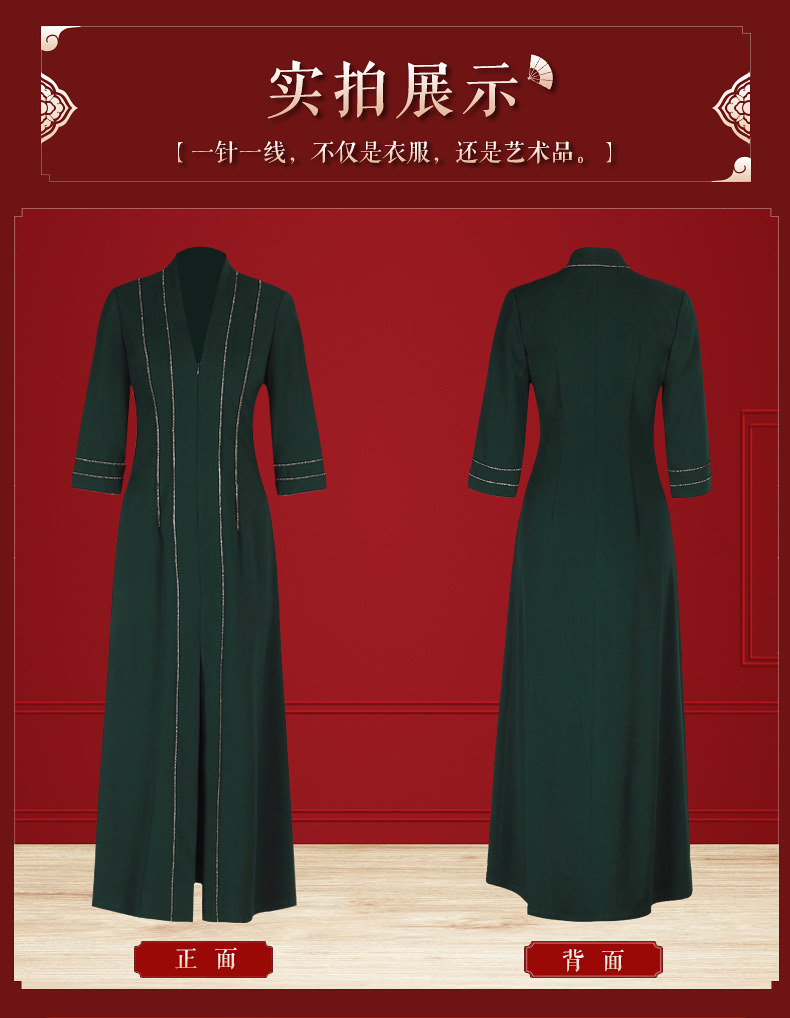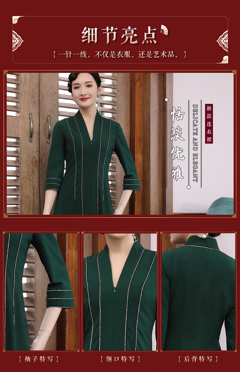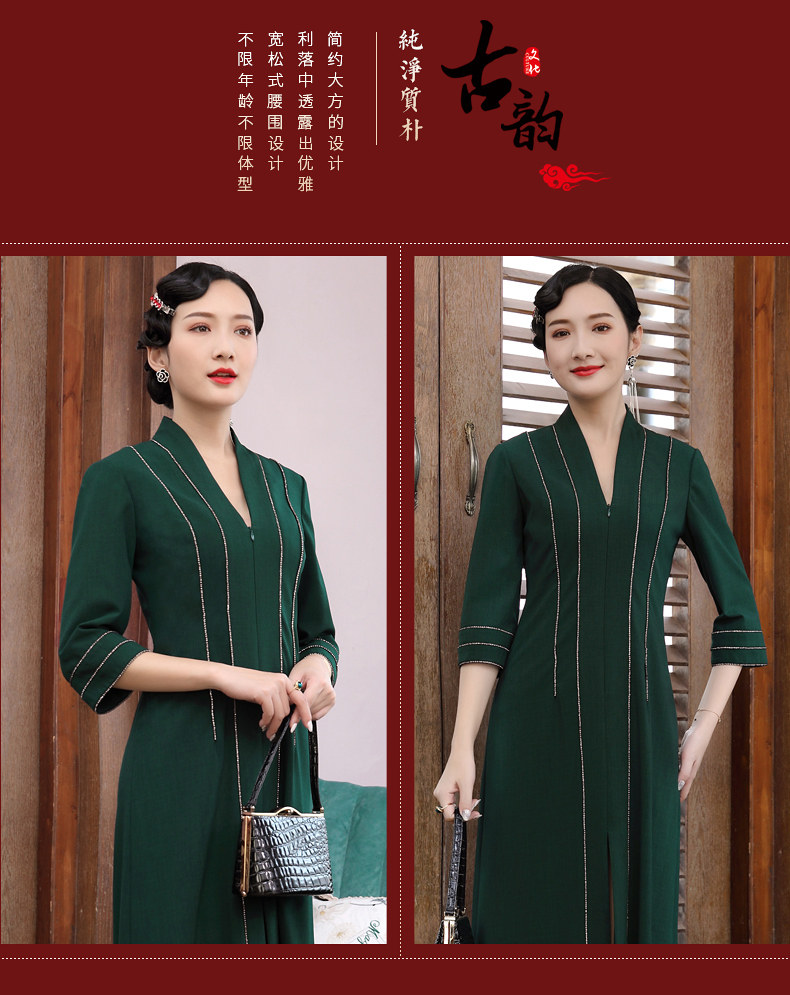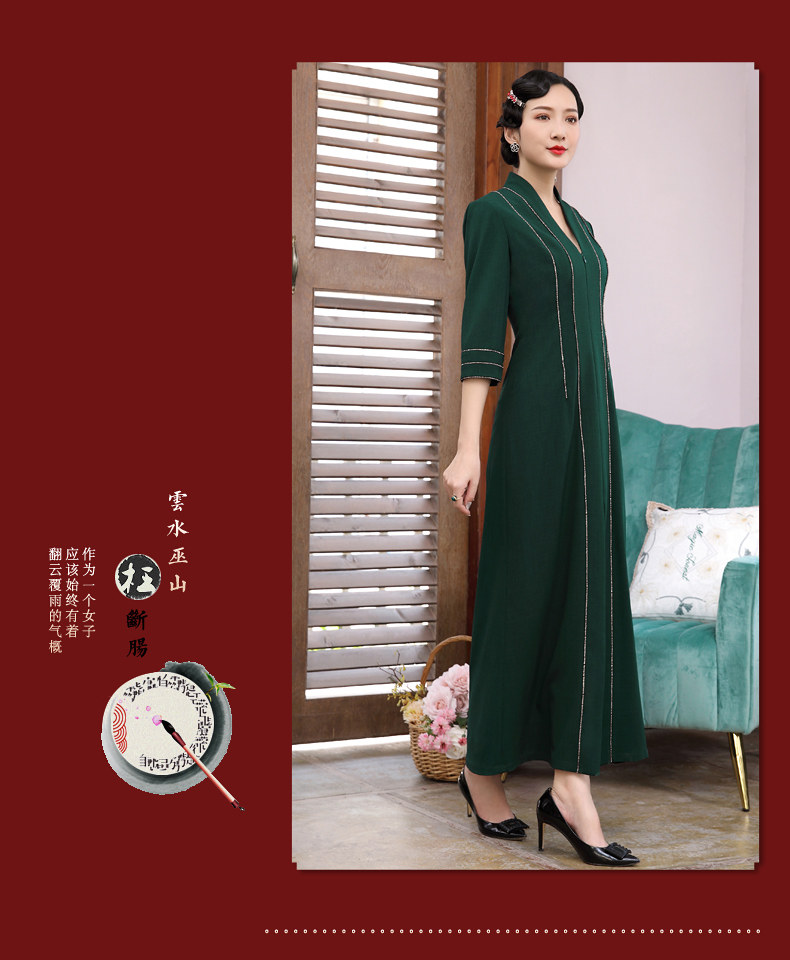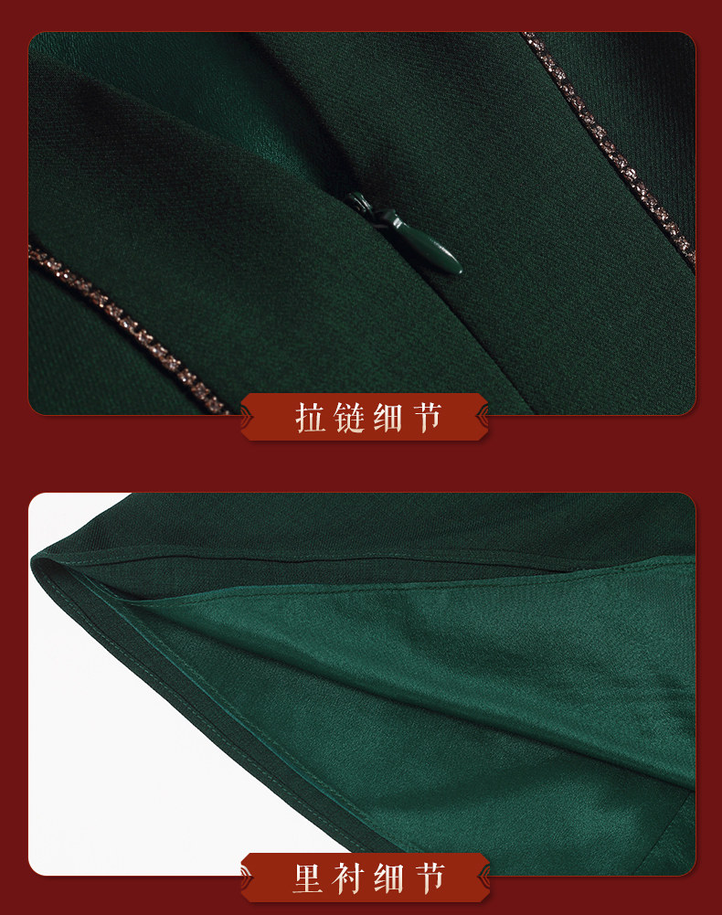 DLQ-A2111法式复古绿色收腰显瘦轻熟风连衣裙