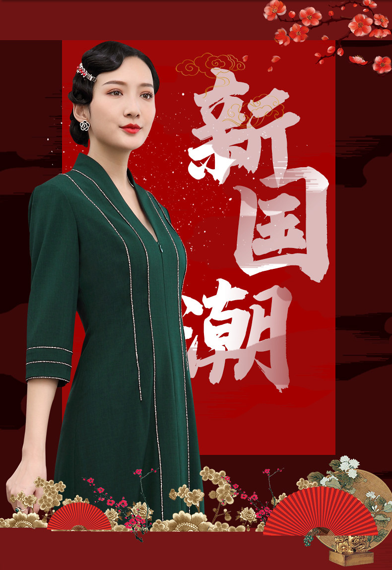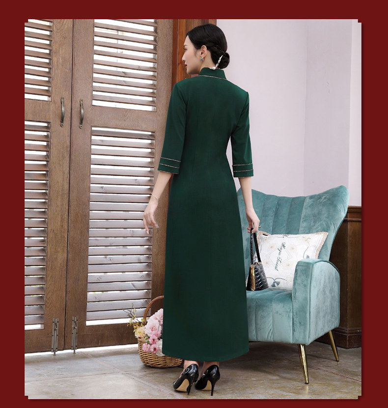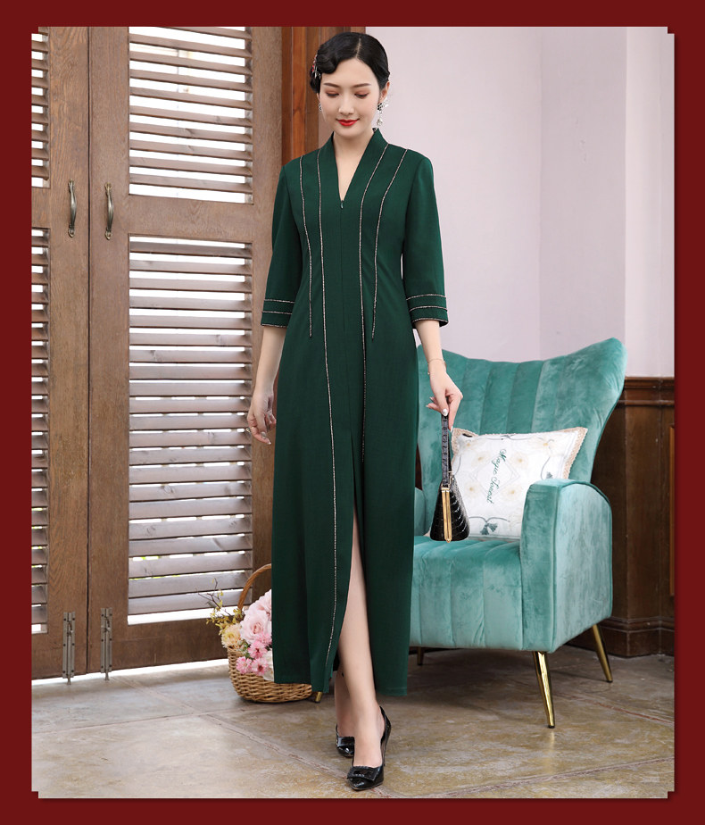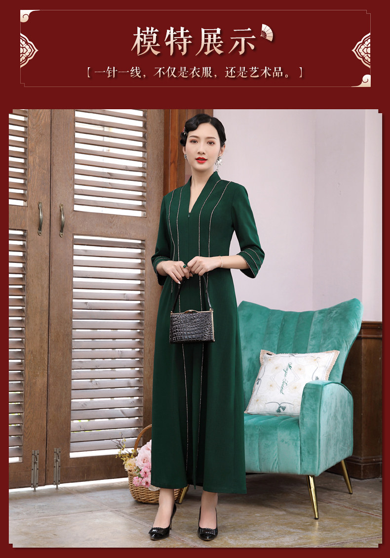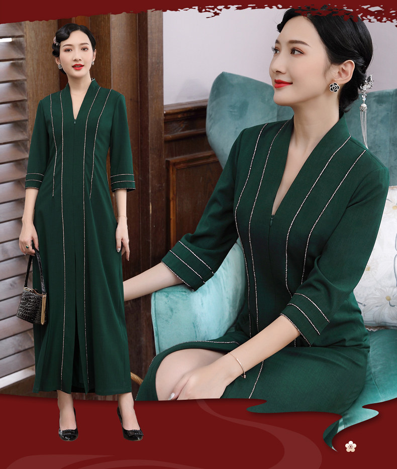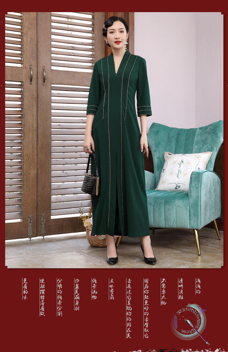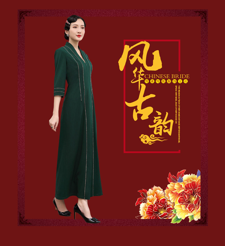 DLQ-A2111法式复古绿色收腰显瘦轻熟风连衣裙