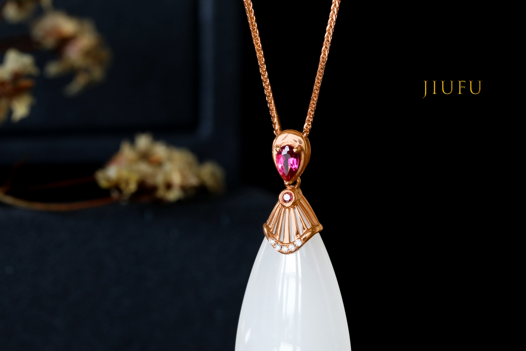 18k玫瑰金和田玉(白玉)吊坠