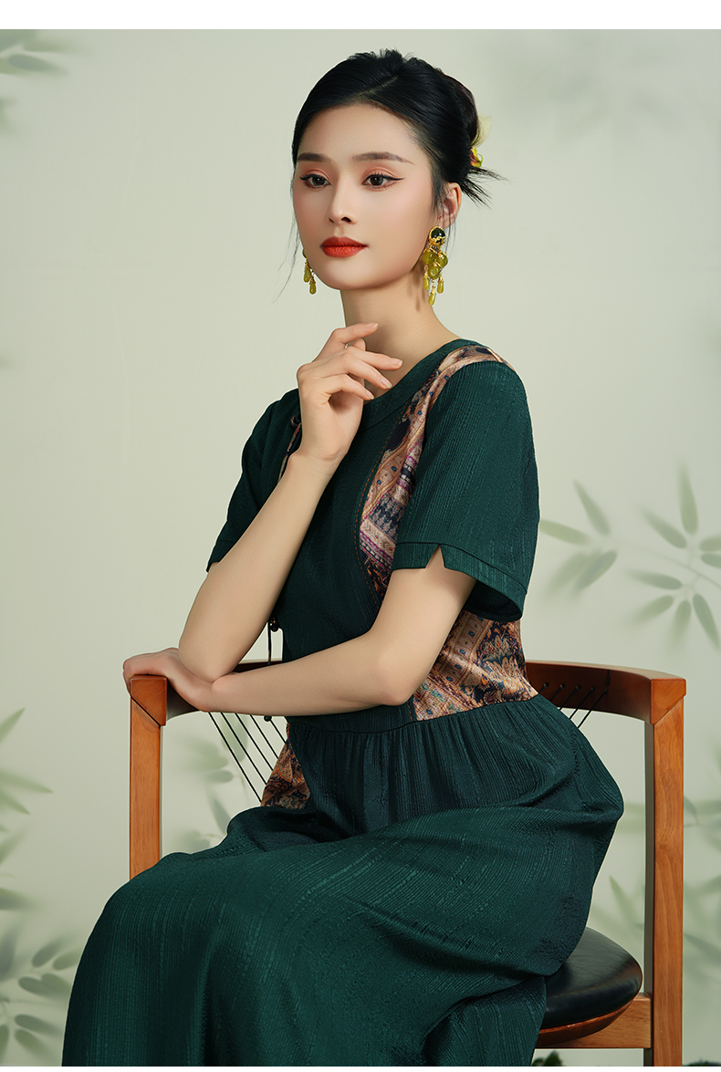 乔万尼真丝桑蚕丝连衣裙新款不规则拼接设计感EF2E402
