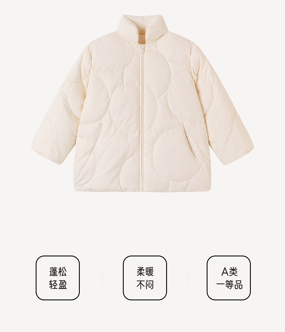 【高定系列】英氏儿童羽绒服米黄秋冬外套短款男童女童新款超韧绒