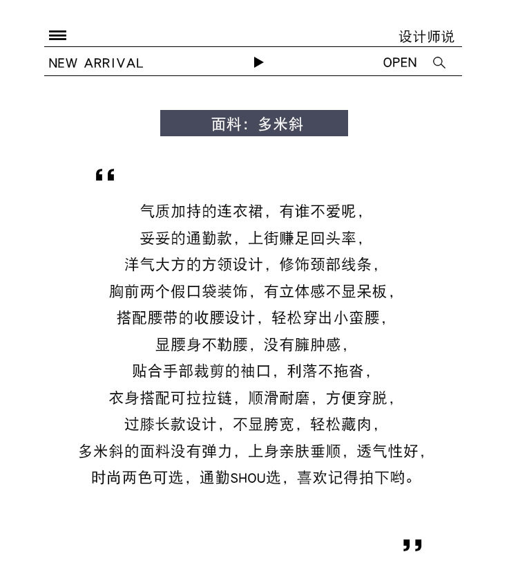 双十二福利!【诗铭洛可】XC7689 连衣裙拉链款方领长袖裙