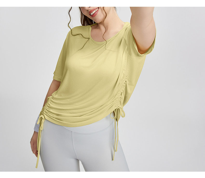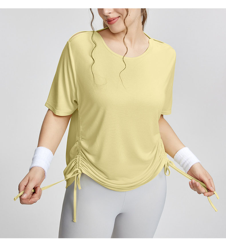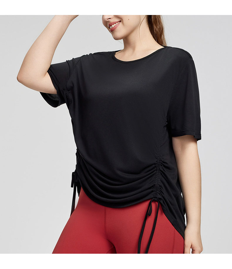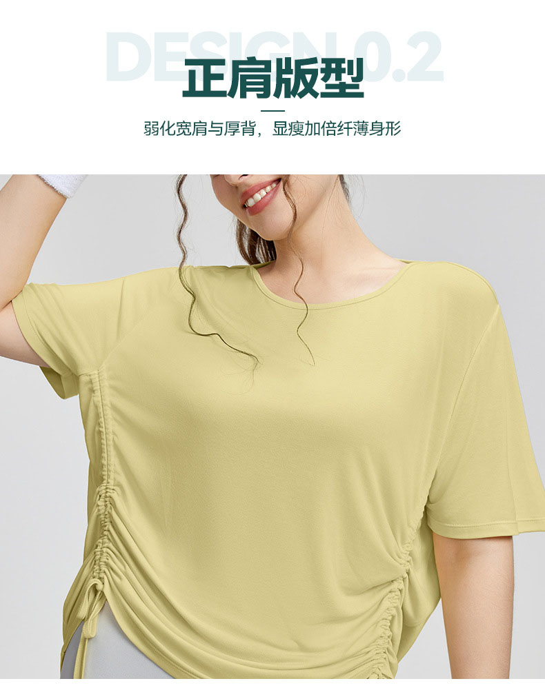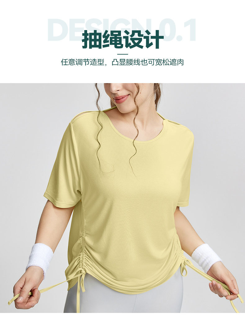 【限时秒】YOGACODE【火树银花系列】新款大码短袖t恤女可调节抽绳遮肉显瘦运动罩衫DWY215435