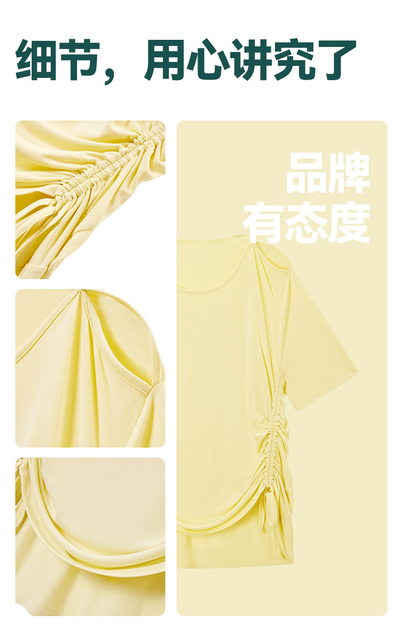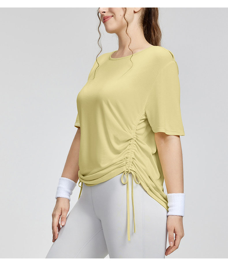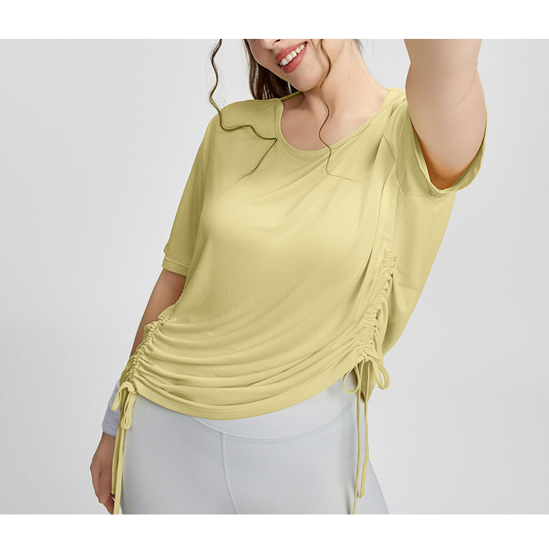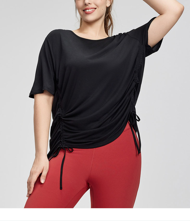 【限时秒】YOGACODE【火树银花系列】新款大码短袖t恤女可调节抽绳遮肉显瘦运动罩衫DWY215435