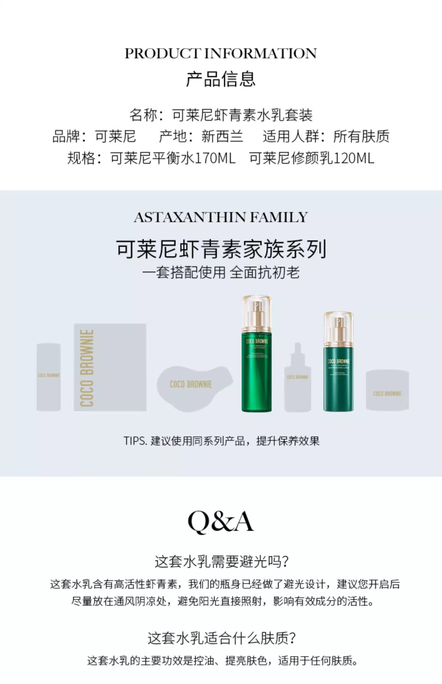 新西兰品牌 可莱尼补水保湿液 Coco Brownie虾青素乳液120ml/爽肤水170ml SZQR