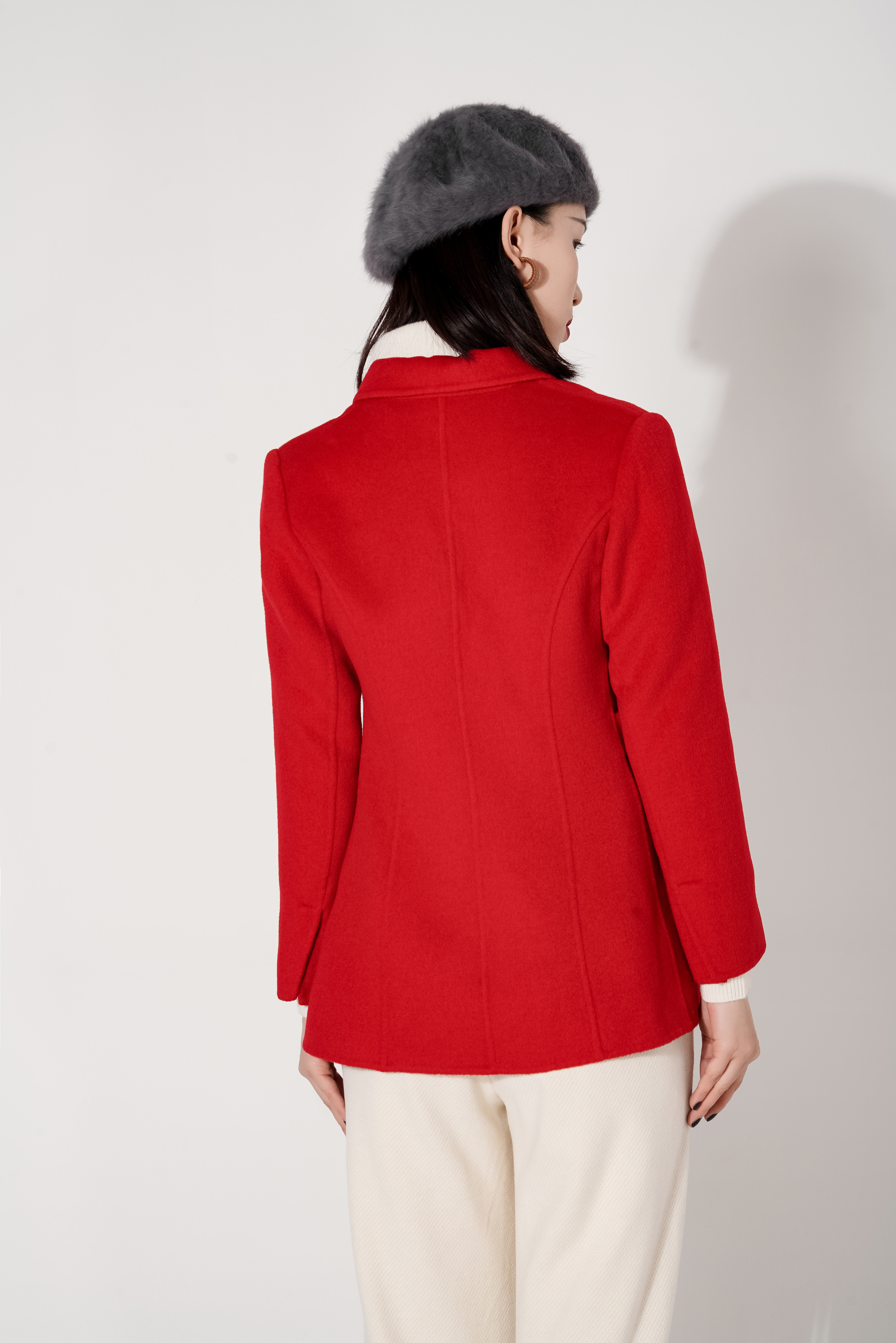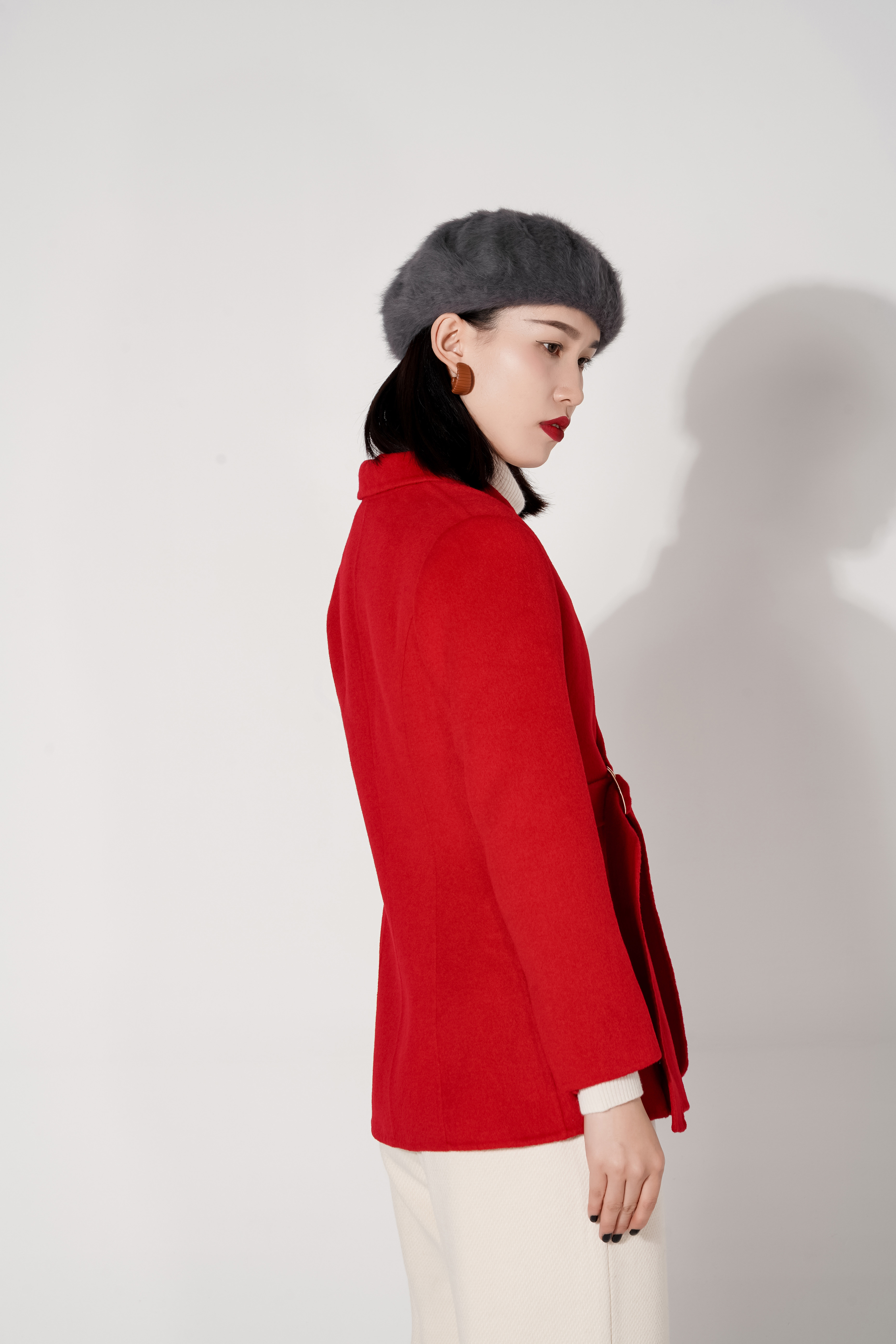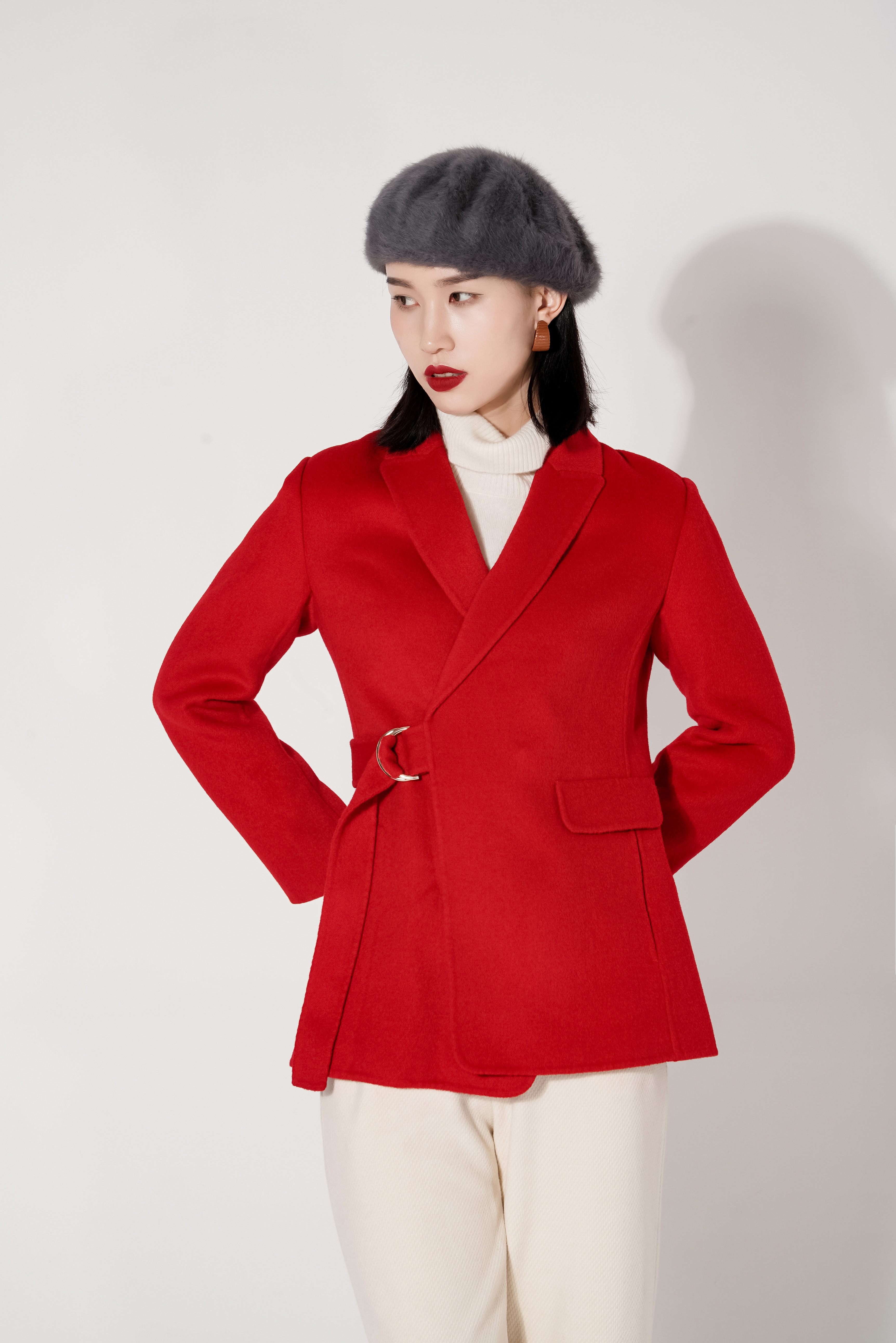 臣禾短款扣带西装式呢外套9214010176