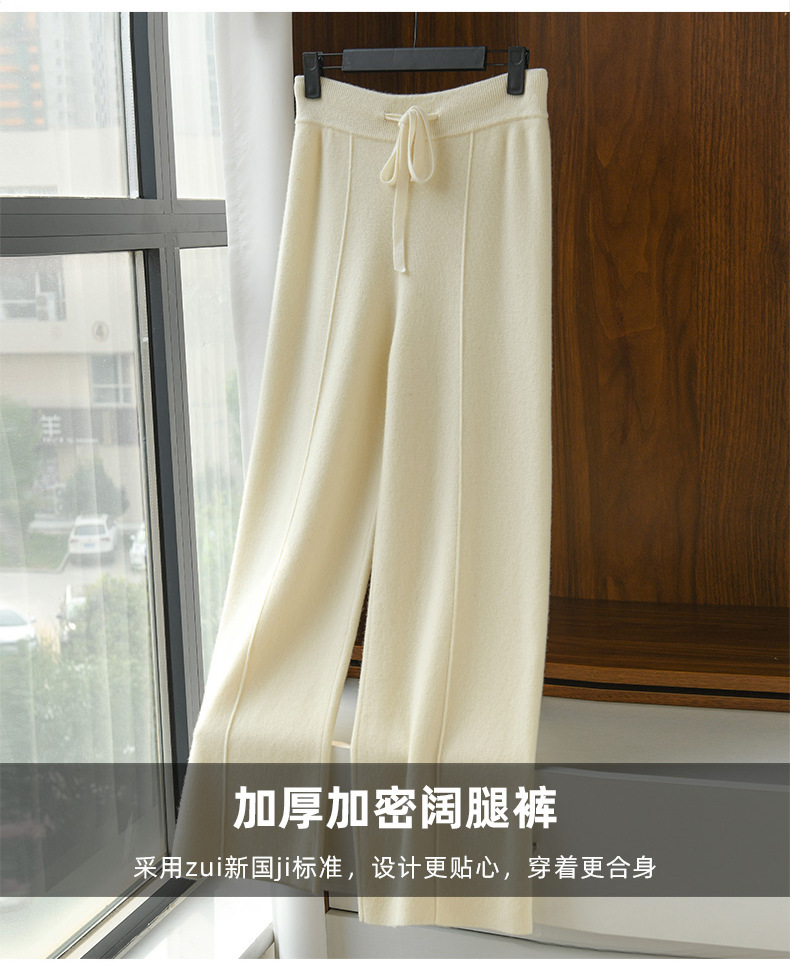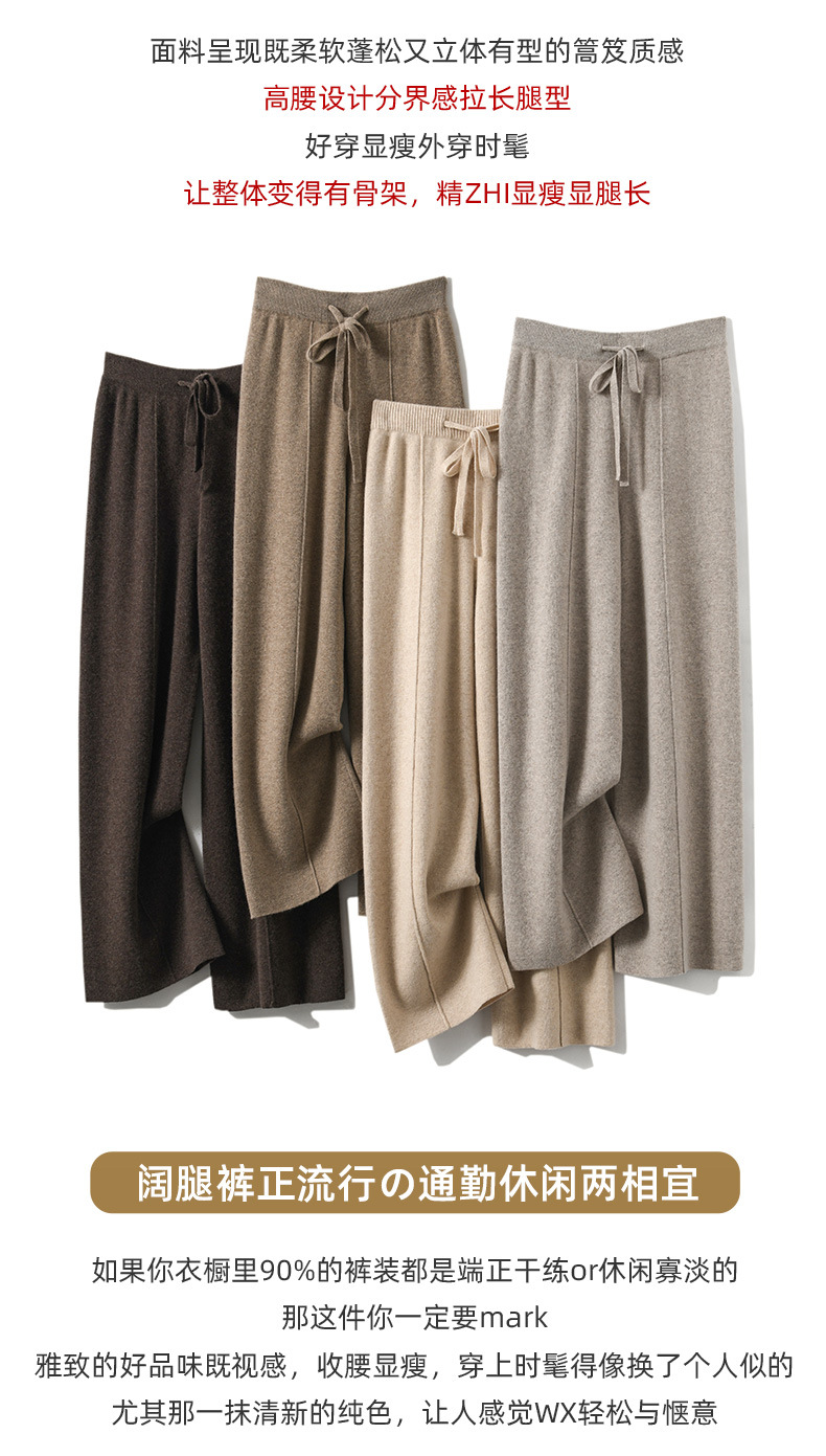 QHJY-JYK601秋冬阔腿裤女中缝直筒裤子松紧高腰垂感新款休闲裤纯色仿羊绒长裤