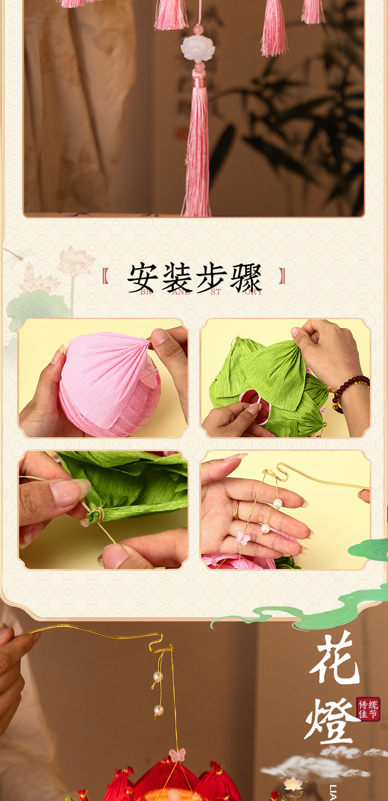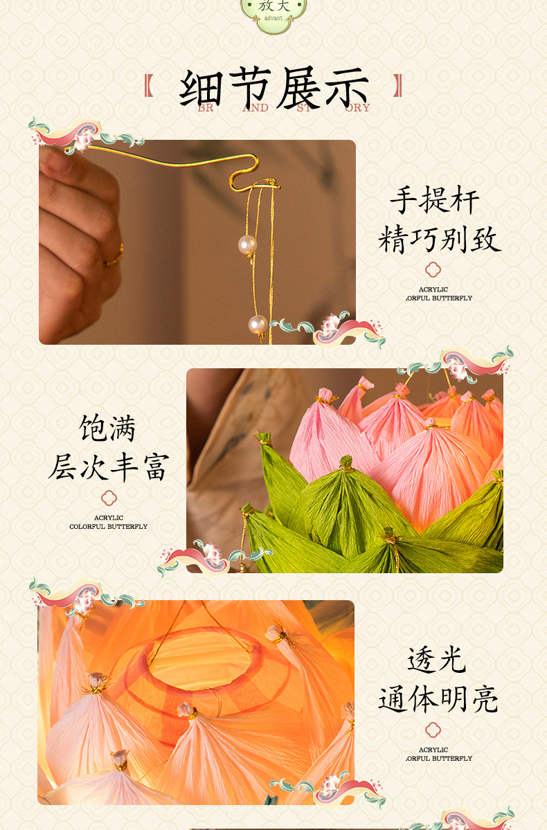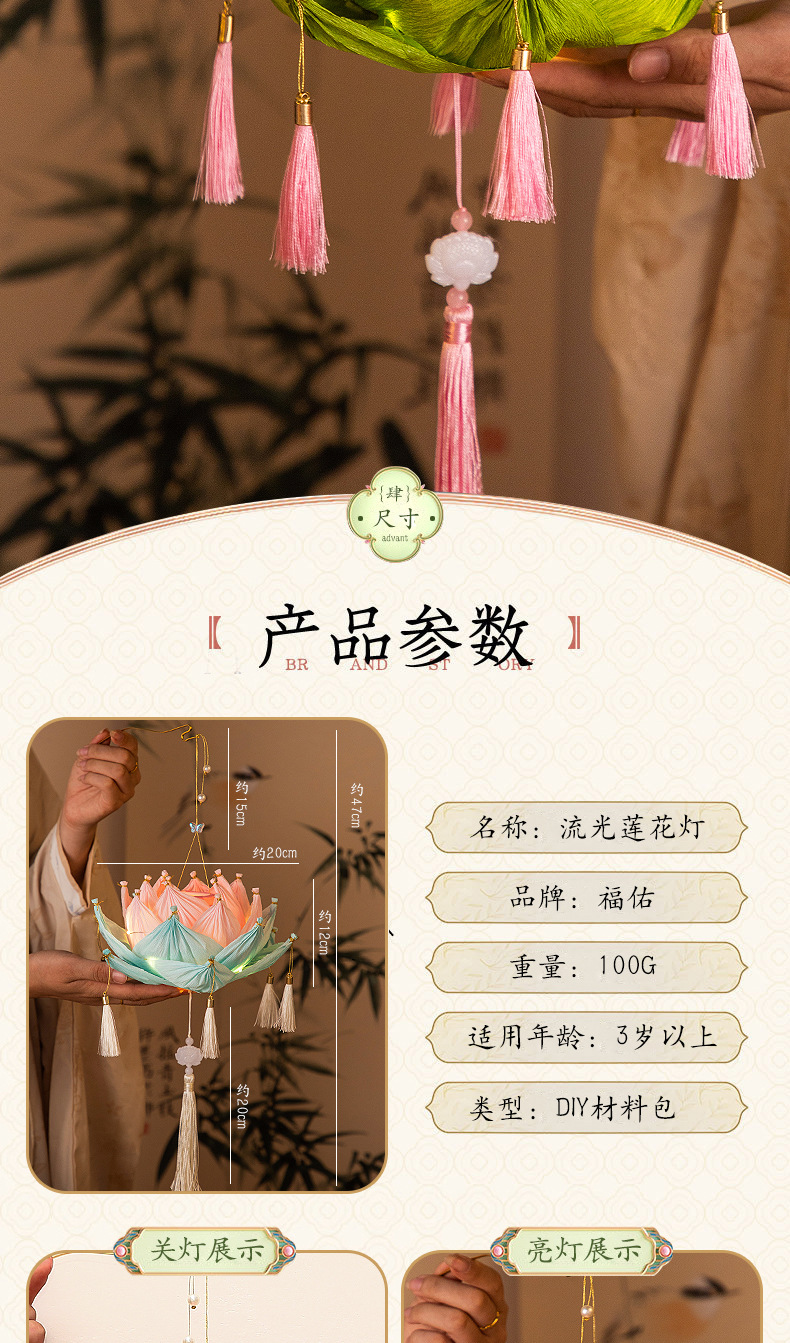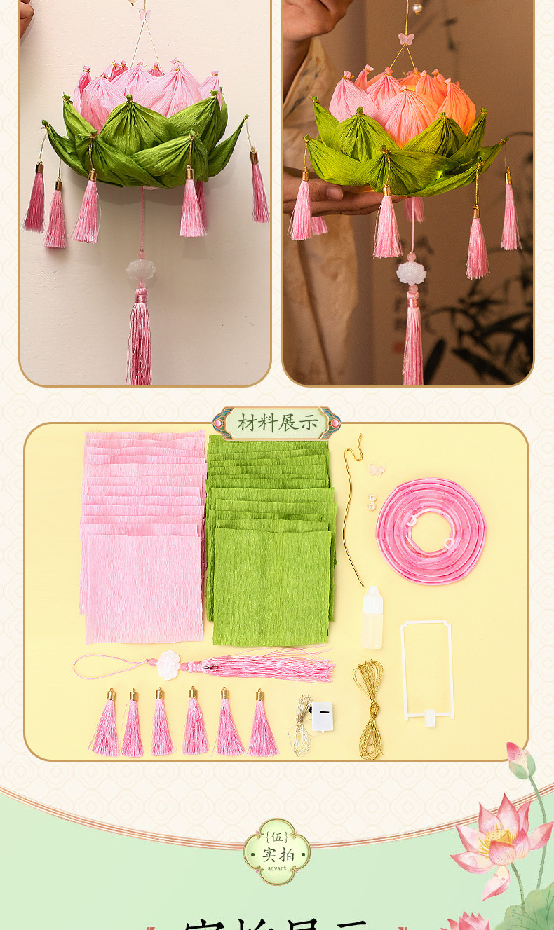【中秋灯笼!七彩莲花灯~】中秋节莲花灯 荷花灯diy材料包 手工提发光 古风纸灯笼 宫灯小礼物品-QQ