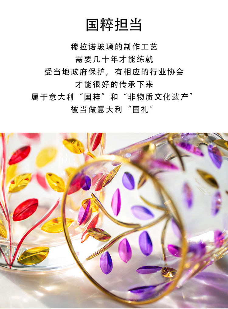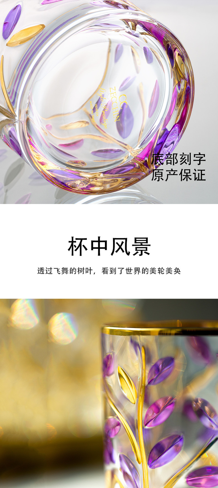【ZECCHIN】意大利原产 树叶系列箔金叶酒杯手工杯