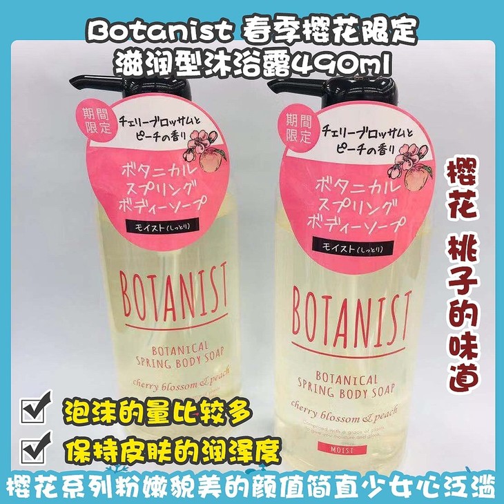 Botanist 春季樱花限定滋润型沐浴露490ml👍樱花系列粉嫩貌美的颜值简直少女心泛滥💓,没有道理不入啊!这款沐浴露的香味综合了樱花🌸和桃子🍑的味道,挤出来就能闻到很浓郁的香味🌬!滋润型💦还能保持皮肤的润泽度,对于身体容易干燥起皮的妹子还有一定的帮助哦😊。泡沫的量比较多☁,但不会让人觉得洗不净和假滑的感觉,香味会愈发愈自然👅,让人觉得像自己的体香一样舒服~出门上街,仙气满满❣