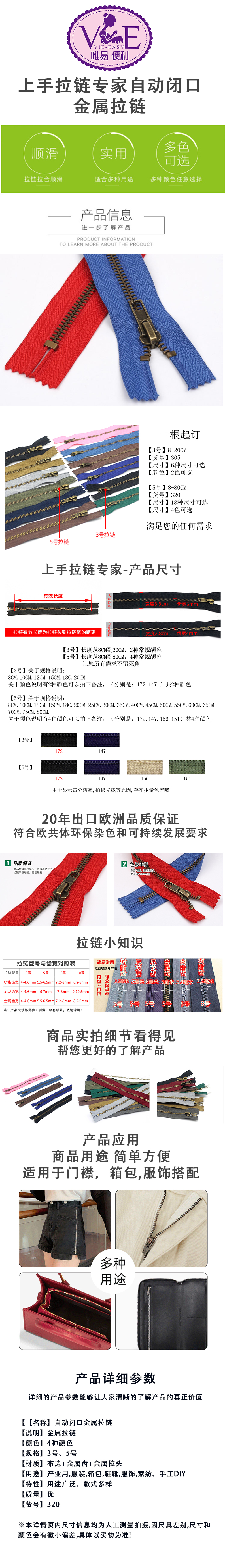 【货号320】5号自闭口金属拉链