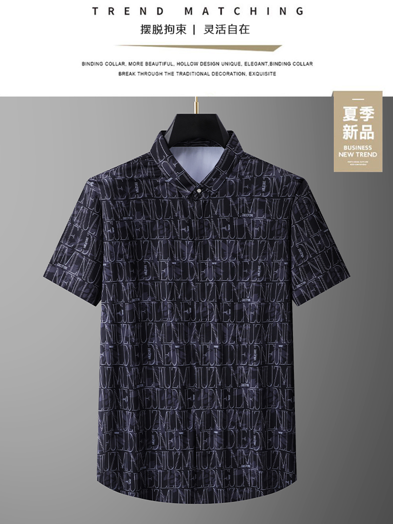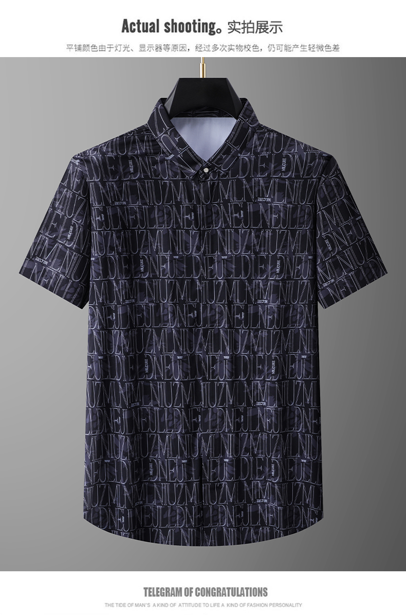 【拉链款】【DPX】大依优型大码冰丝短袖花衬衫夏装半袖衬衣胖子时尚休闲色百搭免烫上衣胖子男士