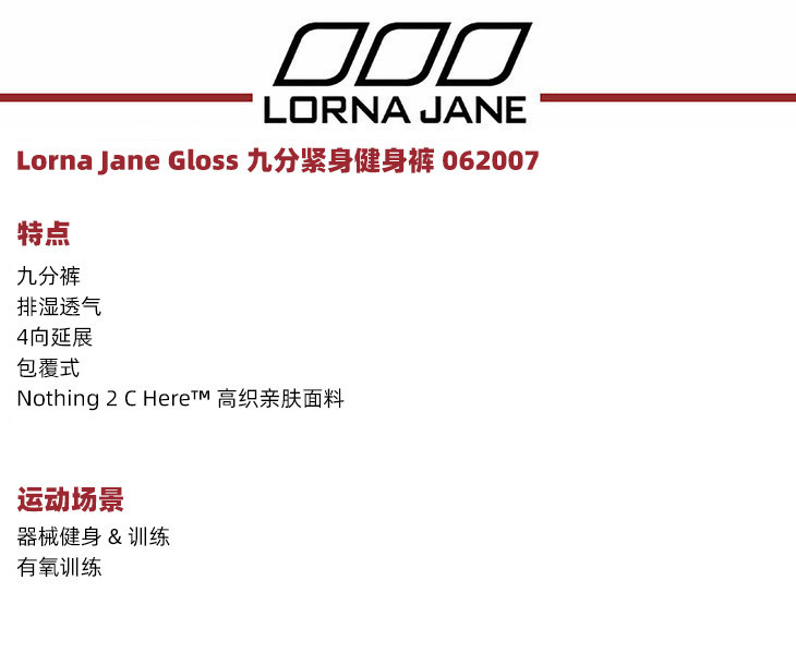【清仓秒】澳洲 Lorna JaneGloss 九分紧身健身裤 062007(清仓产品,收货7天内支持调货、不退款)