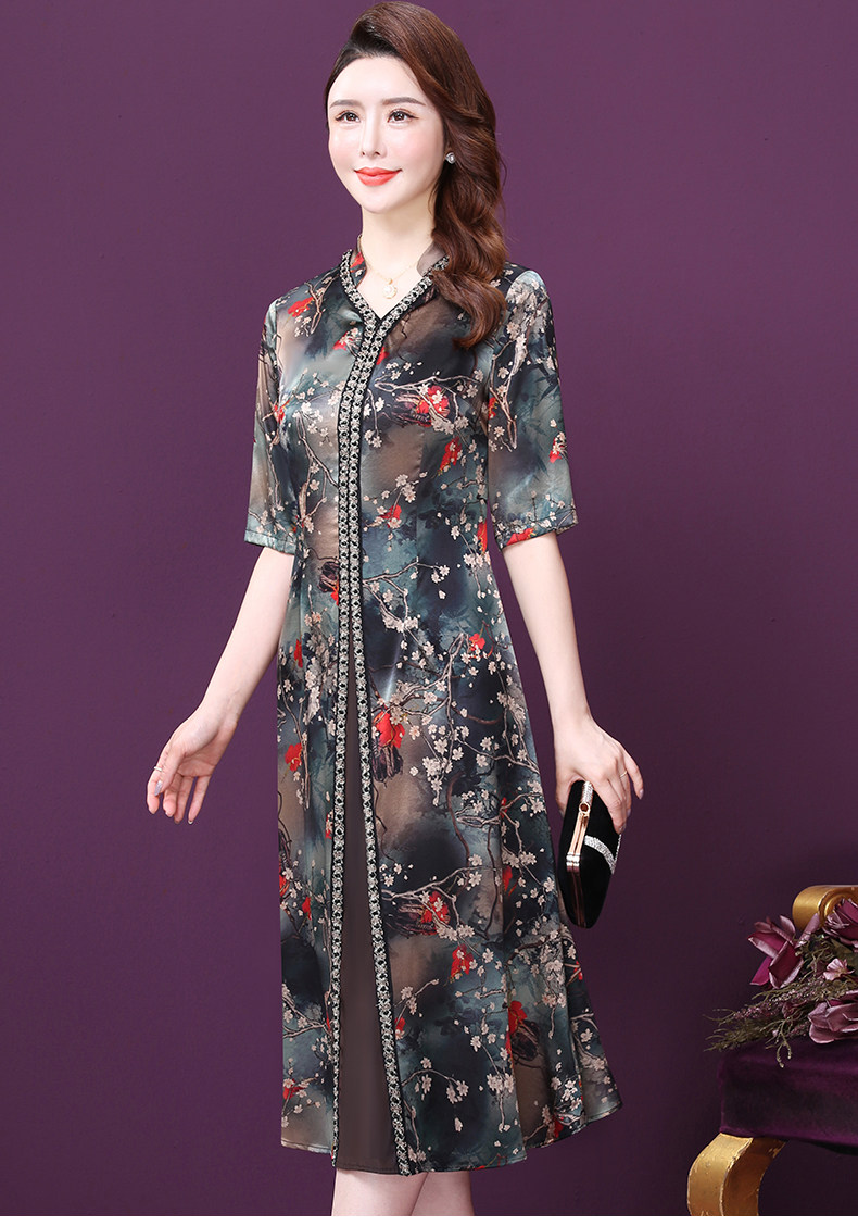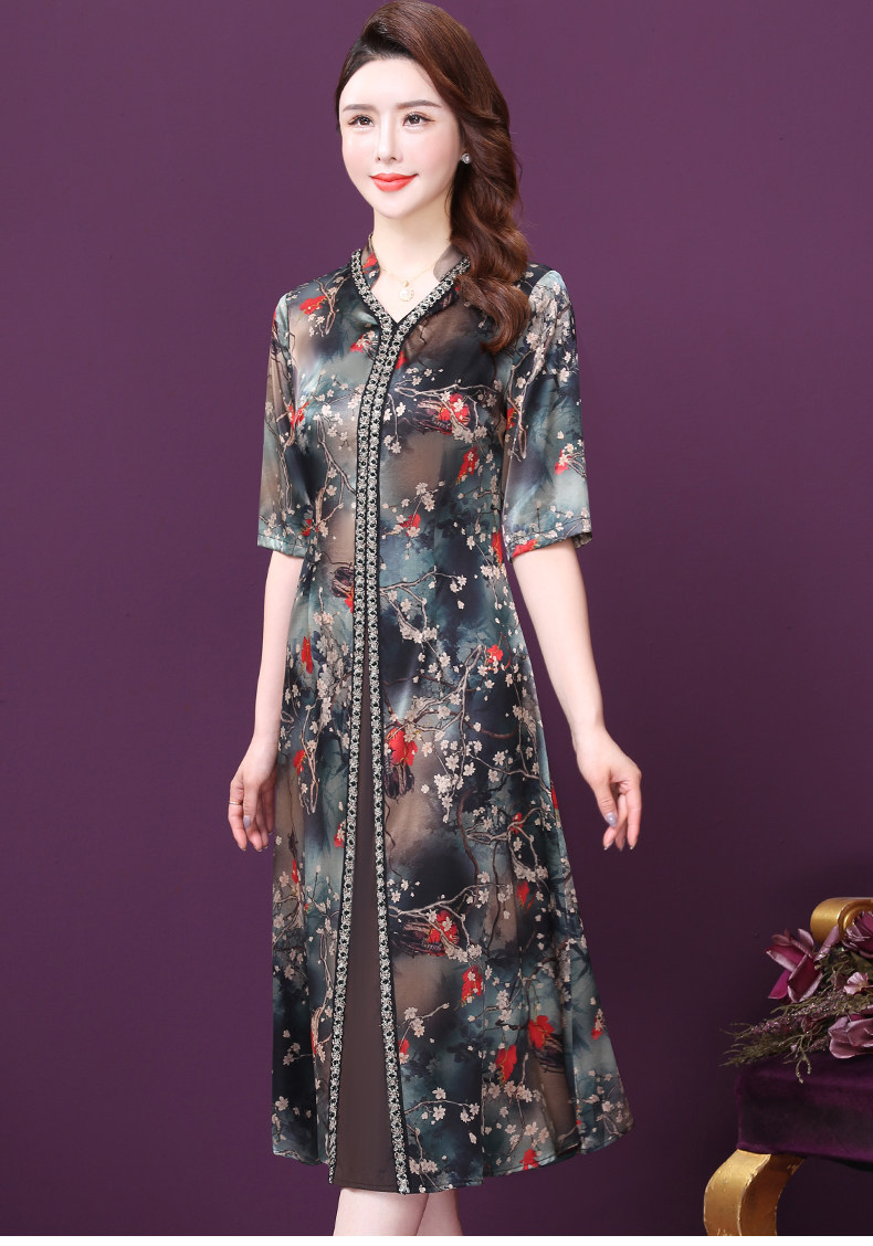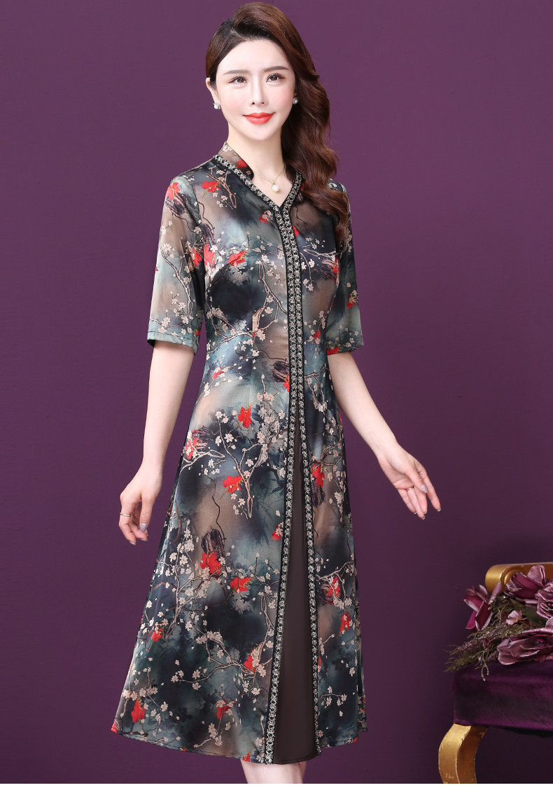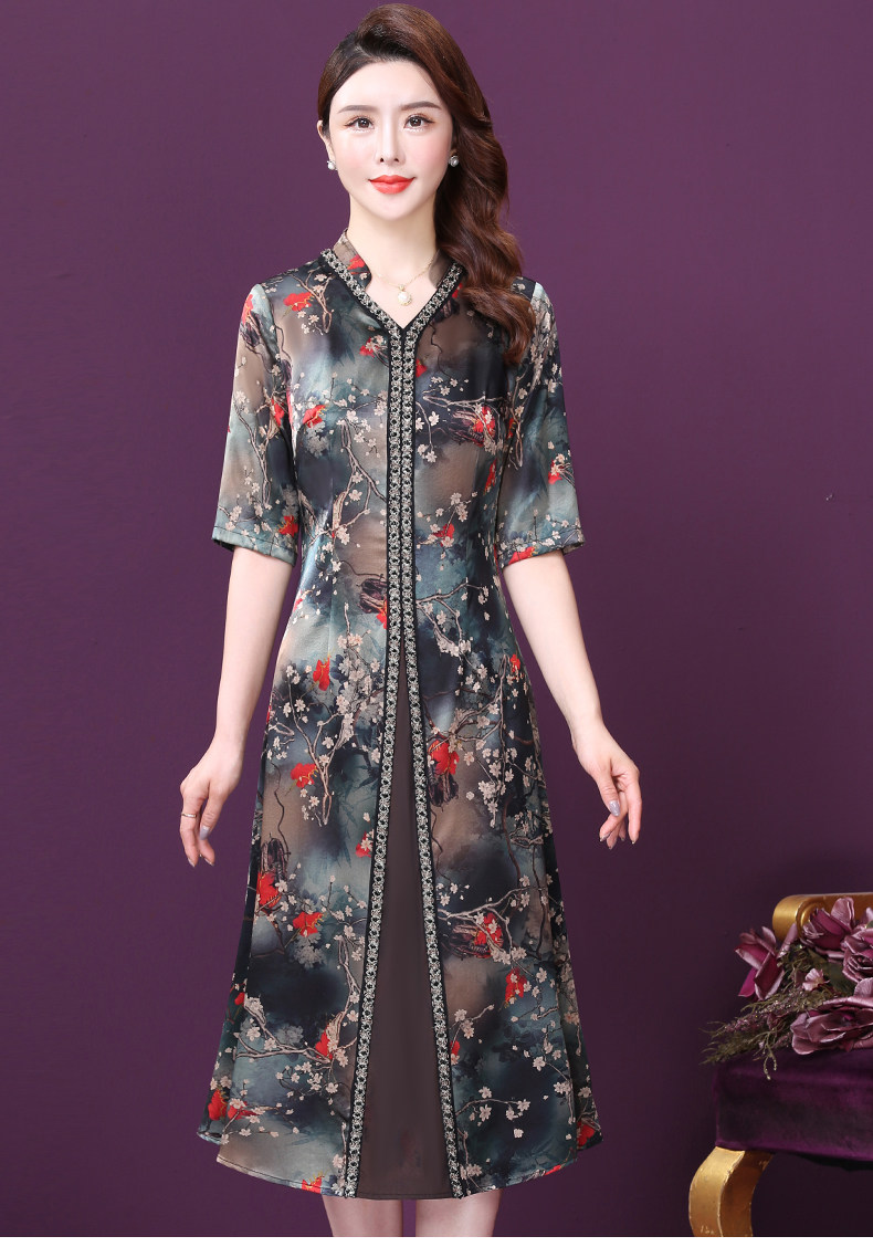 WXY-W-K9-20087新款夏季贵夫人桑蚕丝民族风连衣裙