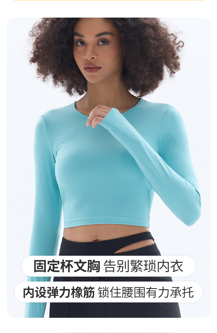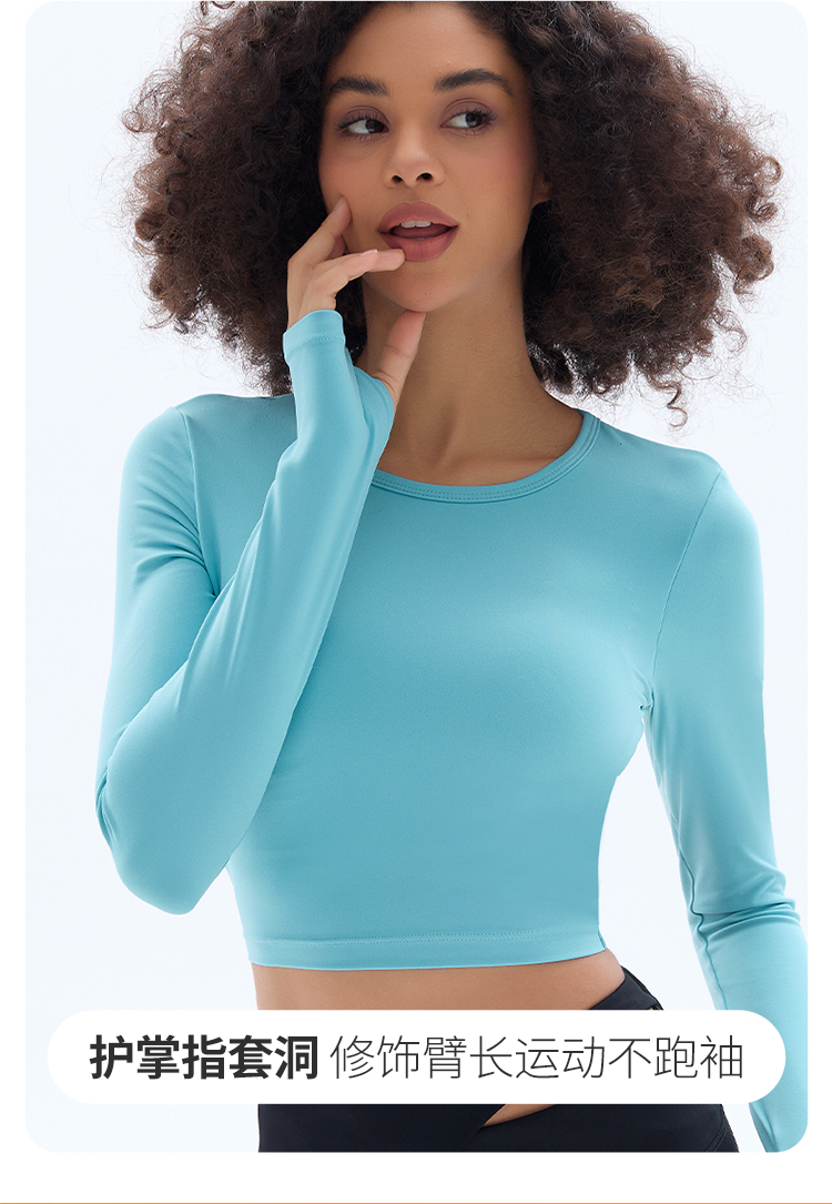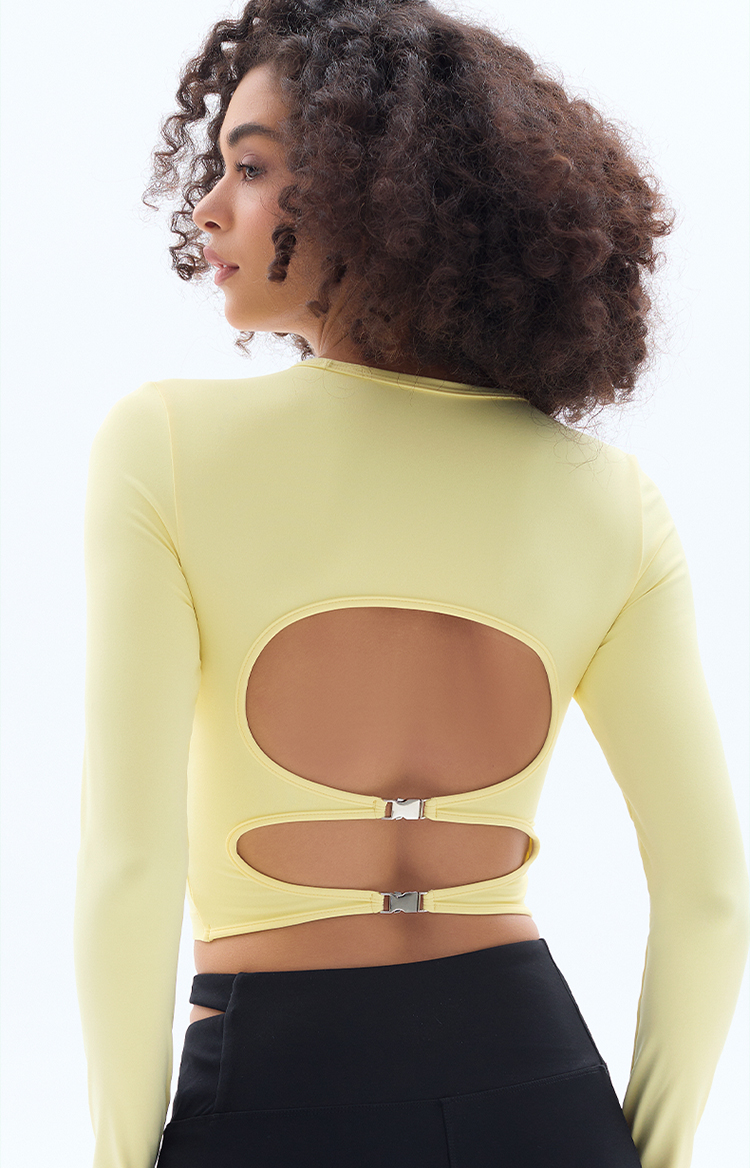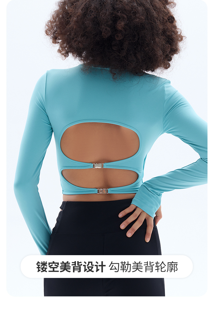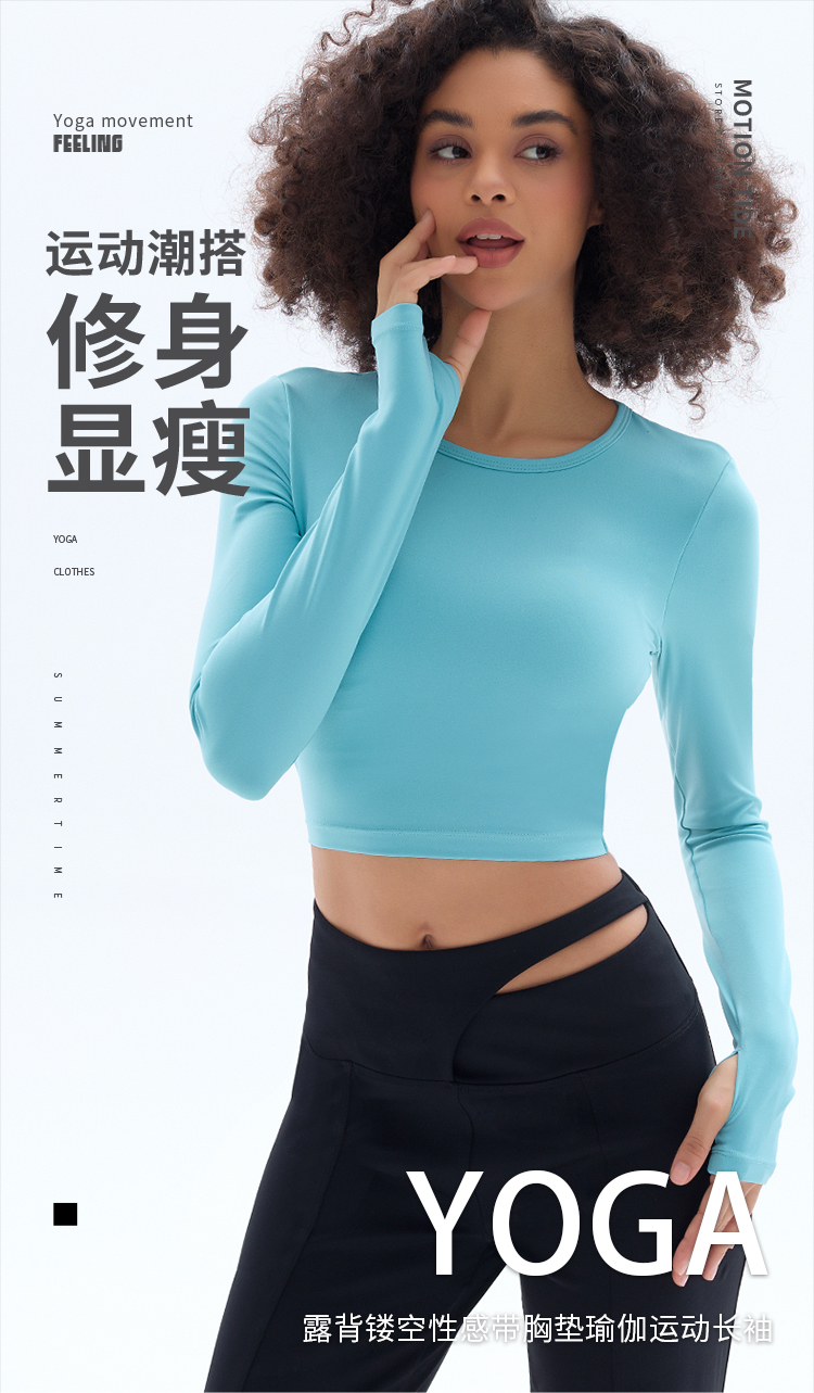 跃牌【小甜心】系列 露背镂空性感带胸垫瑜伽运动长袖T恤女9068