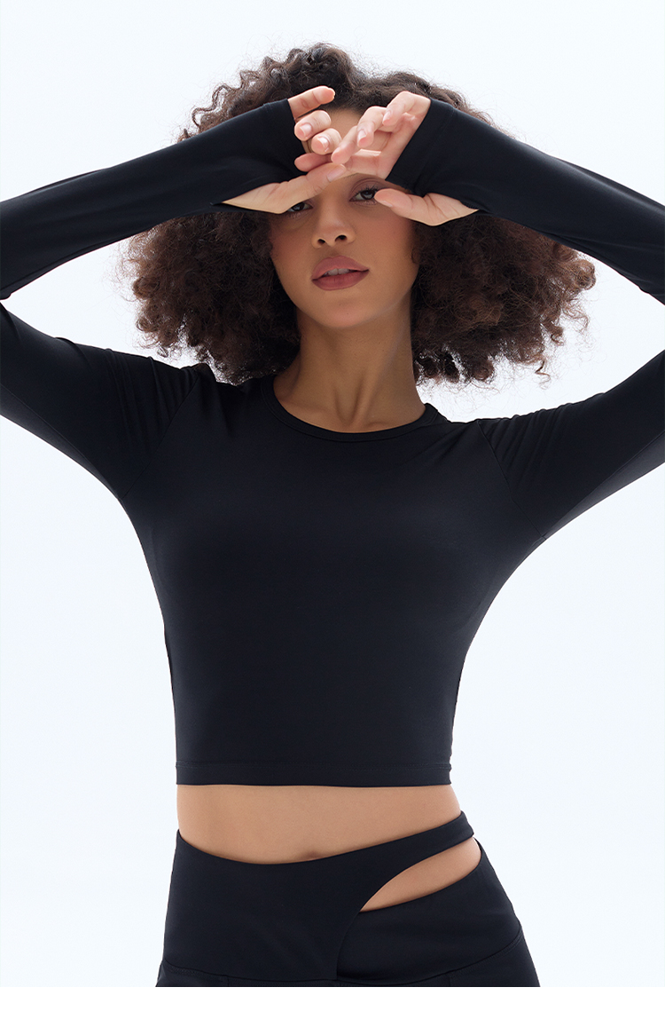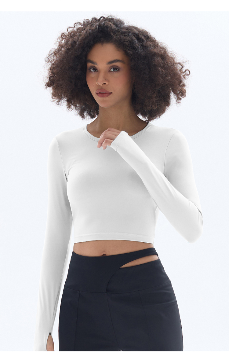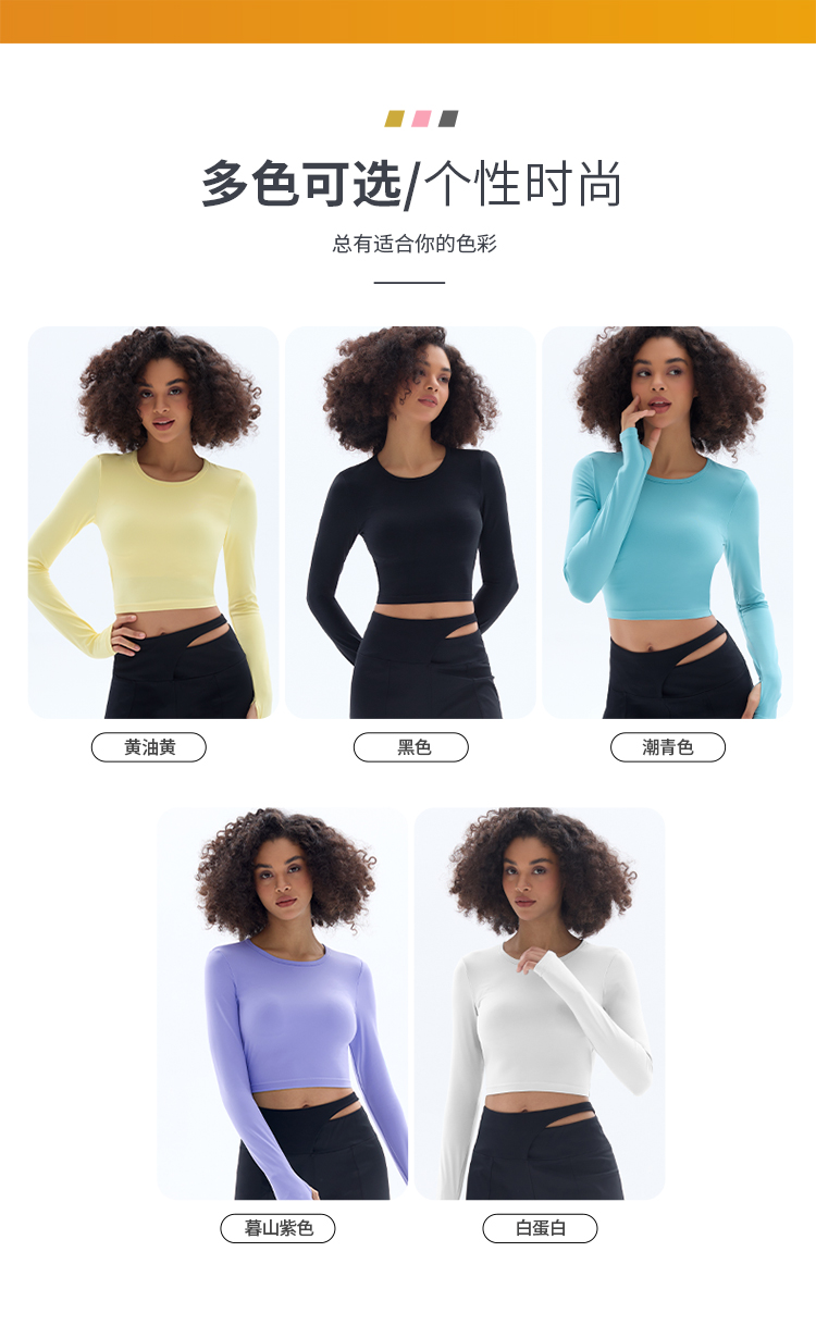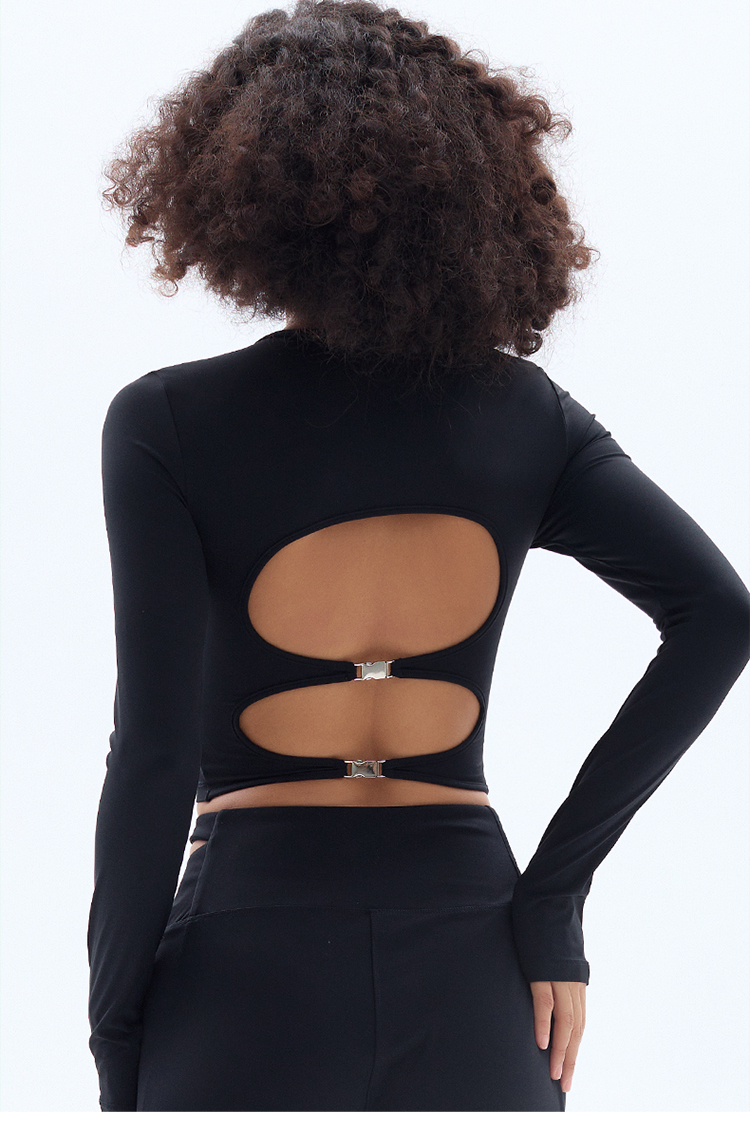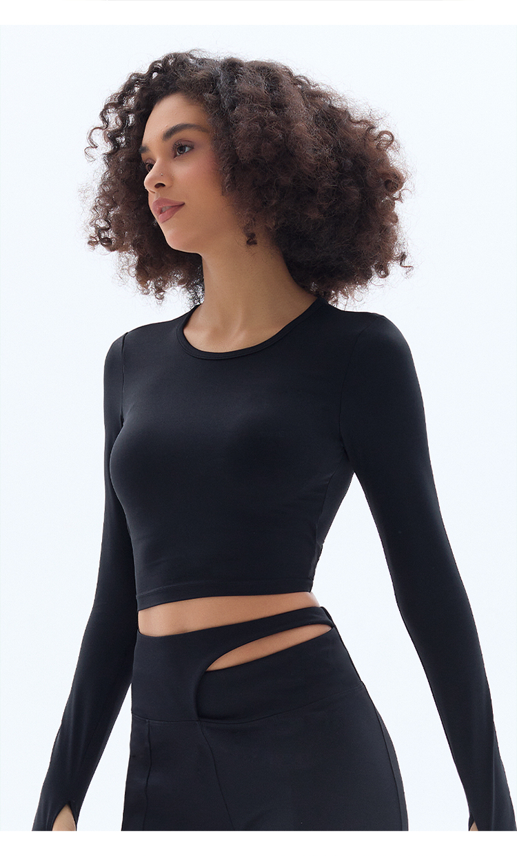 跃牌【小甜心】系列 露背镂空性感带胸垫瑜伽运动长袖T恤女9068