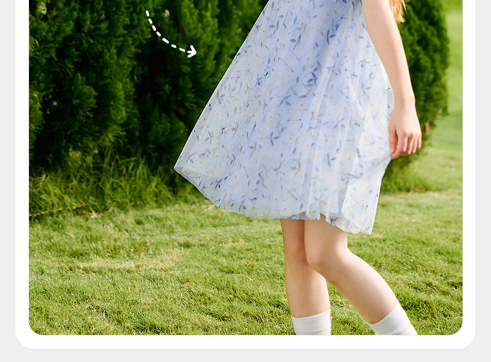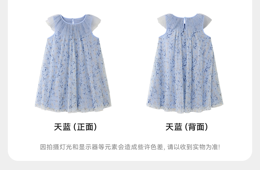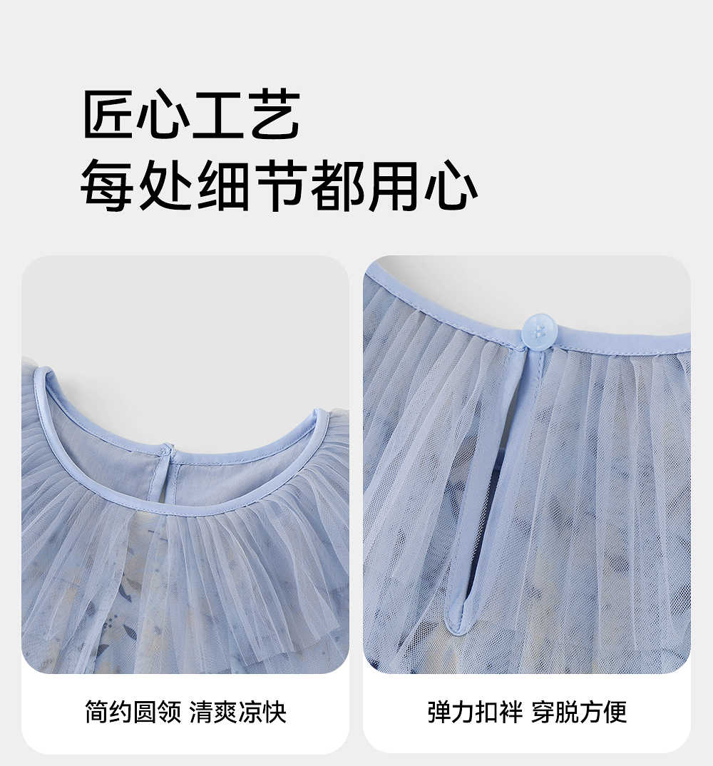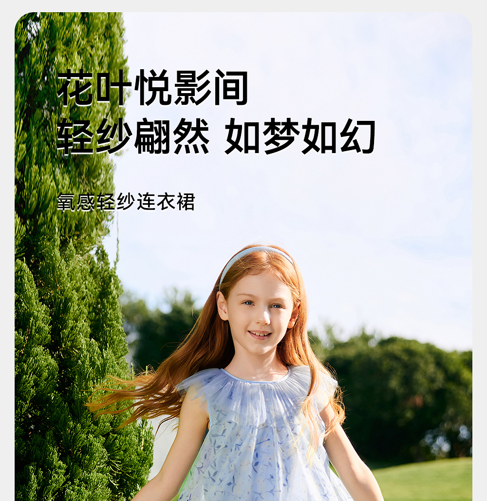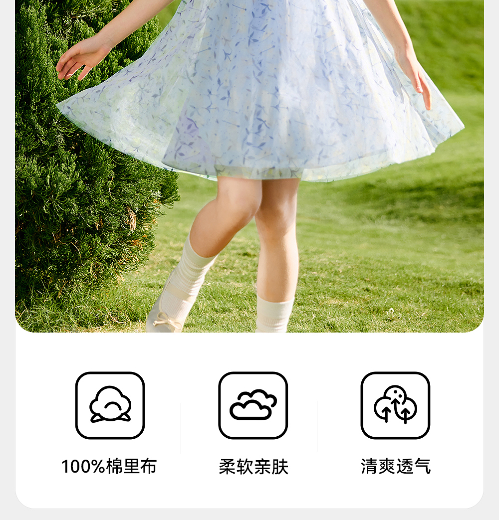 英氏儿童裙子夏季透气网纱女童连衣裙可爱碎花裙子2025新款背心裙