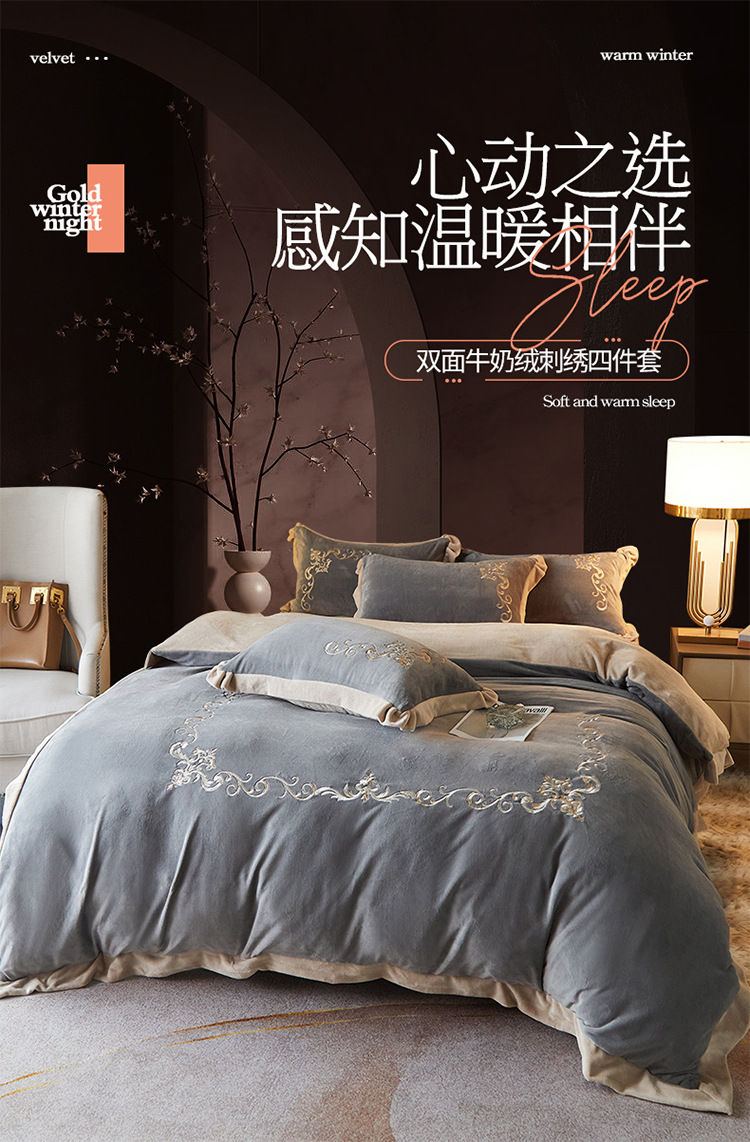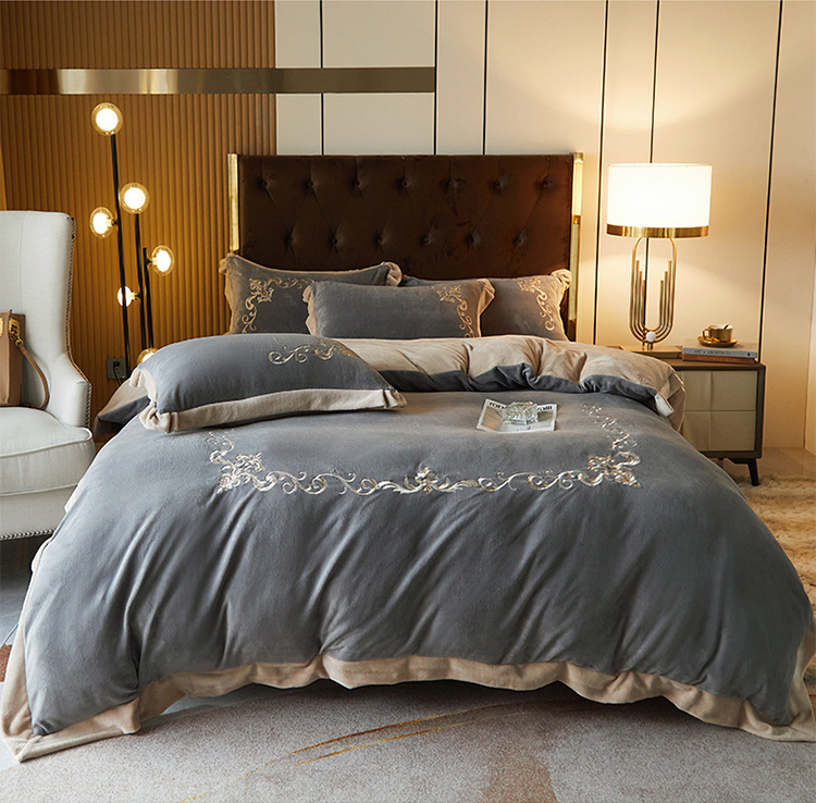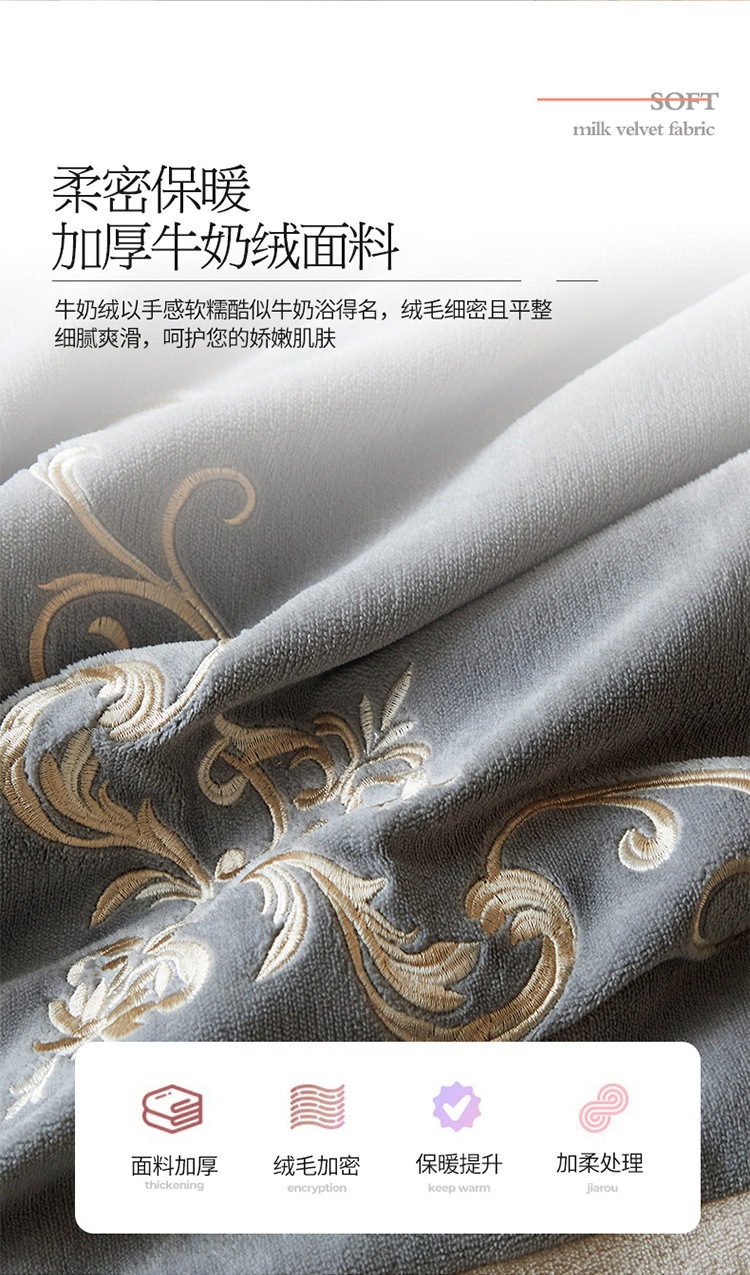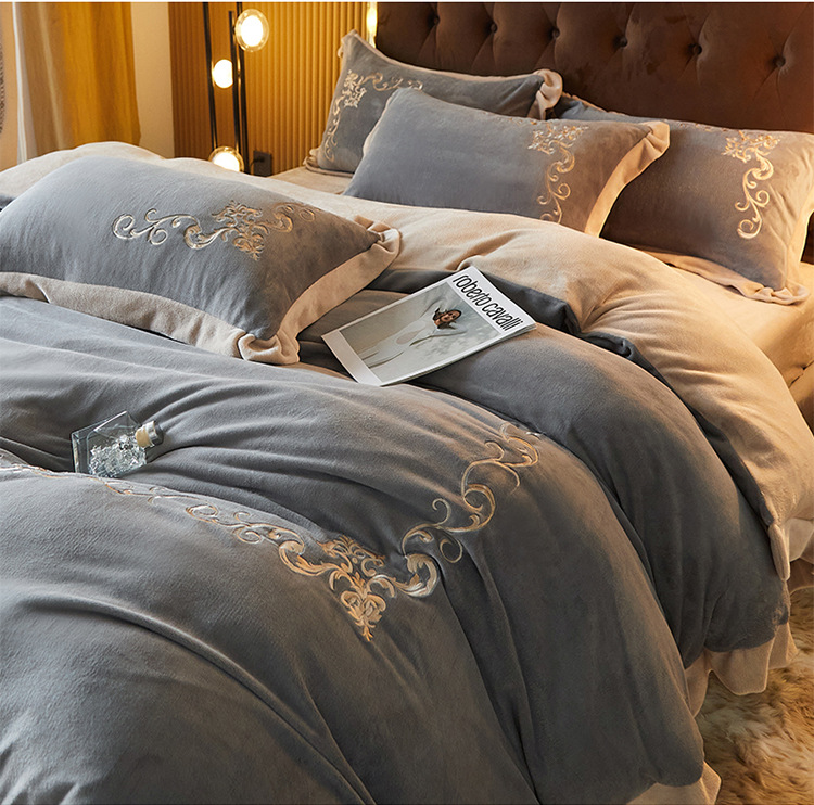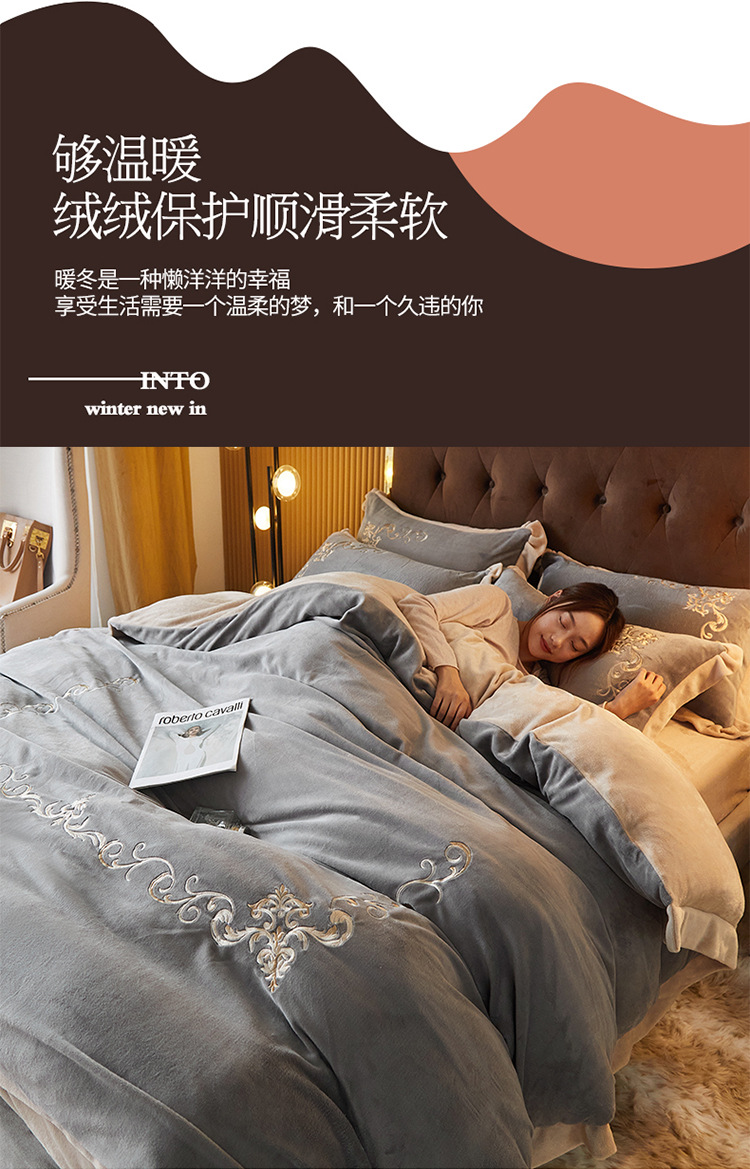 欧式宝宝绒四件套冬季刺绣珊瑚绒被套婴儿绒床上用品