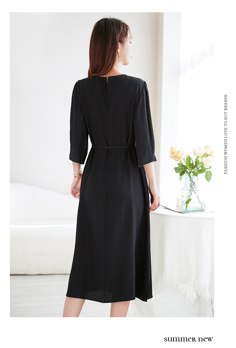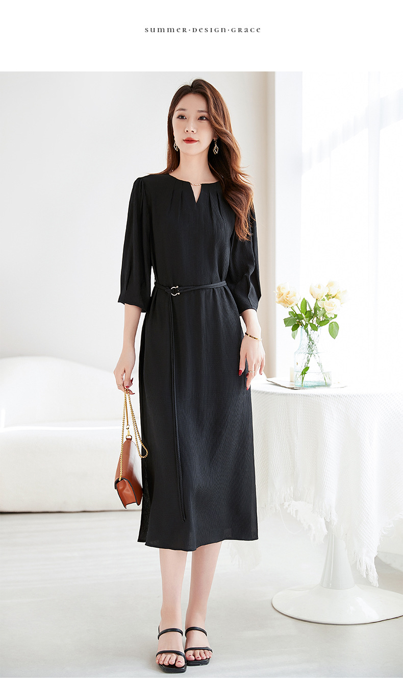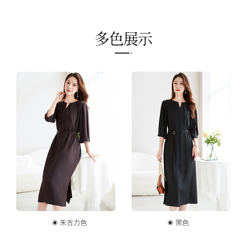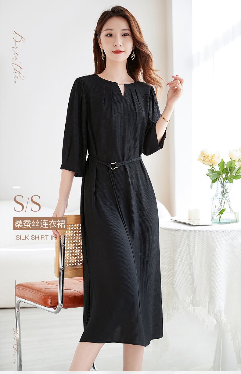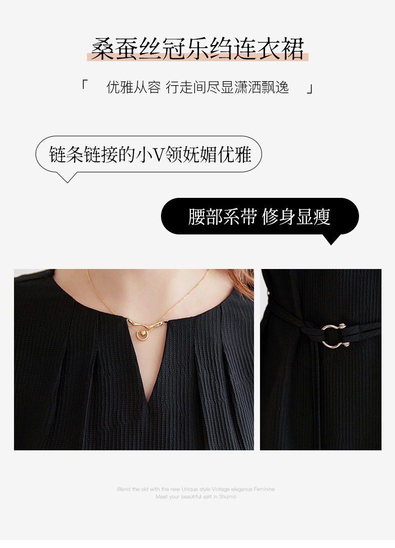 丁摩 夏季新100%桑蚕丝中长裙冠乐皱肌理感真丝连衣裙女5ZF-8900