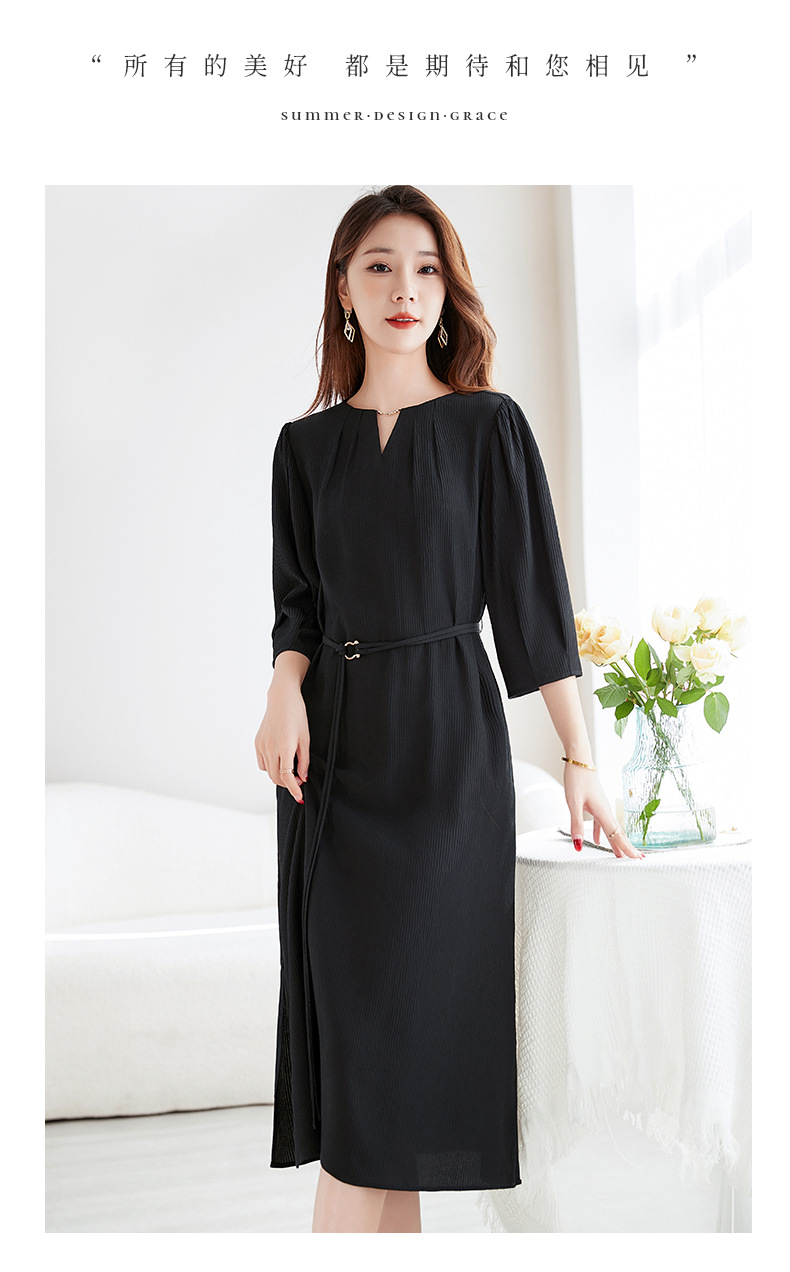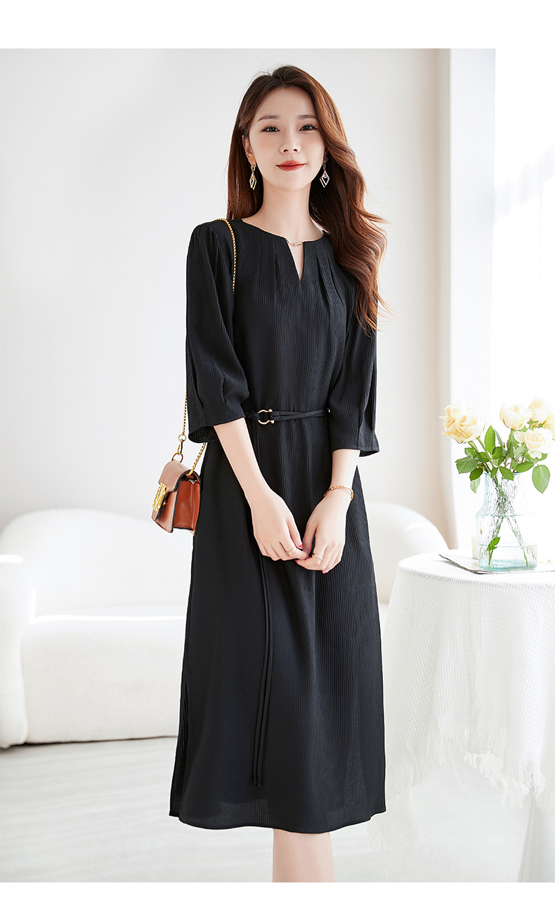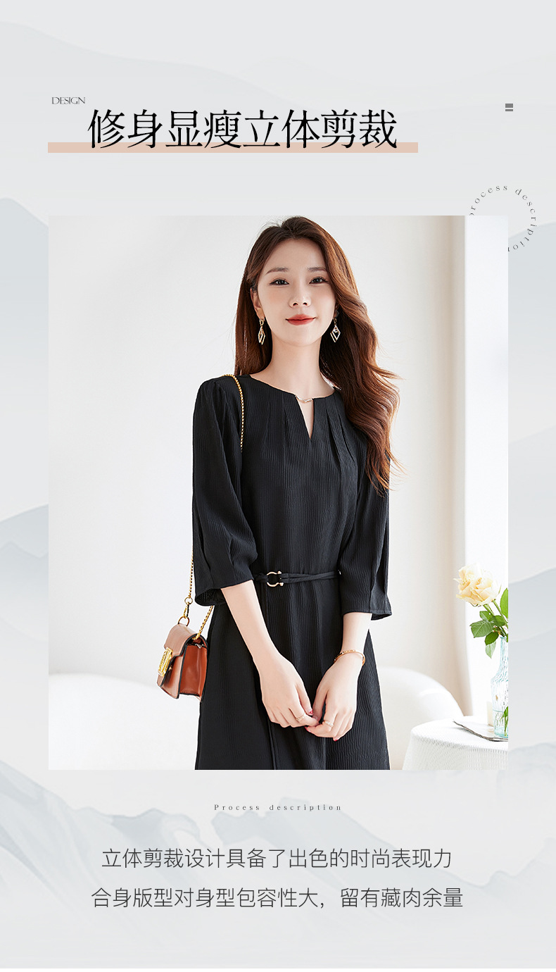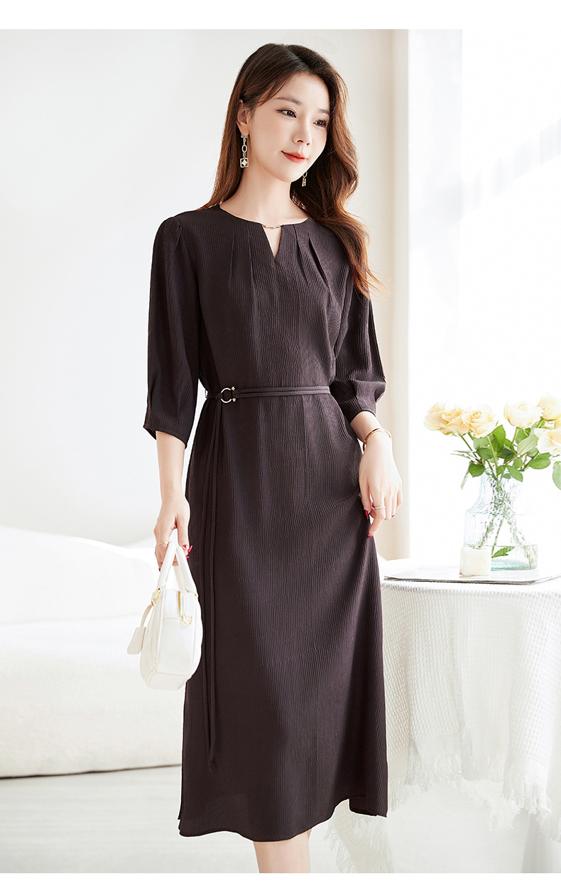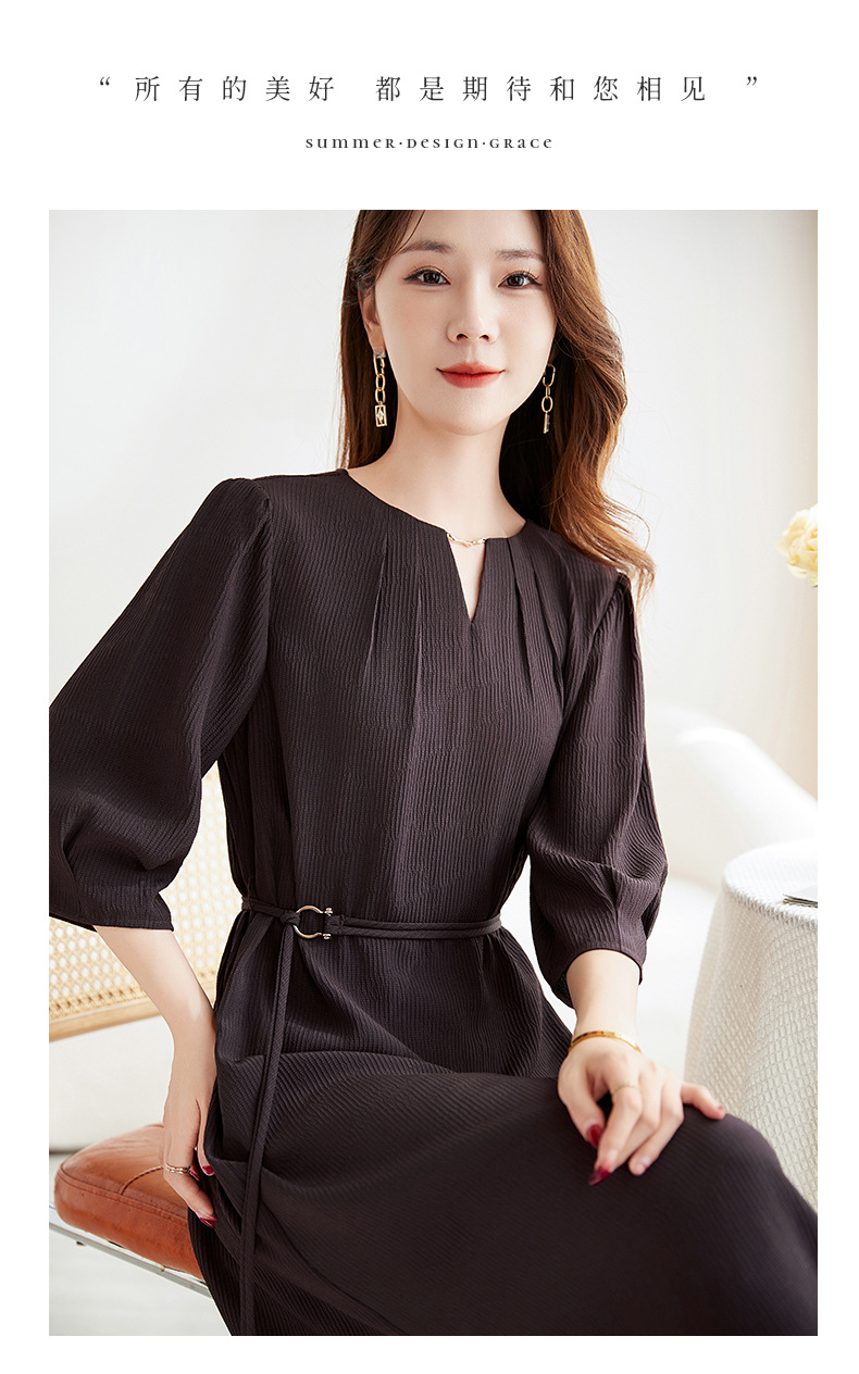 丁摩 夏季新100%桑蚕丝中长裙冠乐皱肌理感真丝连衣裙女5ZF-8900
