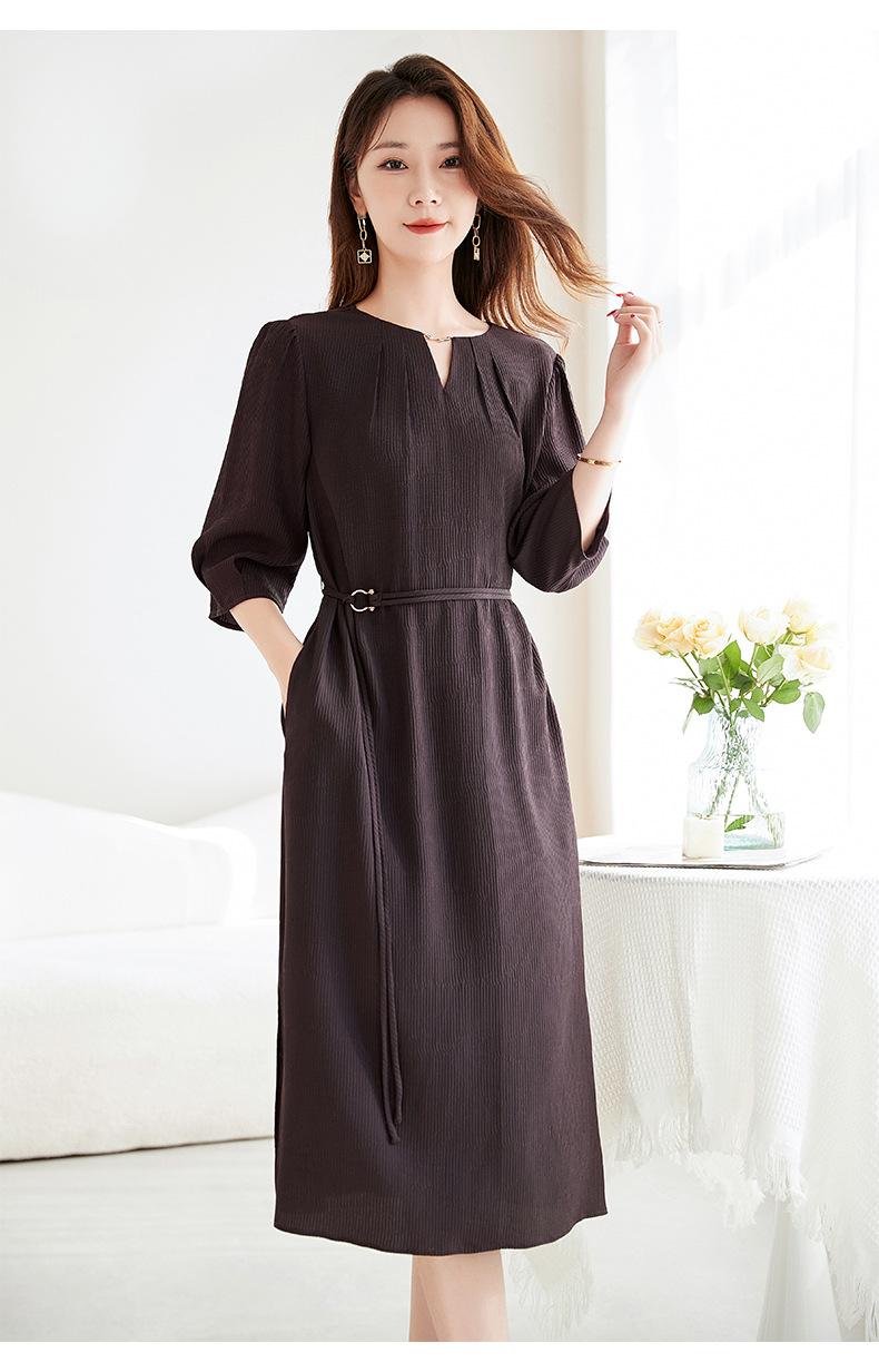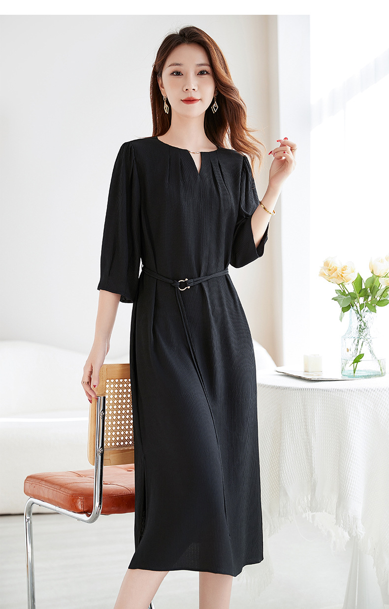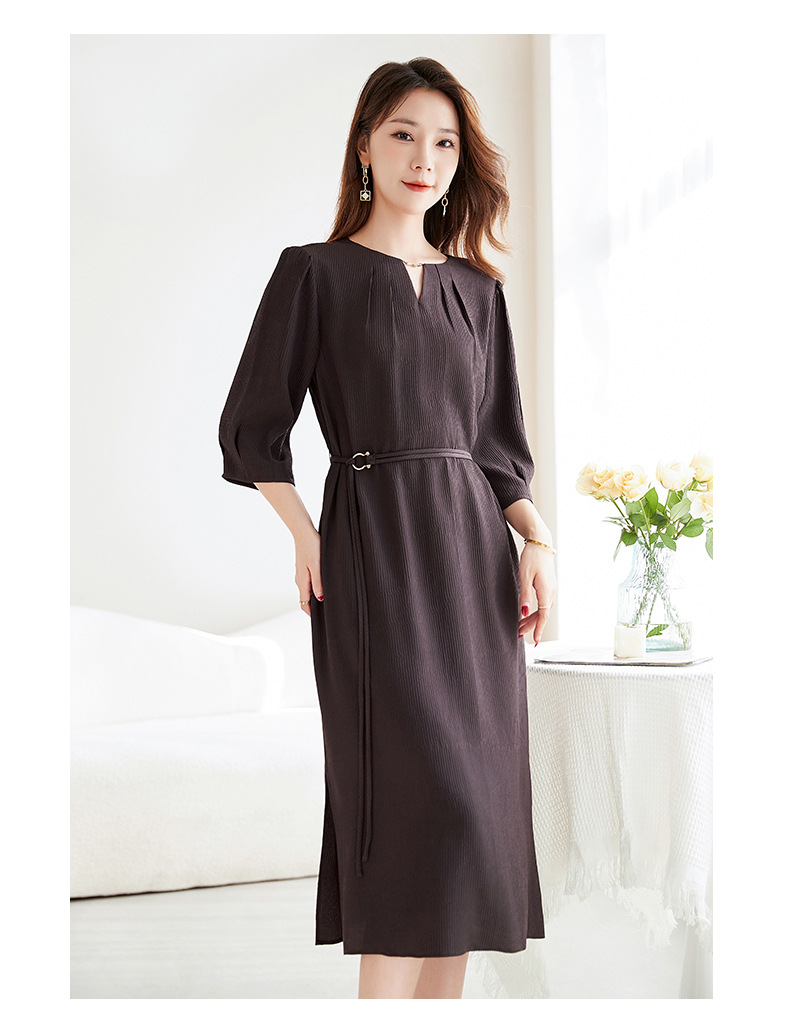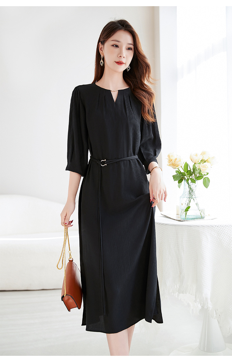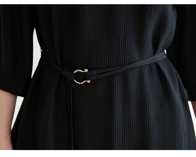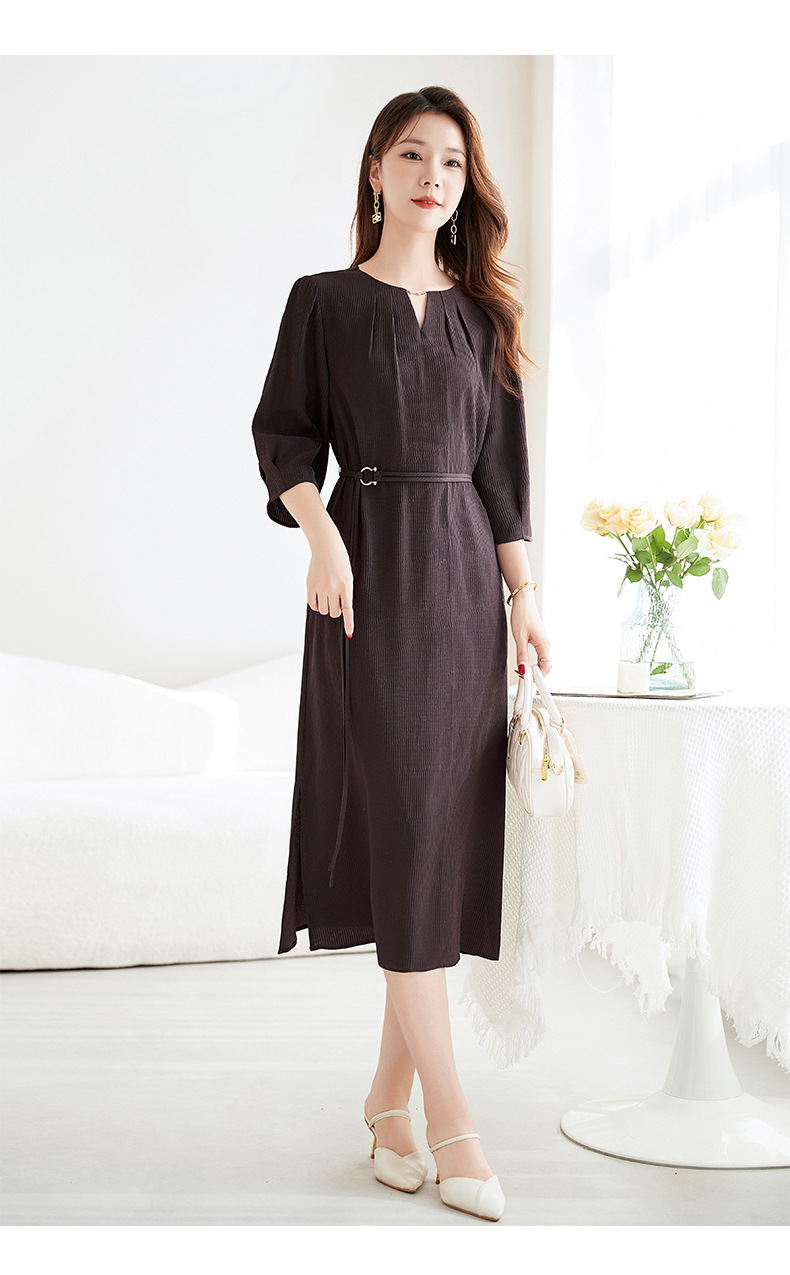 丁摩 夏季新100%桑蚕丝中长裙冠乐皱肌理感真丝连衣裙女5ZF-8900