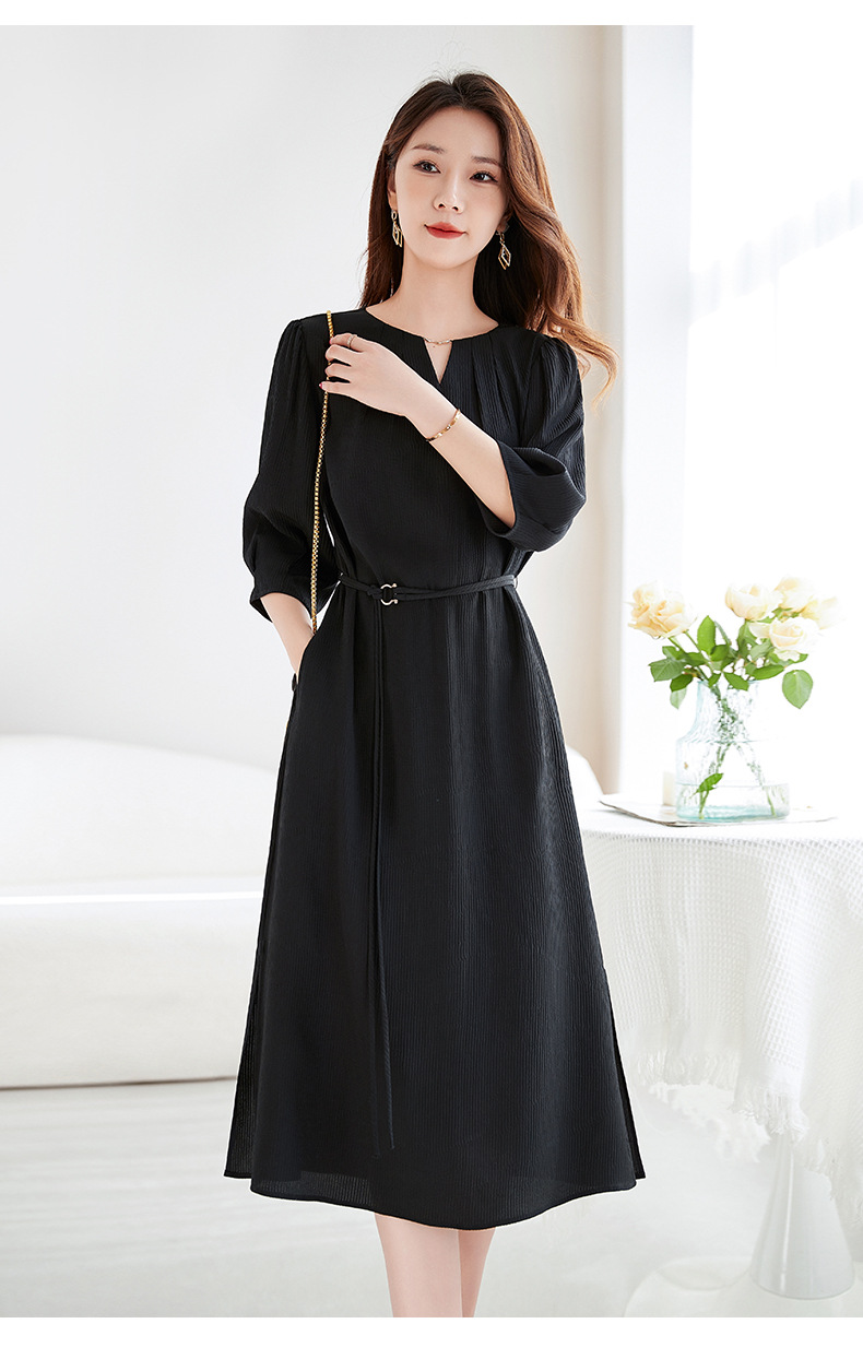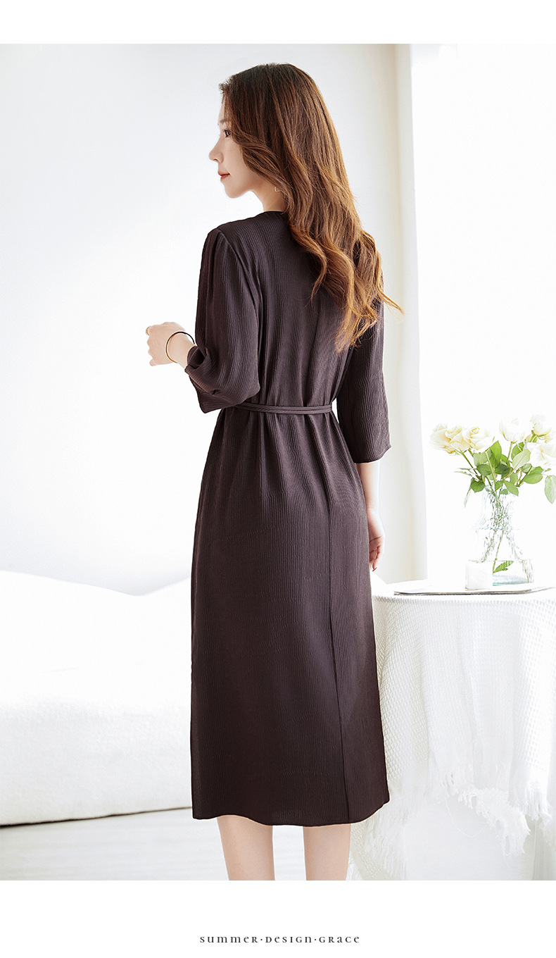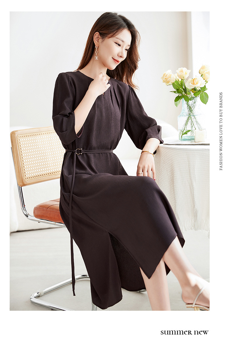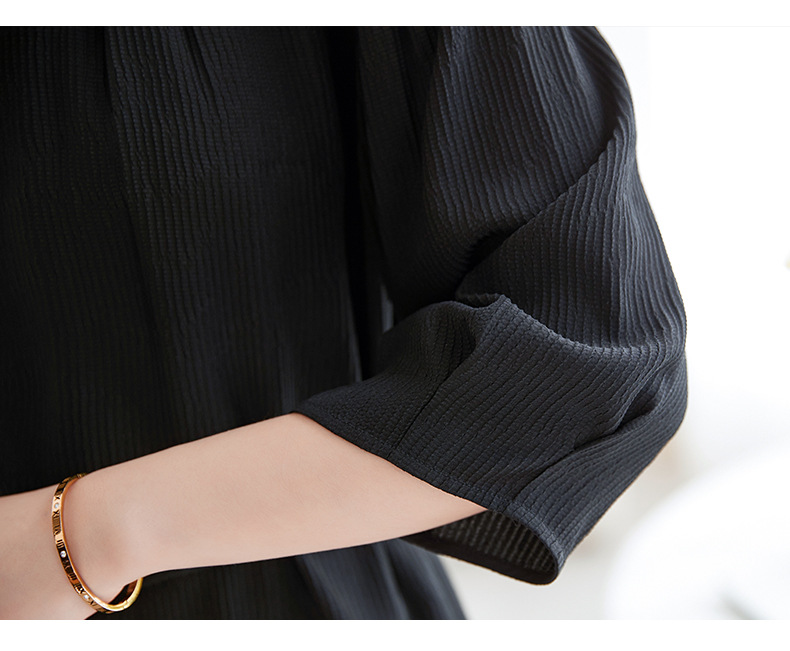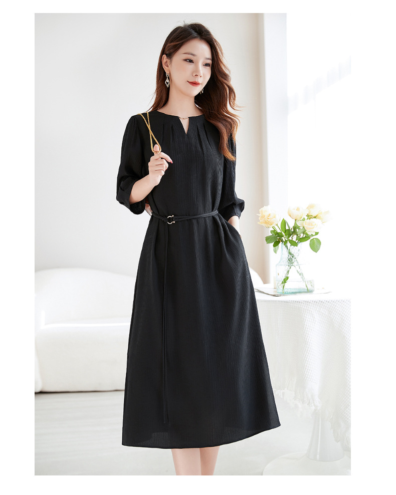 丁摩 夏季新100%桑蚕丝中长裙冠乐皱肌理感真丝连衣裙女5ZF-8900