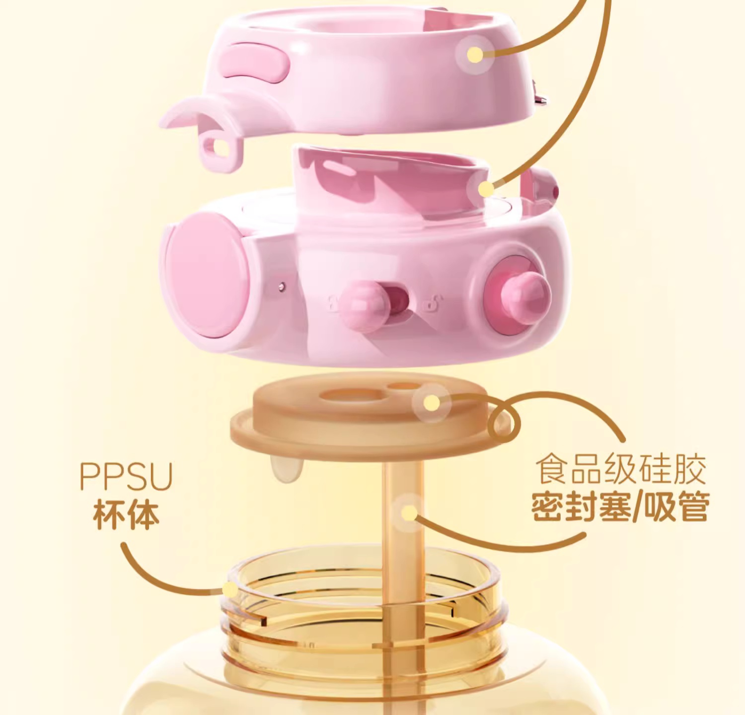 uooha好悠趣PPSU双饮杯星语星愿-黑粉 800ml